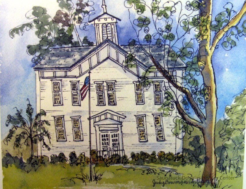Print of a painting of the Douglas School House by Judy Bowman Anthrop. Mounted onType of Print