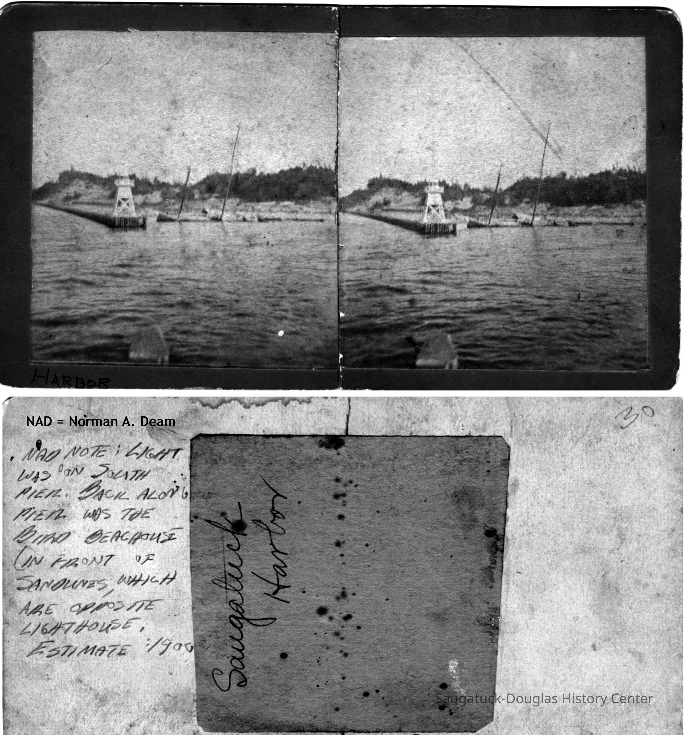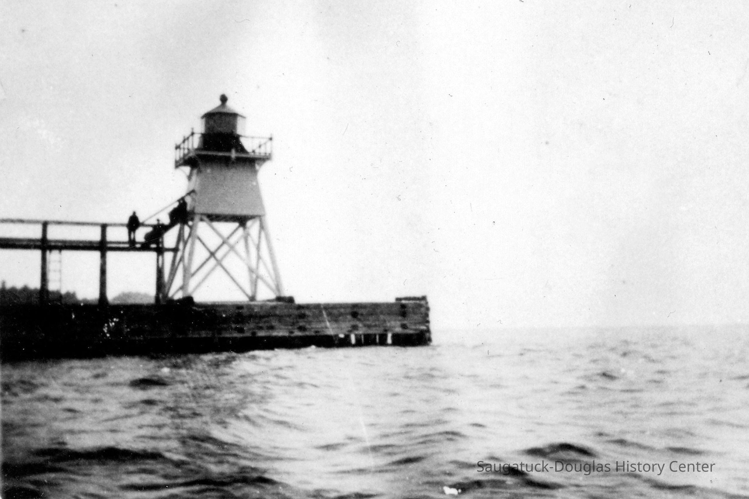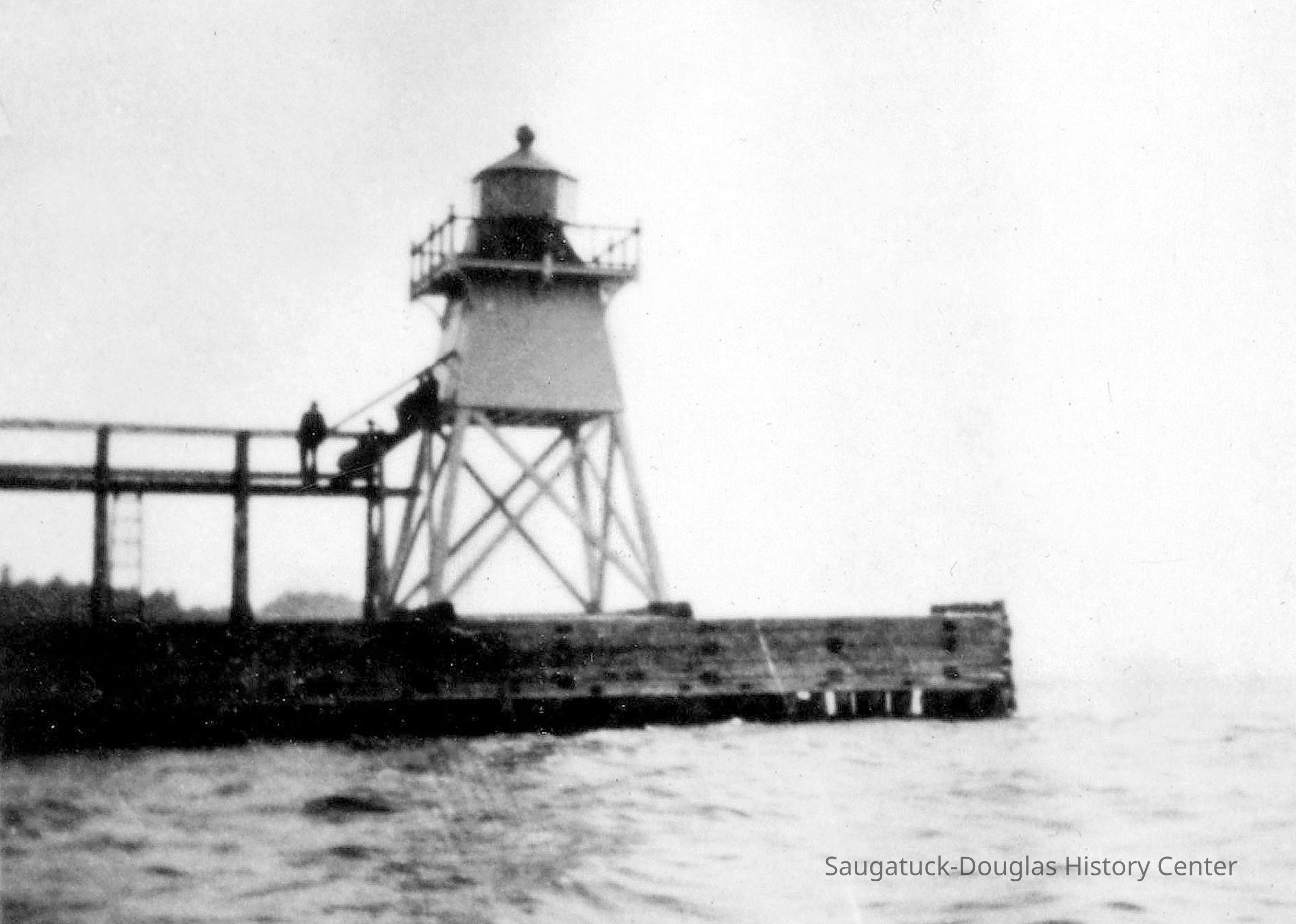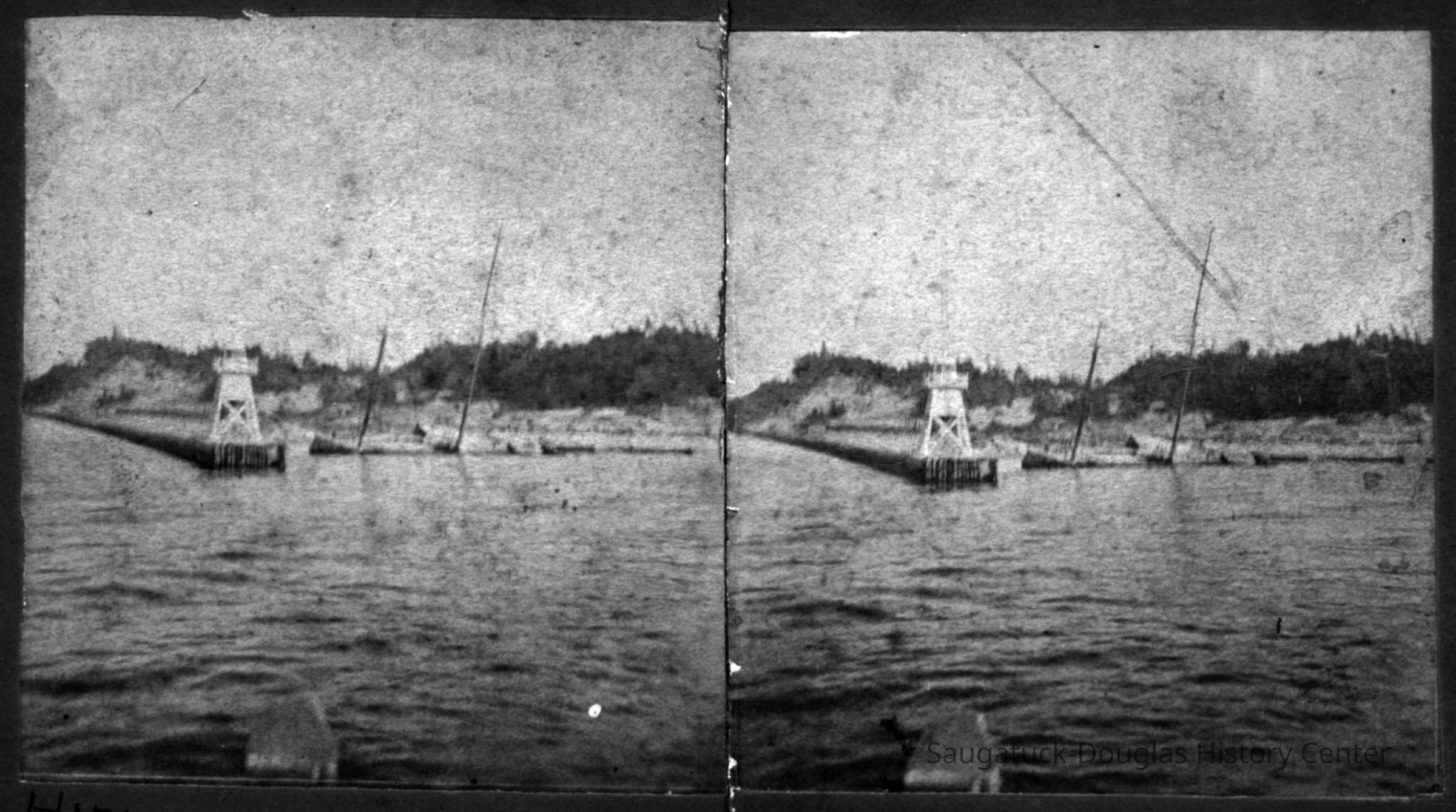This image was featured as the 3-23-2006 History Mystery #96 with the solution: This was the south pier head light from 1876 - 1892. When it was rammed by the steamer Charles McVea [in 1892], the tower was damaged and the Fresnel lens moved back to the top of the 1859 lighthouse.Photograph Details