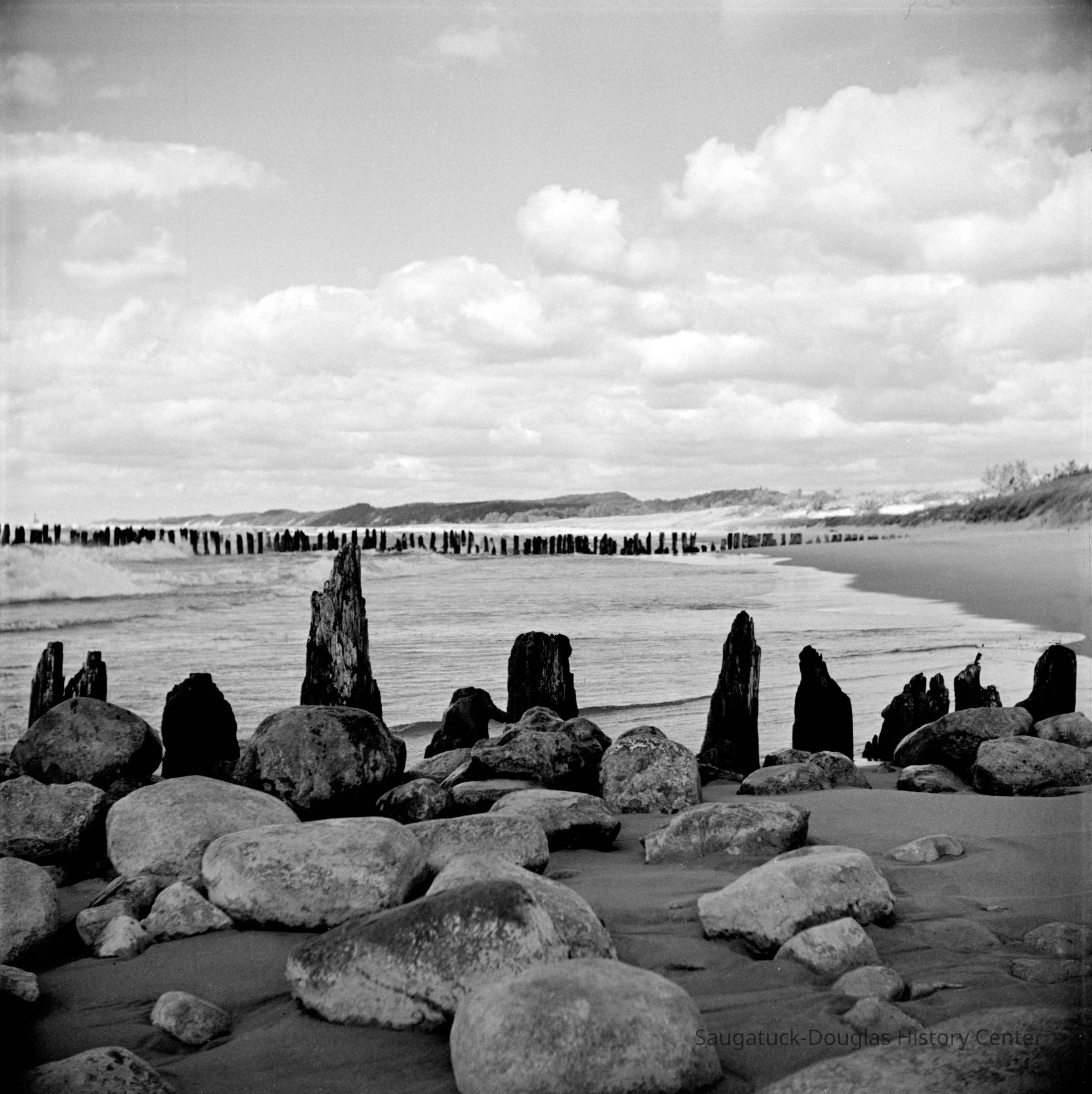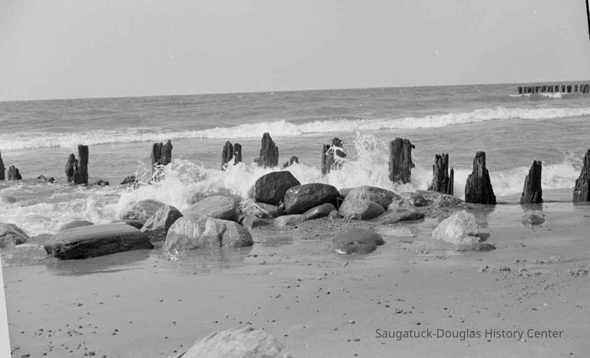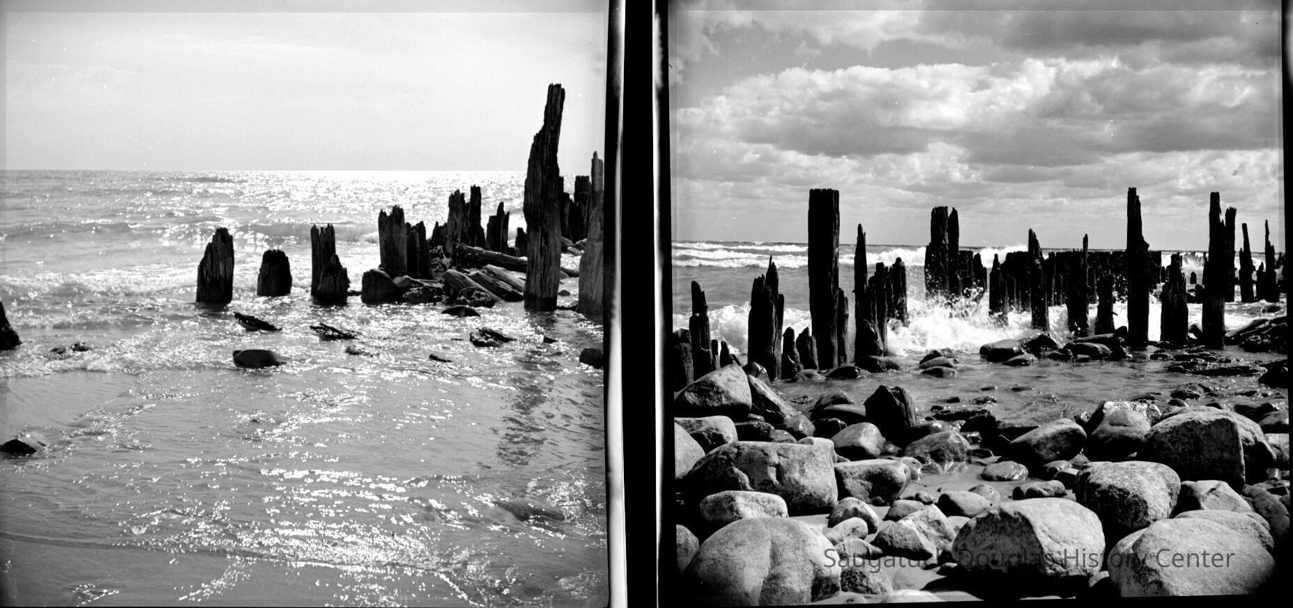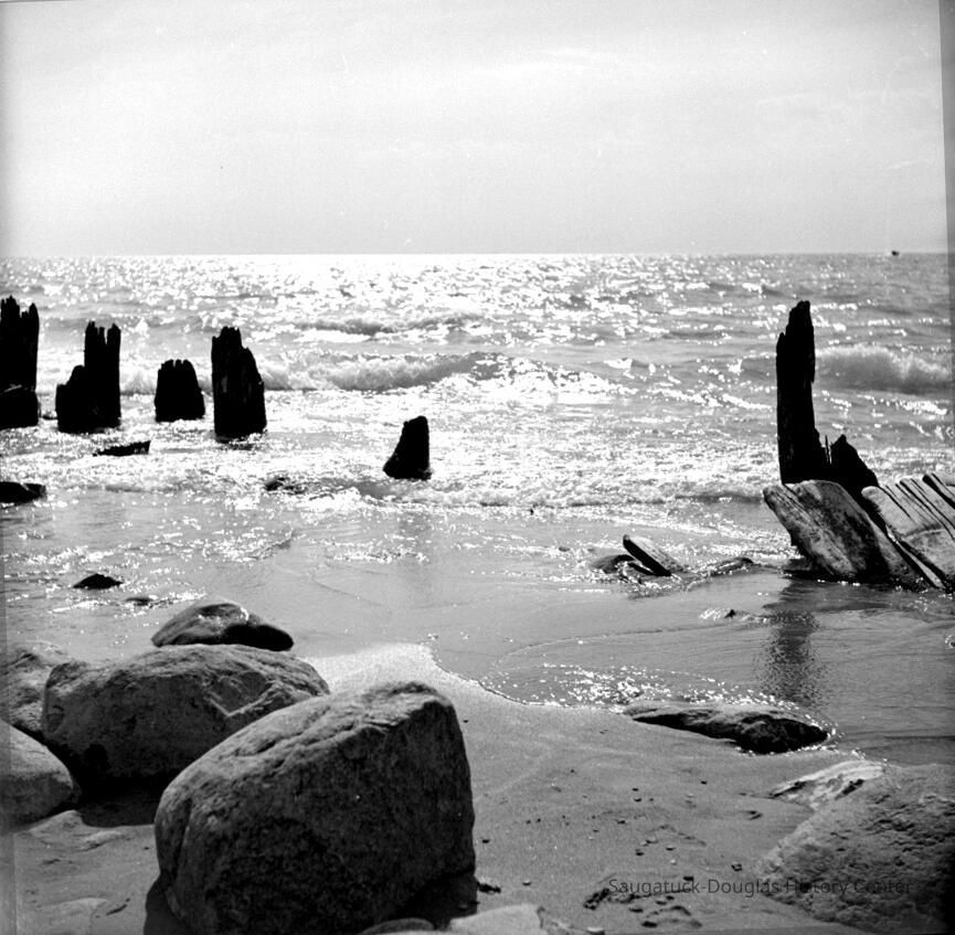 628 1/2 bw Saugatuck - Beach 8/1942 Pilings at old river mouth
