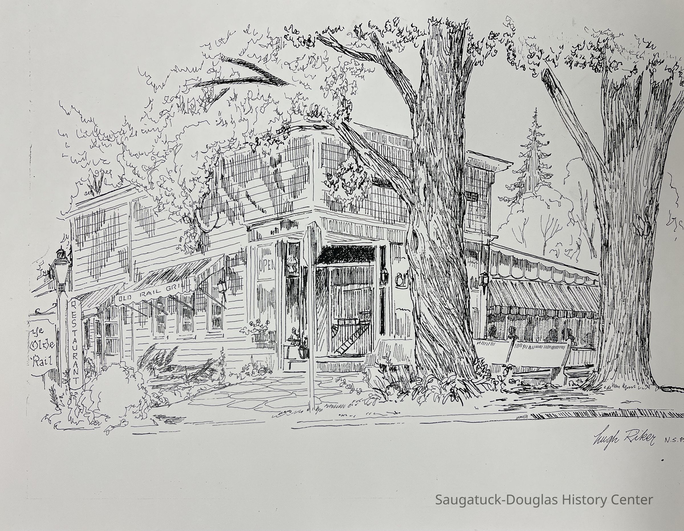 Prints of a line drawing of the Old Rail Grill by Hugh Riker.