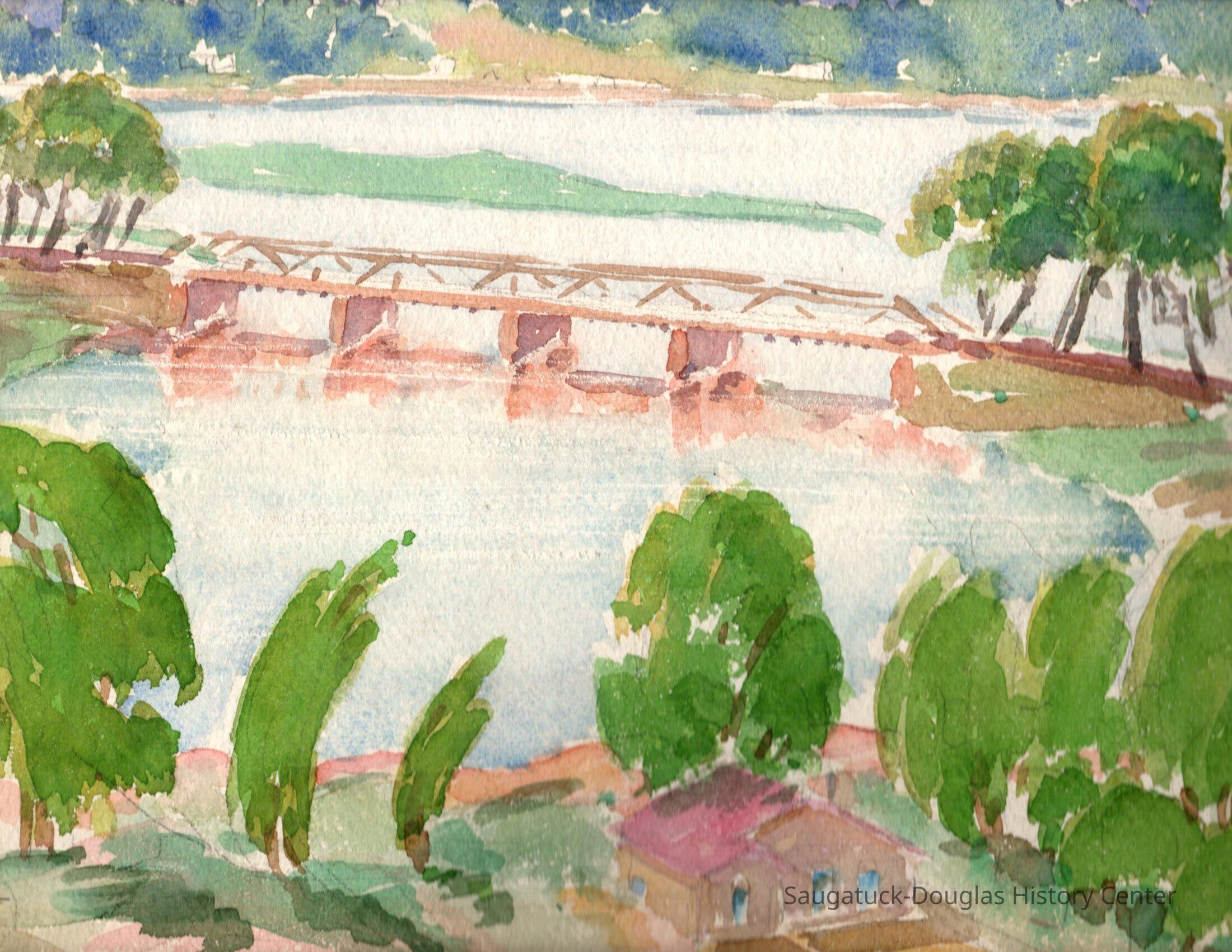 14"x11" watercolor on paper of the old swing bridge that went over the Kalamazoo River in Saugatuck. The signature of Art Deam and the date: July 1932 is written on the backType of Painting