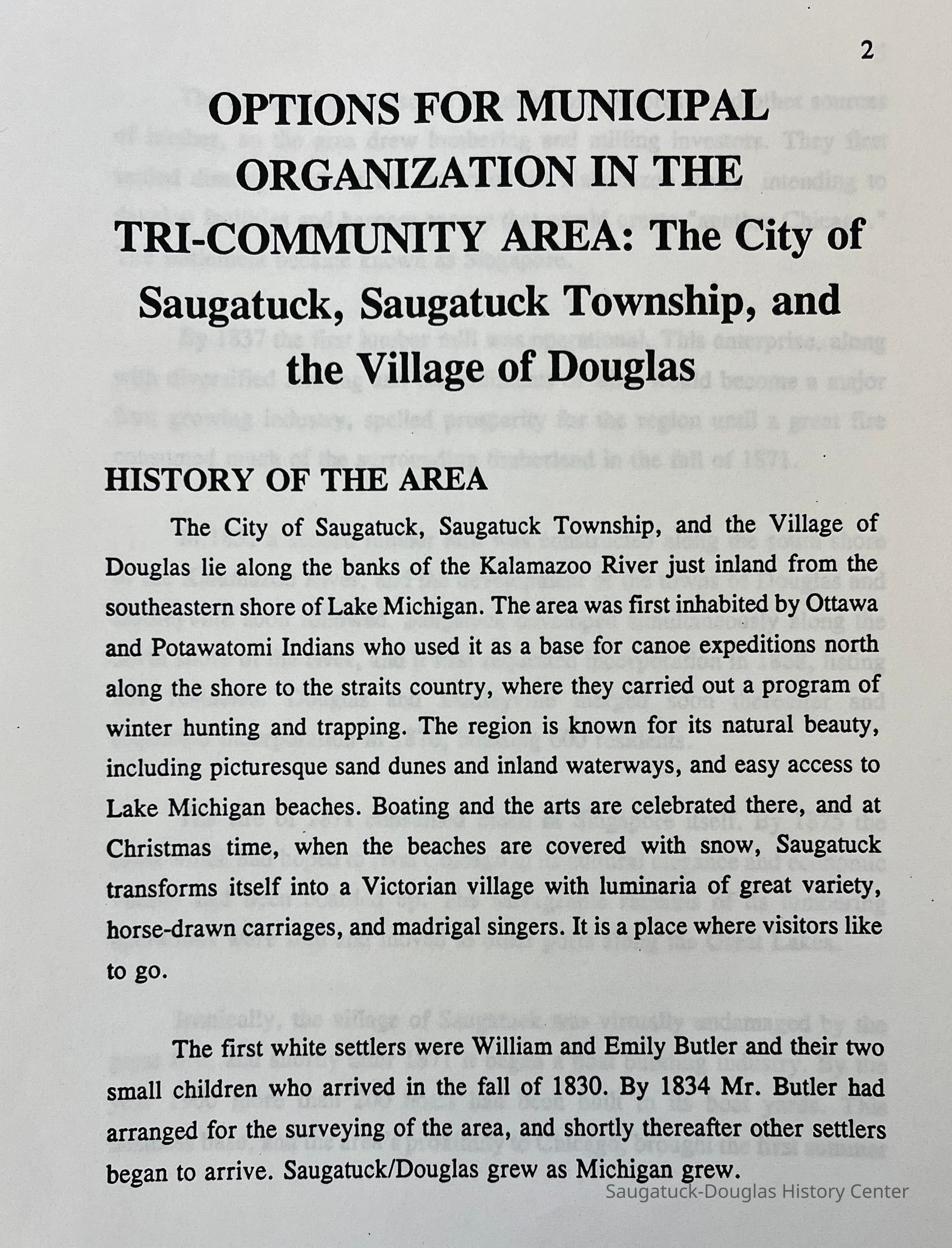 Options for Municipal Organization in the Tri-community Area: The City of Saugatuck, Saugatuck Township, and the Village of DouglasEntry/Object ID