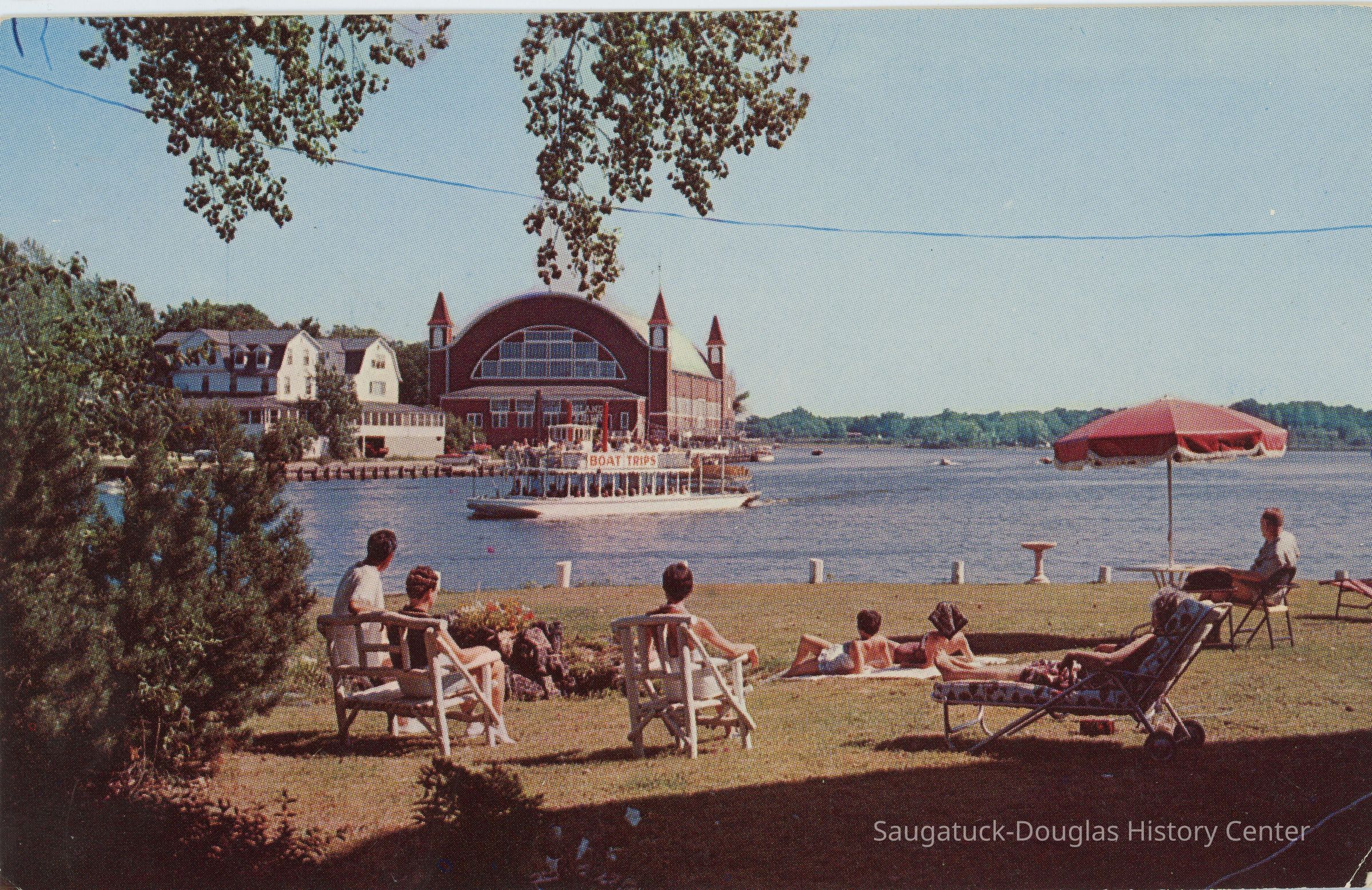 Overlooking the Kalamazoo River showing the Big Pavilion at Saugatuck, Michigan.Transcription