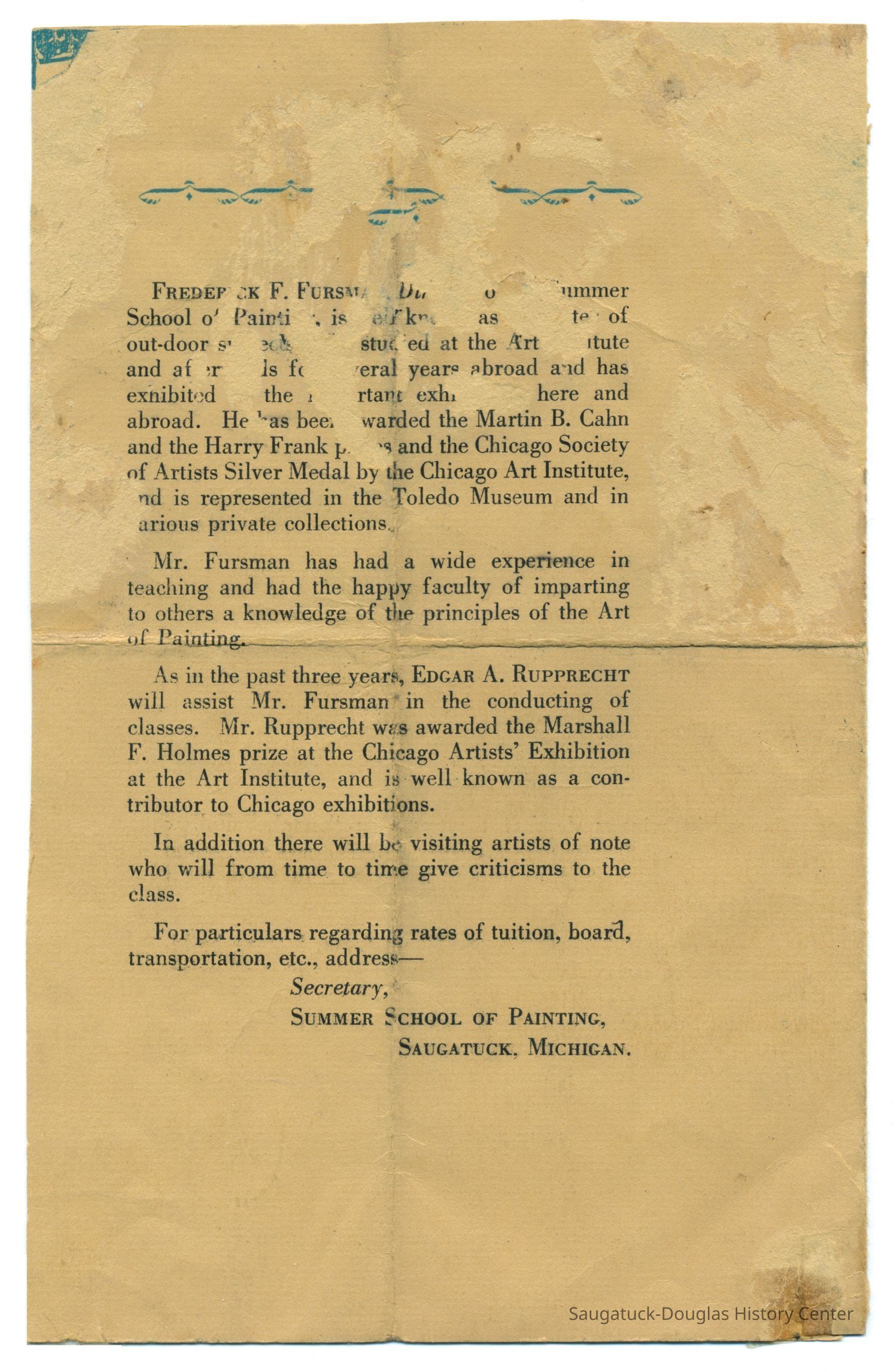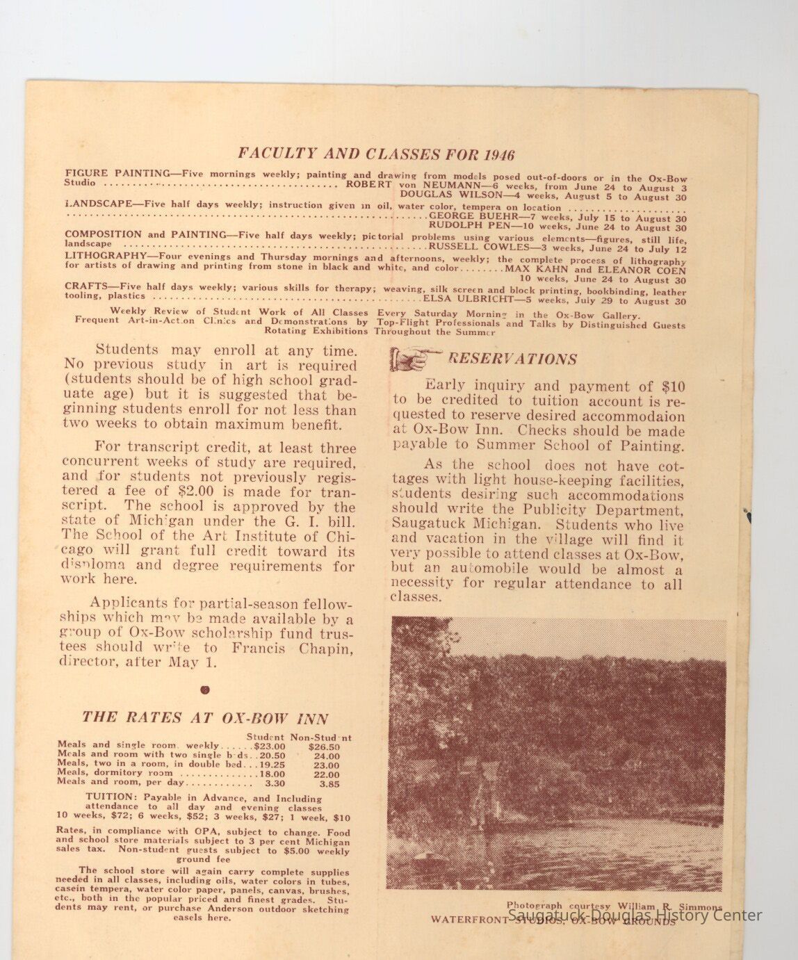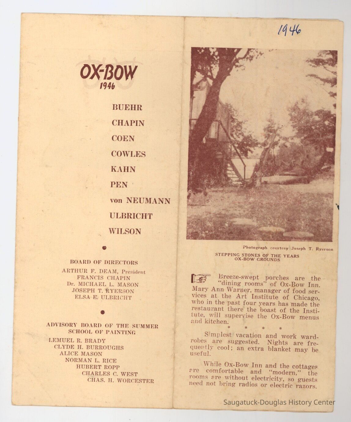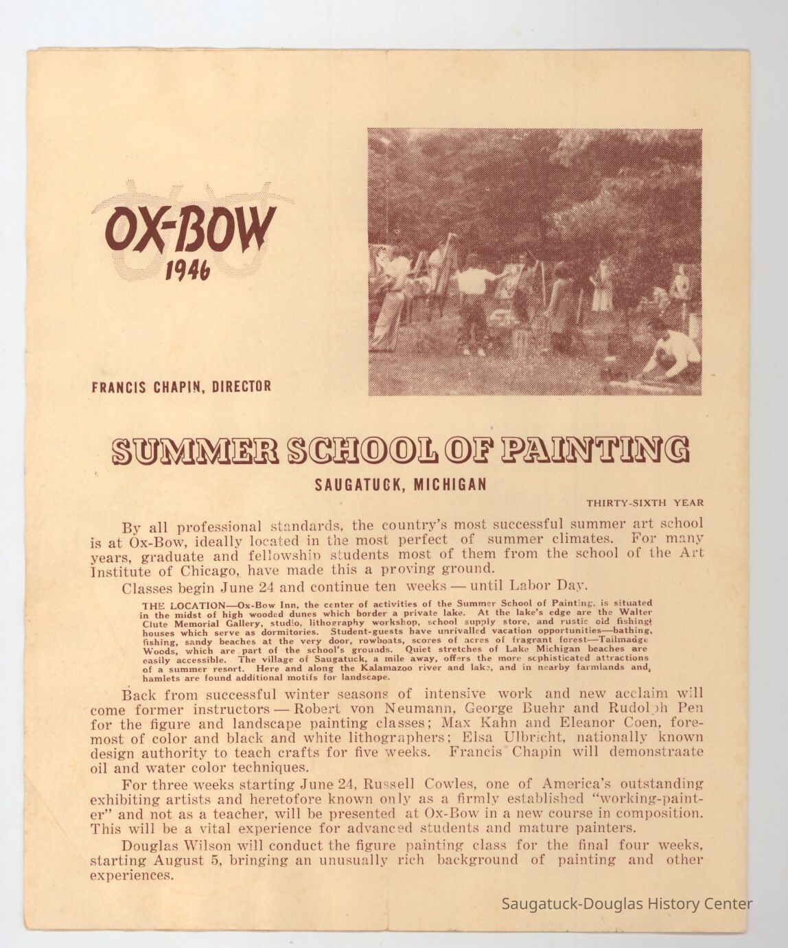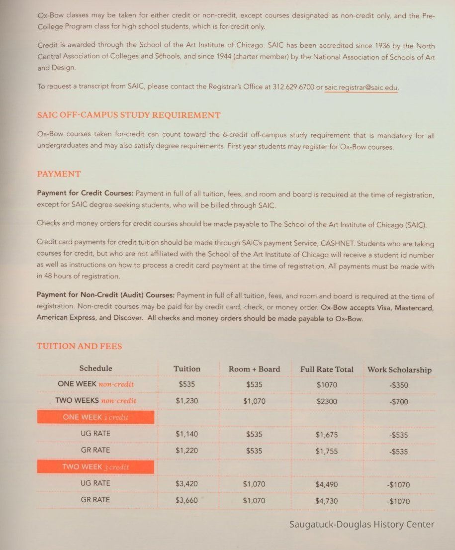 Digital scans of Ox-Bow programs, brochure or course catalogs from 1919, 1924, 1933, 1939, 1946, 1957, 1958, 1960, 1974, 1988, 2009 and 2010. In most cases only some of the pages were scanned.Context