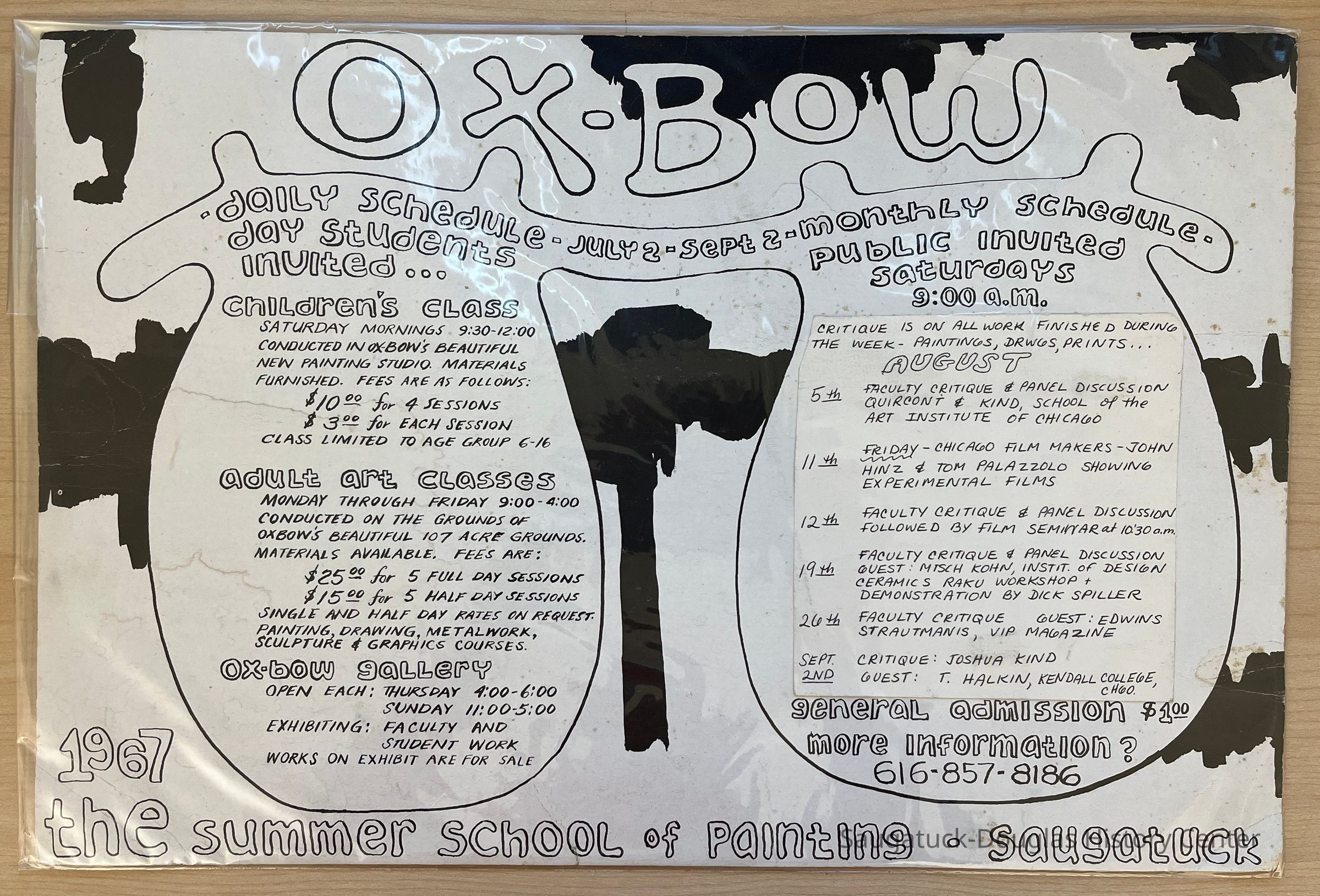 Poster of the daily schedule at Ox Bow 1967