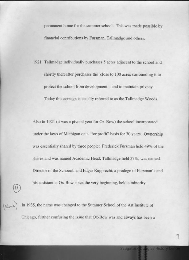 Ox-Bow is familiar (pause).. Ox-Bow is unknown, mysterious. It seems that since its founding days, Ox-Bow has been a place that comforts and soothes those that visit yearly while simultaneously providing endless fodder for those who are curious, but distant. Part of the reason I am here, speaking to you all tonight, is because of this enduring curiosity - that wonderful impulse that propels the young and the lucky old to expand their world through knowledge and experience. Unlike most of you, I didn't come to know Ox-Bow because of my curiosity... I simply needed a job. That was four years ago, making me a bit of an Ox-Bow pup. In this short time, however, I have had the opportunity to dip into the Ox-Bow archives, and to learn of Ox-Bow's history through various texts, newspaper articles, and from stories some of you have told me. I am not an expert on the history of Ox-Bow, nor have I scoured the archives from end to end - - But. as I have gleaned the facts and folklore of this, the oldest summer school of art in the Midwest (second oldest in the country)...I tell you that my curiosity has been piqued, the hunger for information has grown, but the meal is not to be finished.