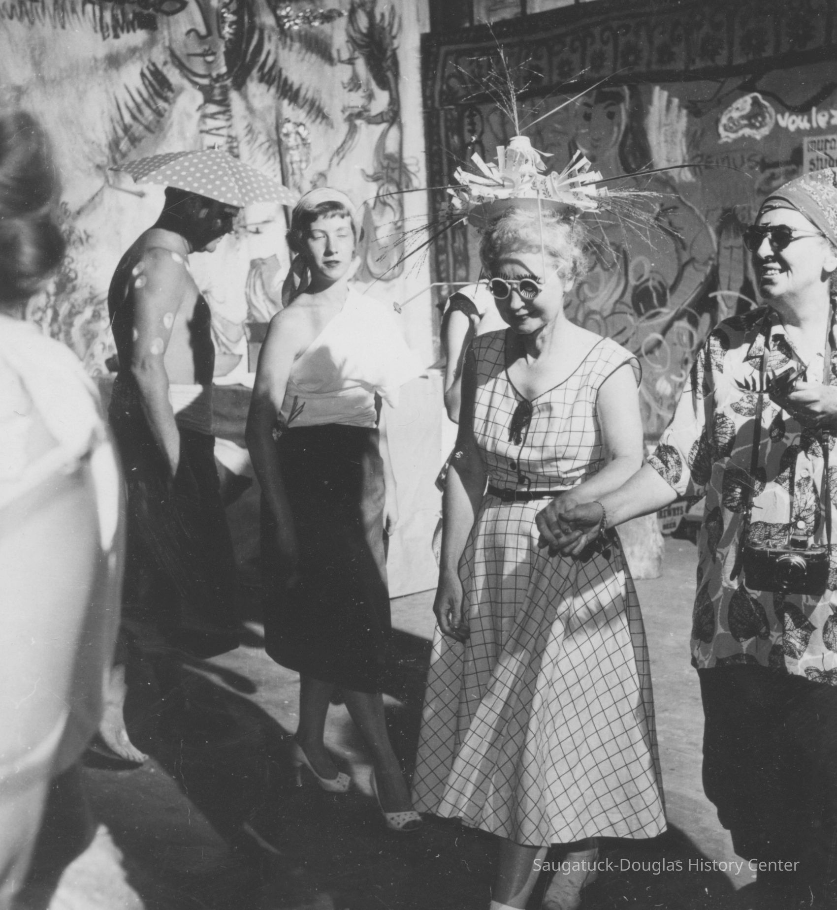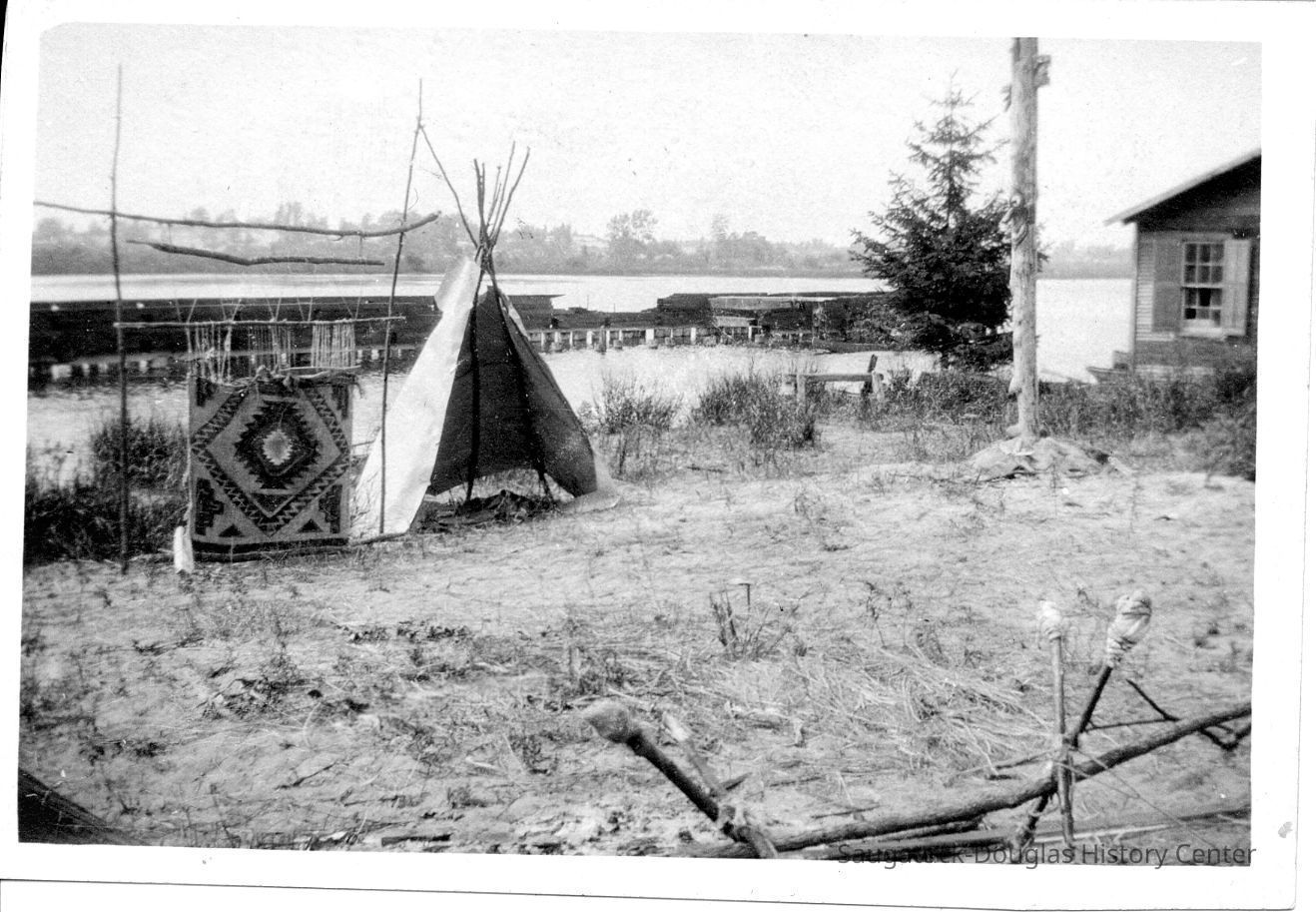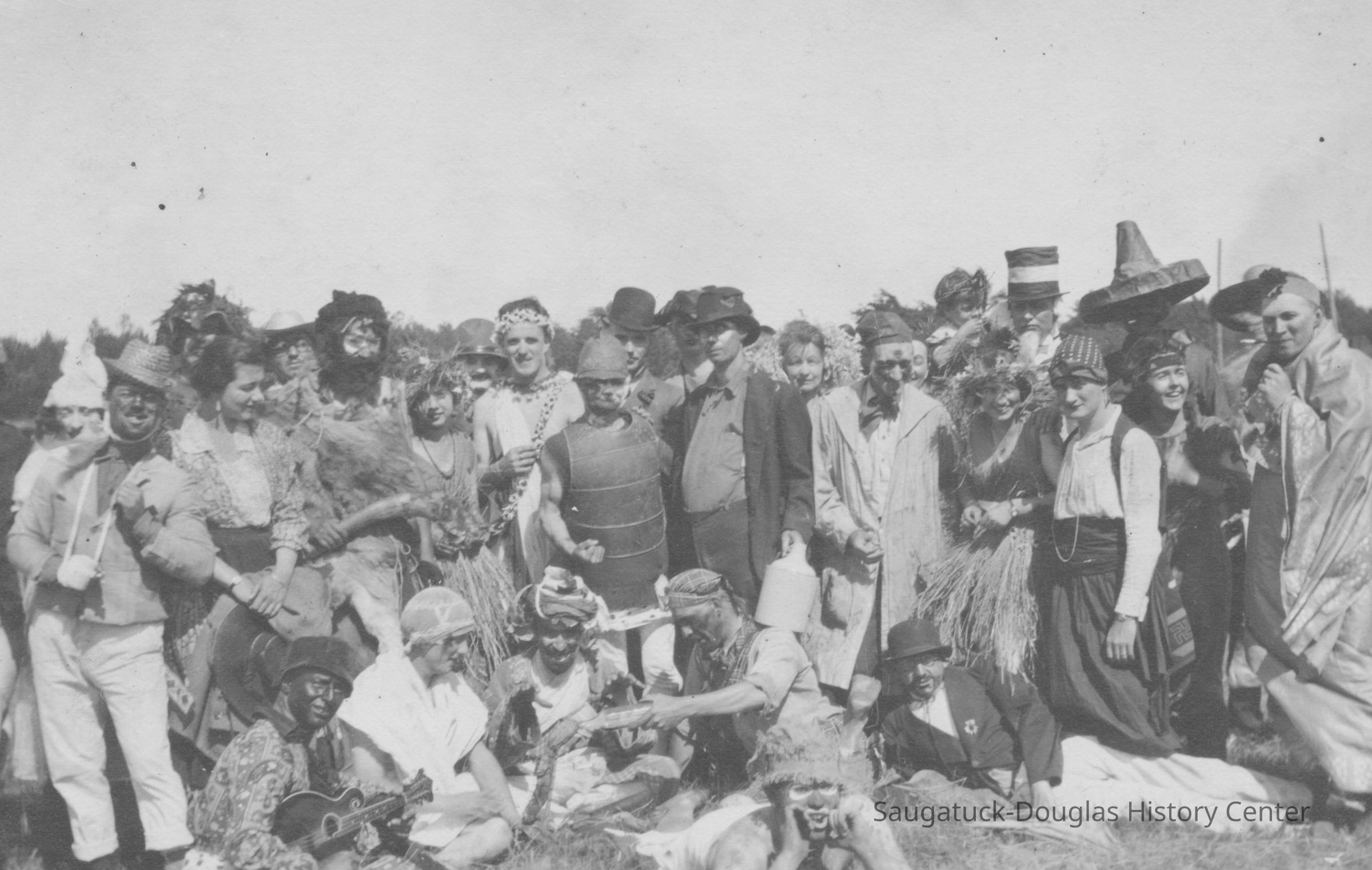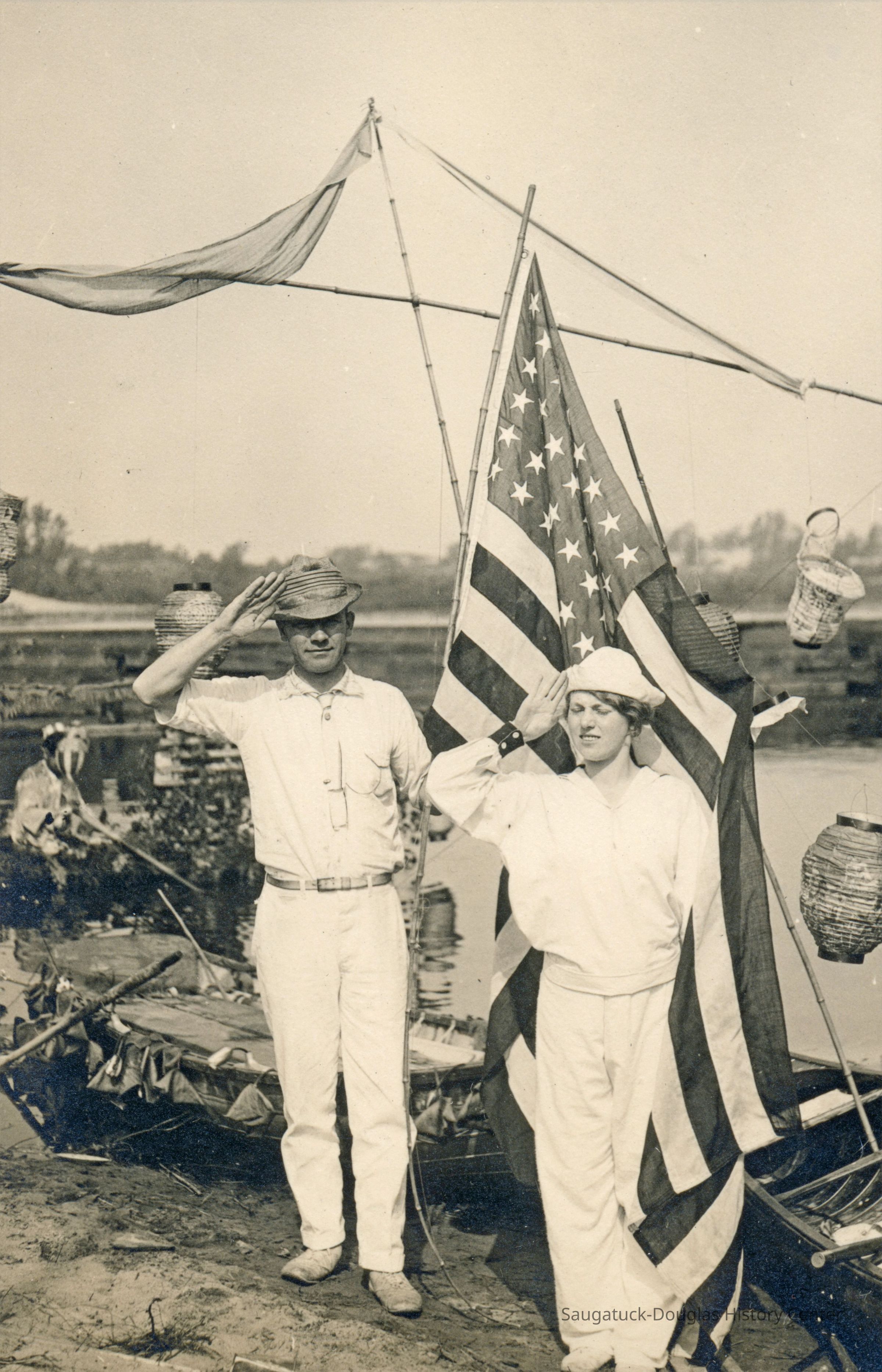 Digital images of pageants, costumed performances and parties at Ox-Bow including Venetian lighted boat parades, Hiawatha pageant, and raising a faux totem pole.