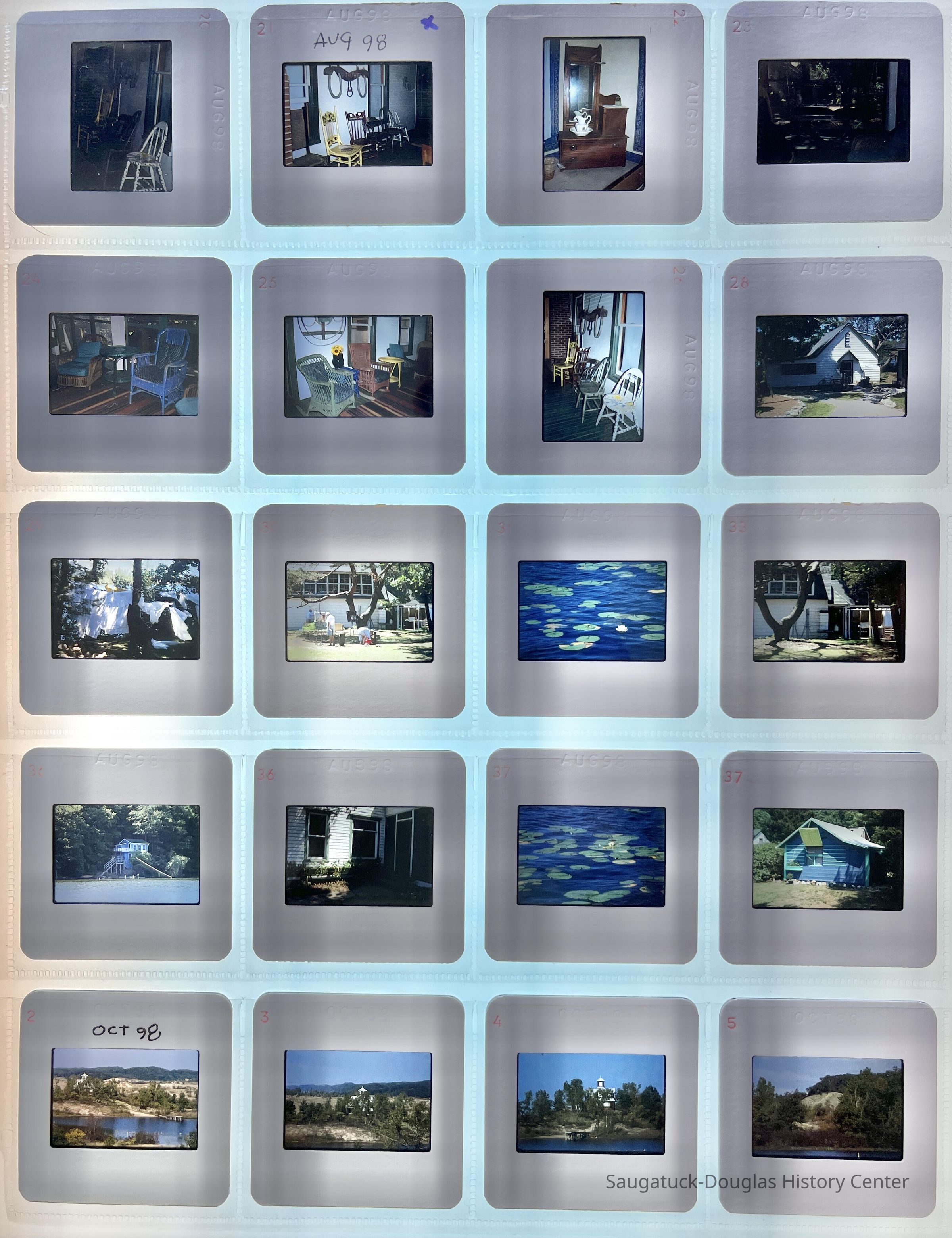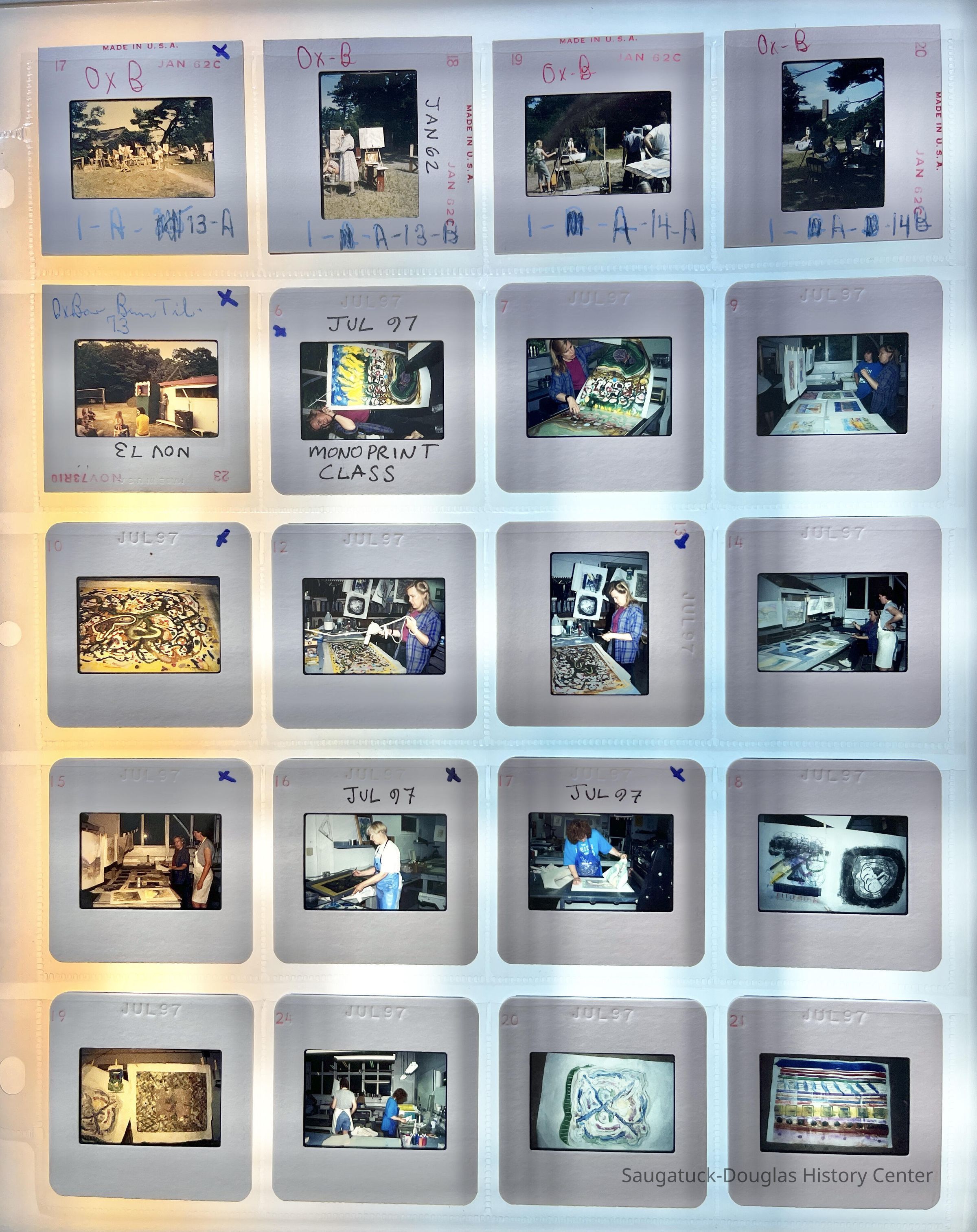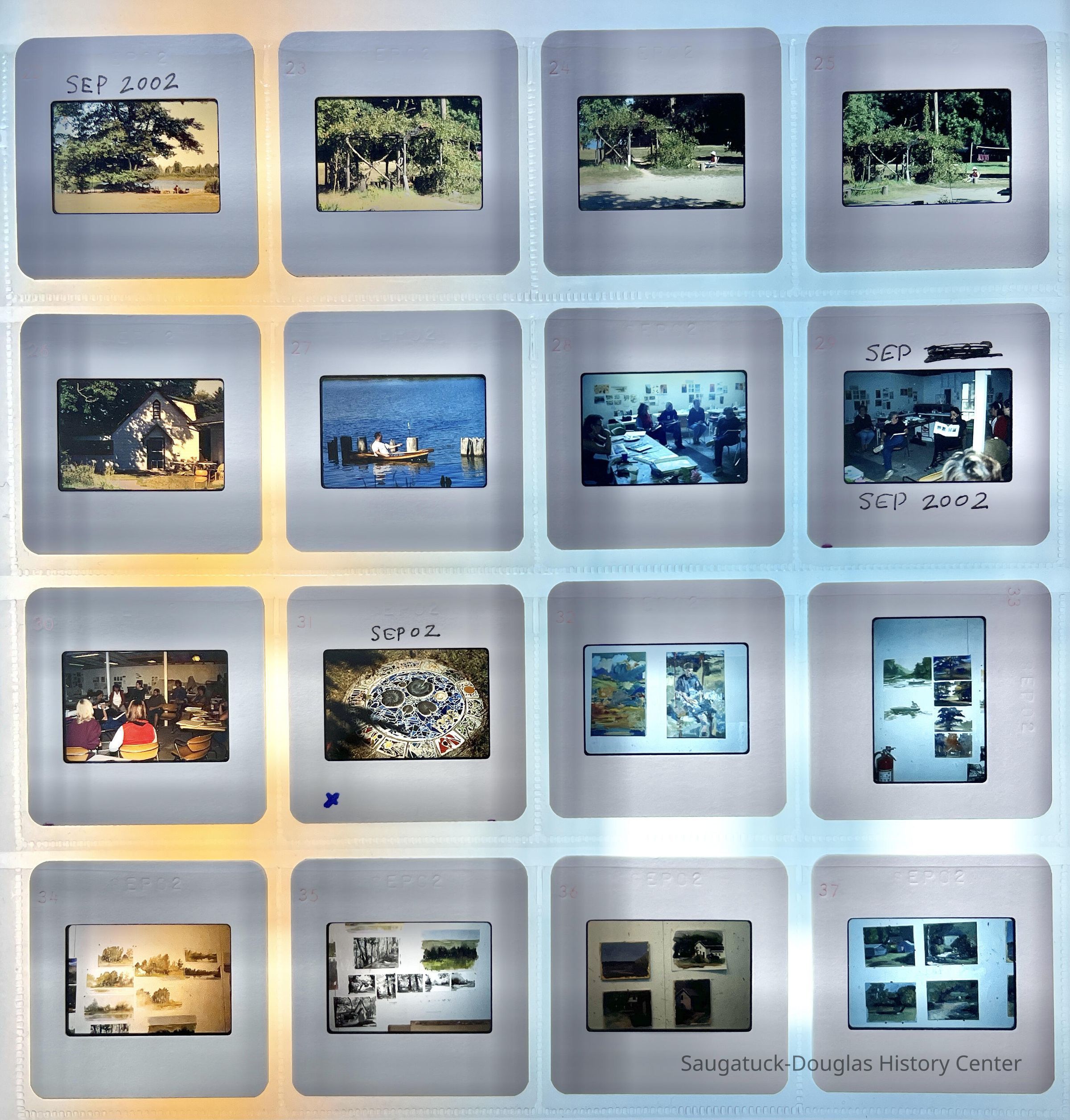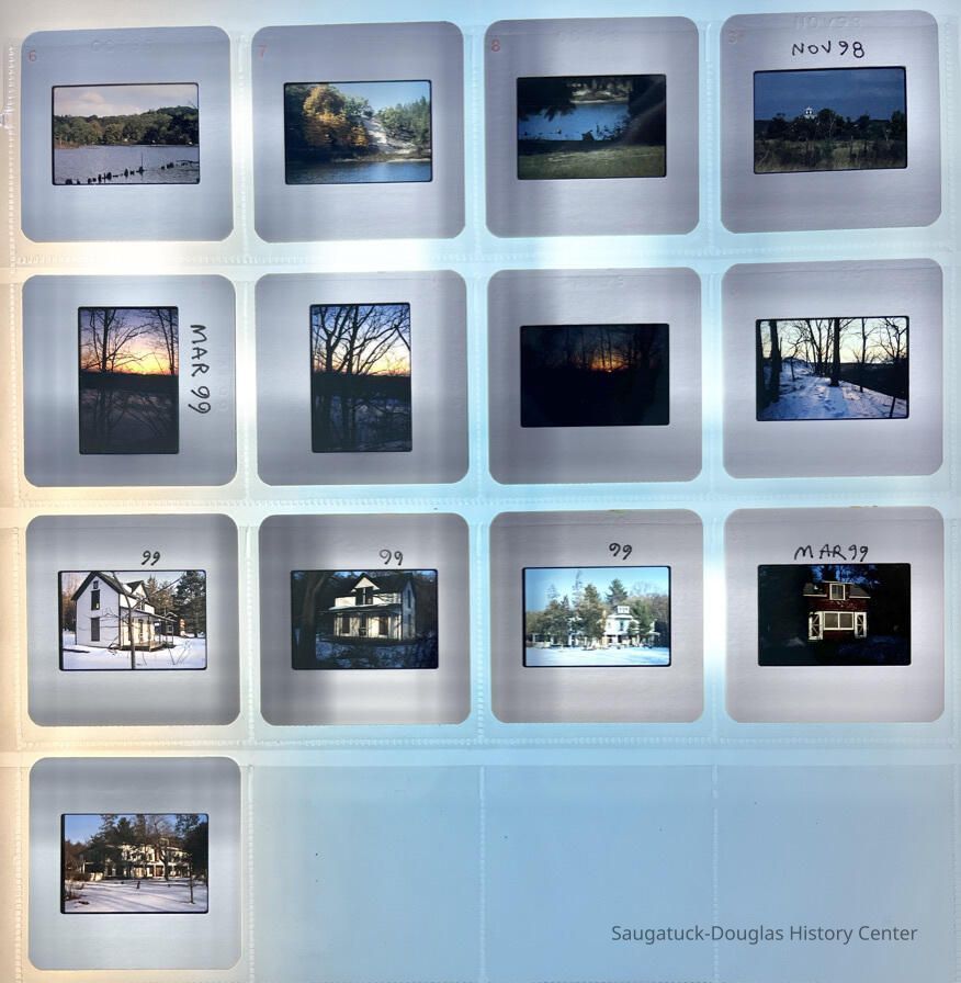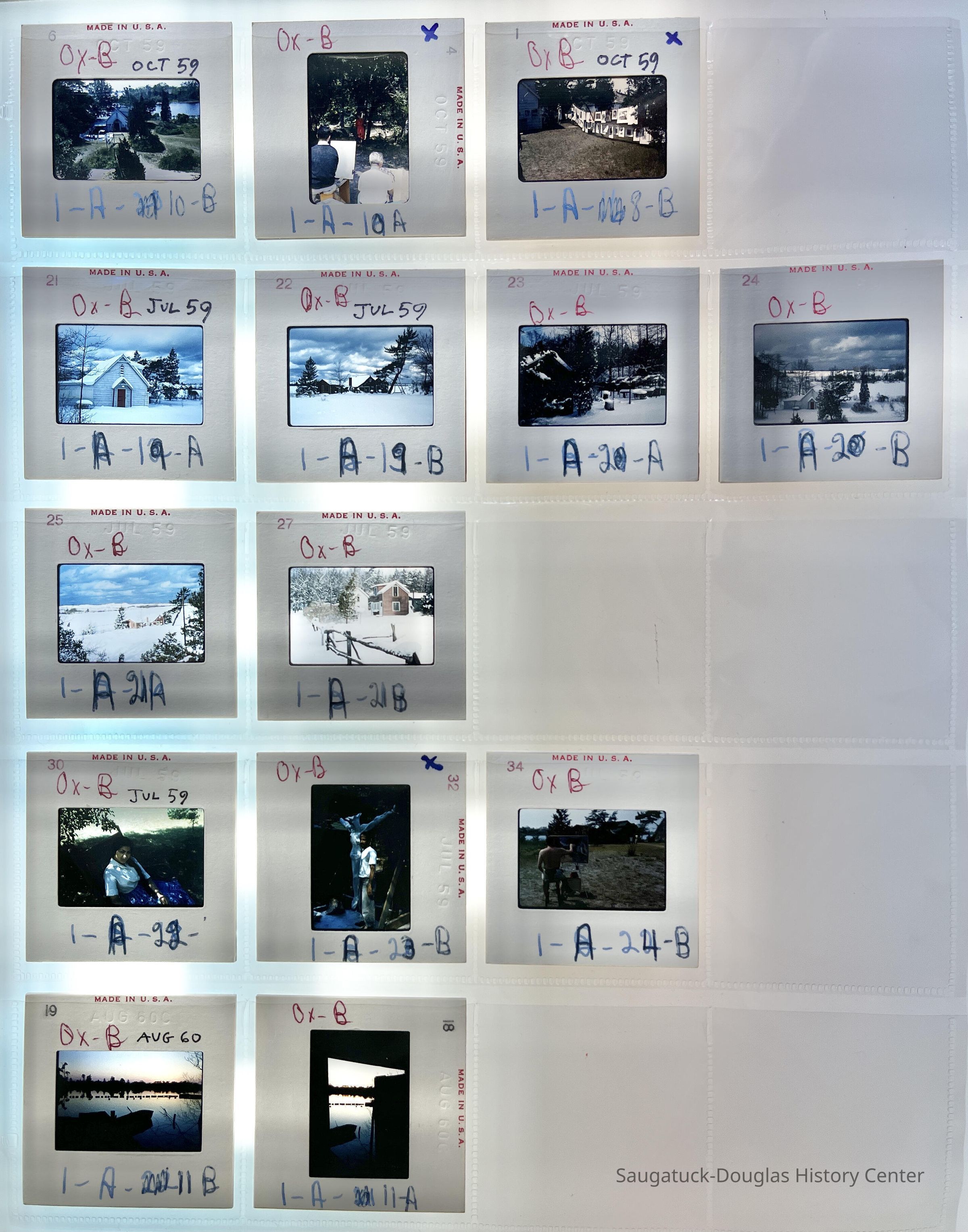 Fourteen pages of color slides created by Mike and Mae Van Ark from the late 50s and early 1960s when he was the Business Administrator there to 2002.