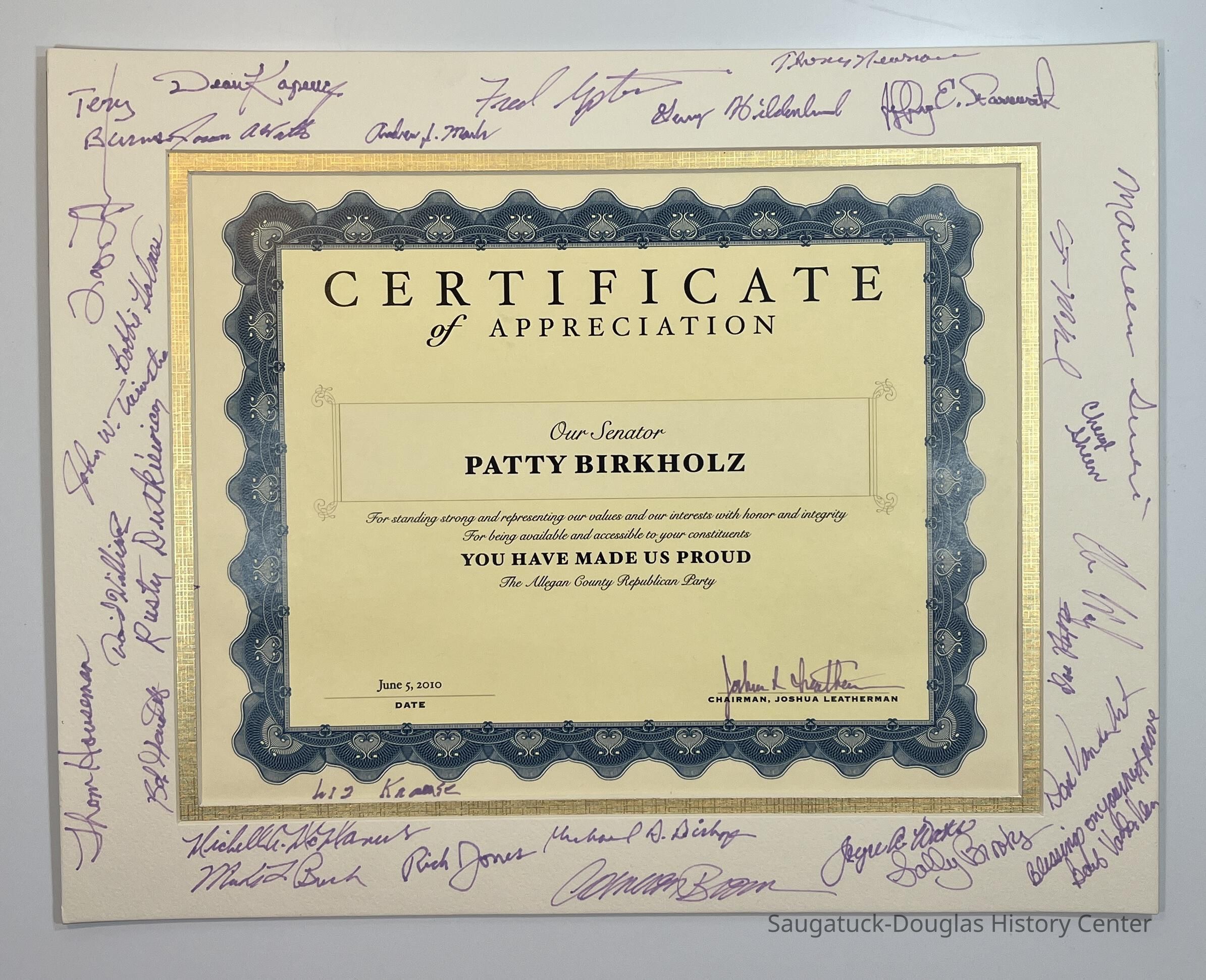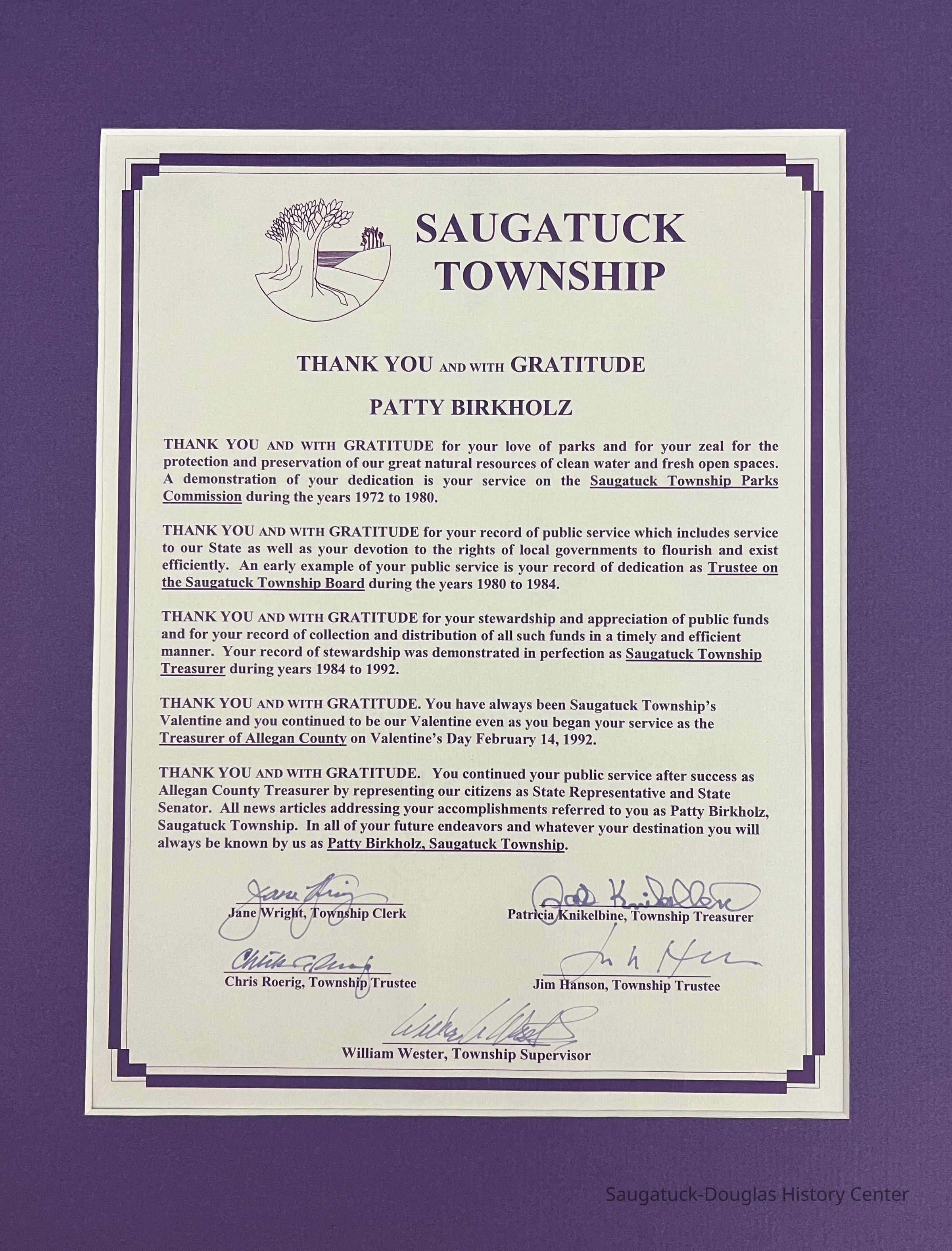 Patty Birkholz plaques and awardsEntry/Object ID