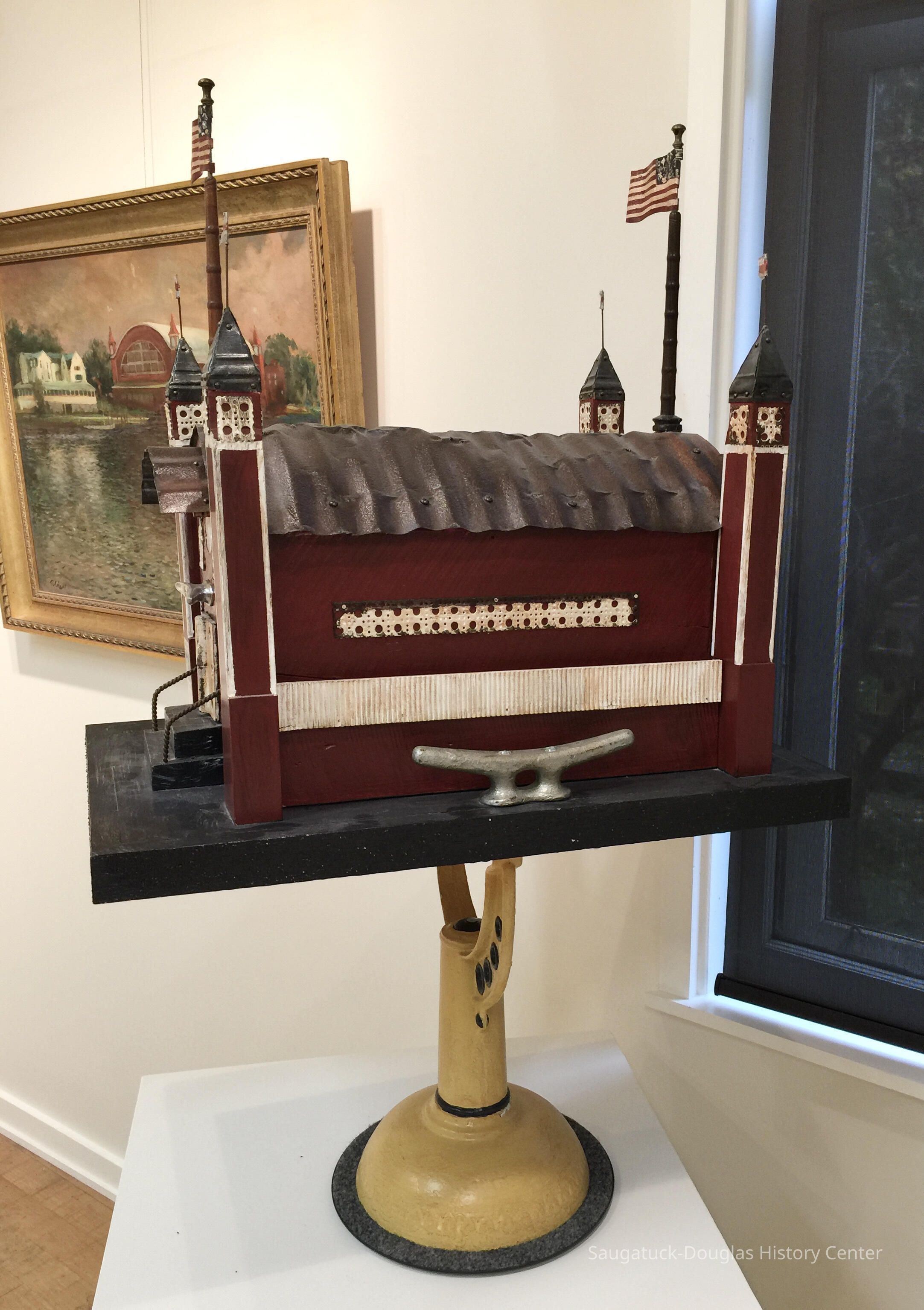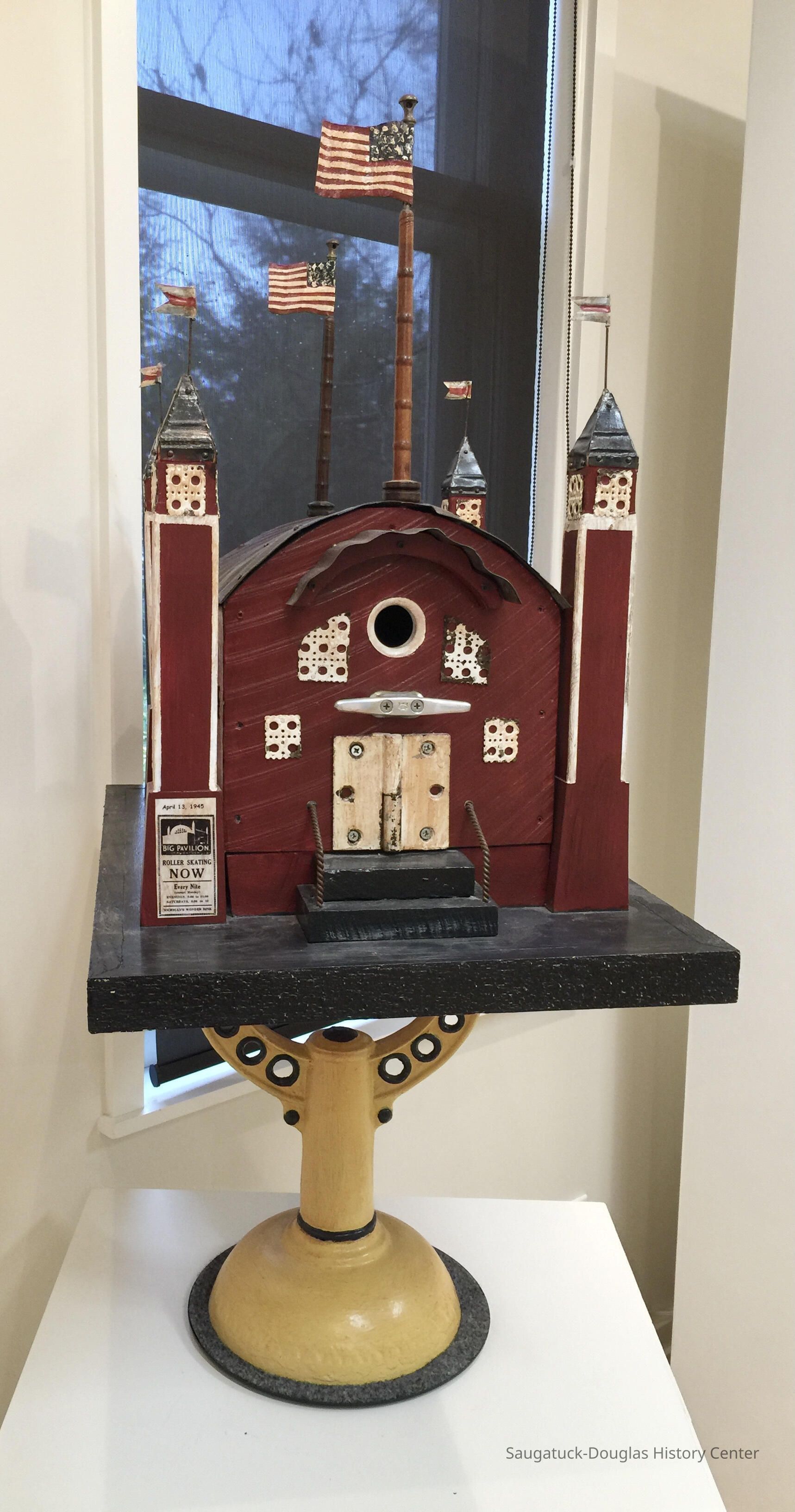 Working with found items, Sigler creates objects intended to evoke memories of special events or past eras. This sculpture captures the majic and mystery of one of Saugatuck's great icons, the Big Pavilion which was destroyed by fire in 1960.