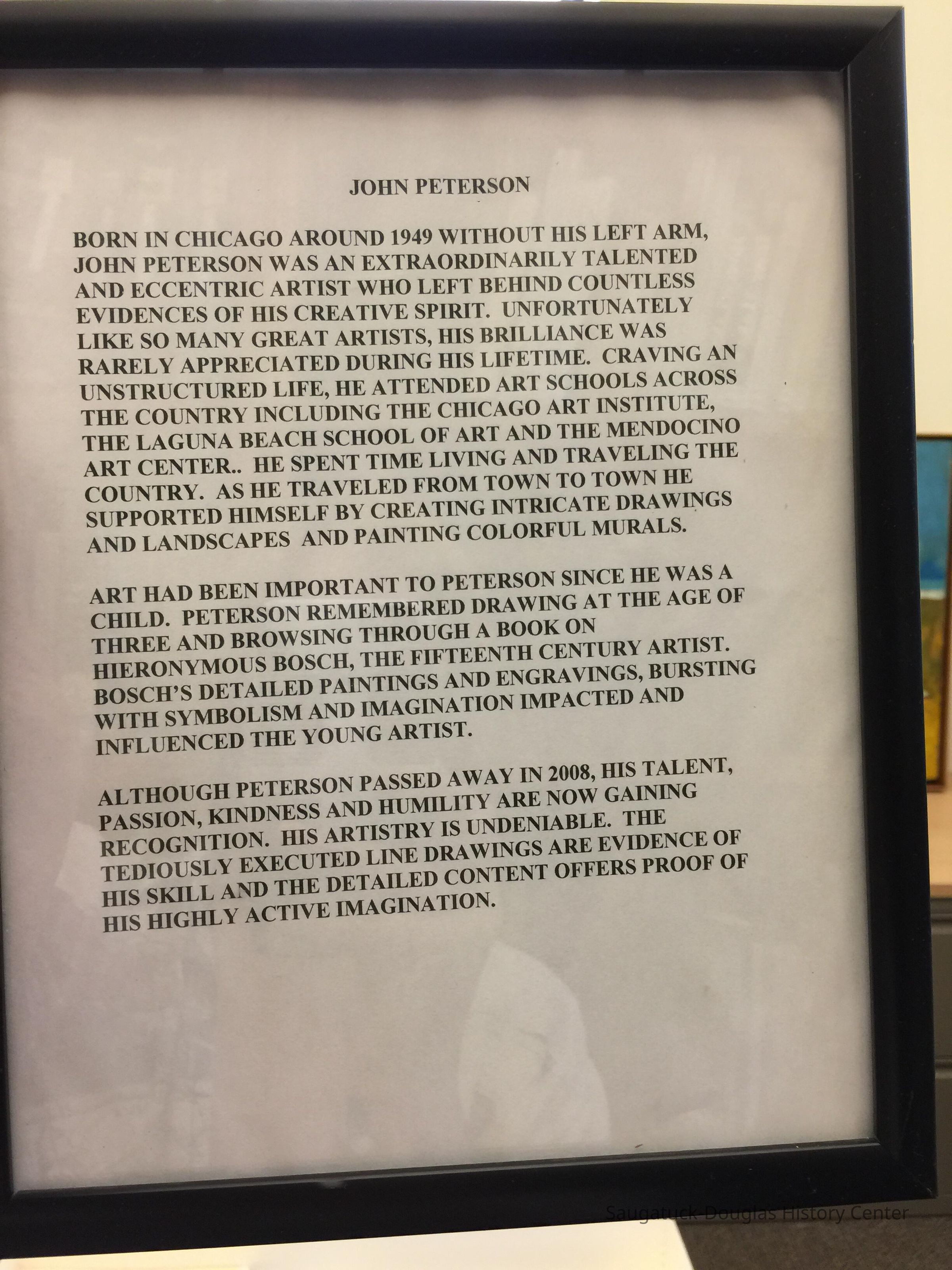 Peterson, John c1949-2008Location