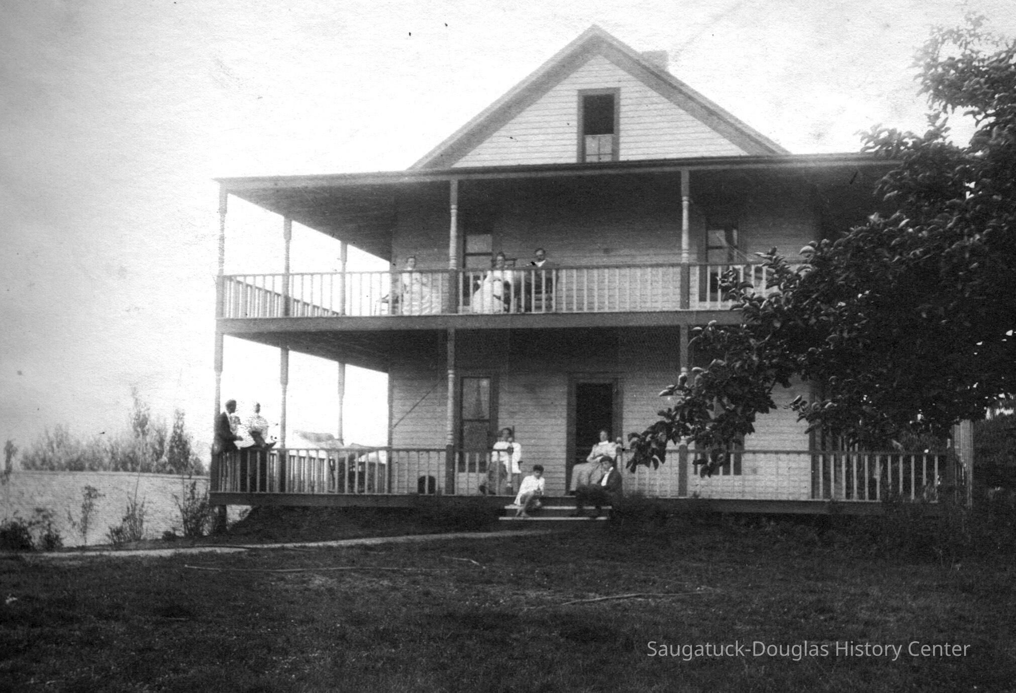 J. B. Johnson and family and W. S. Curtis and family spent the summer of 1897 in the Spafford cottage and the Melchers lived in the little cottage now used as the Johnson kitchen and dining room. We moved into “The Porches” in 1898”.