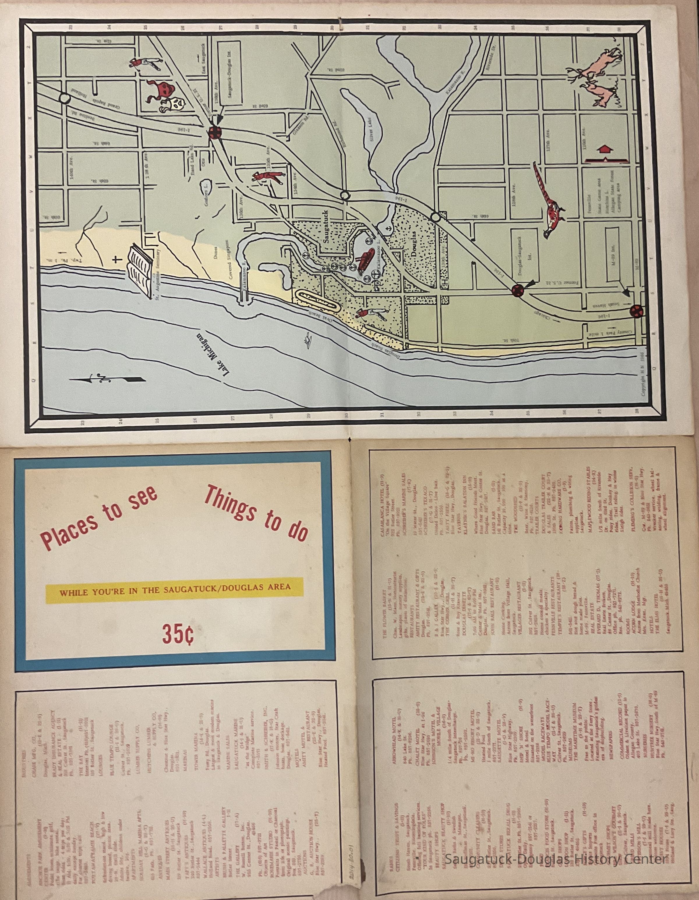 A fold-out map of the Saugatuck/Douglas area listing things to see and do in the area. Price 35 cents.Collection