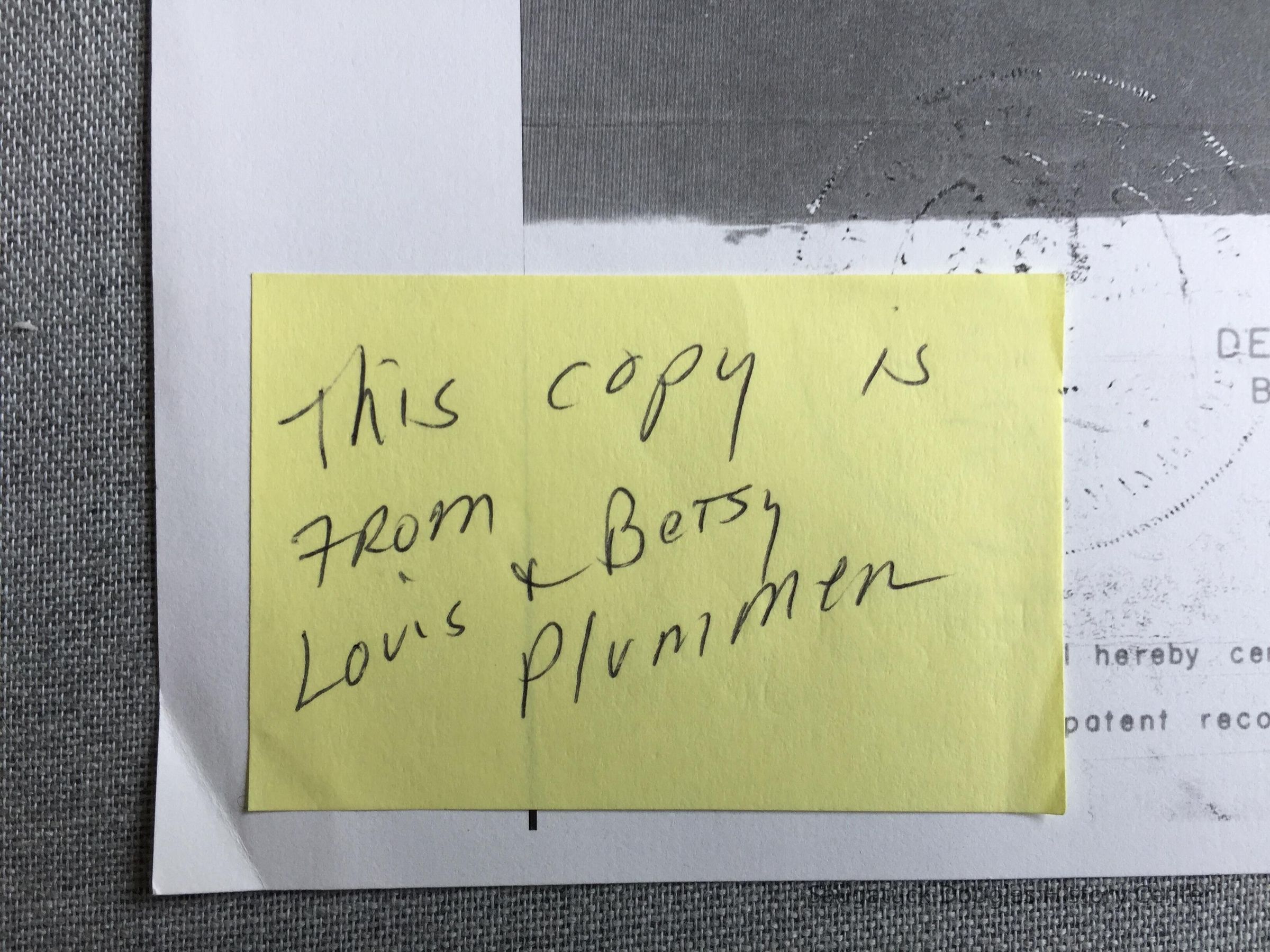 Post-it note on copy says "This copy is from Louis & Betsy Plummer"Relationships