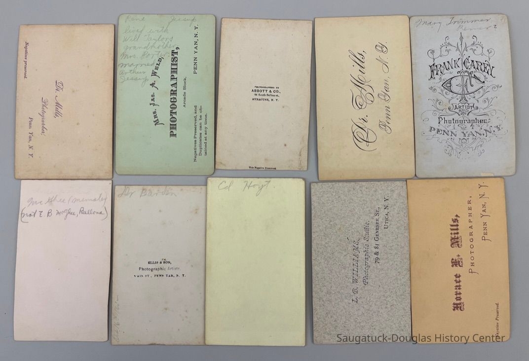 Carte de viste (photographic visiting cards) from Penn Yan, New York area that were wrapped in a Putnam Fadeless Dye envelope. Each card is about 2x3.5"