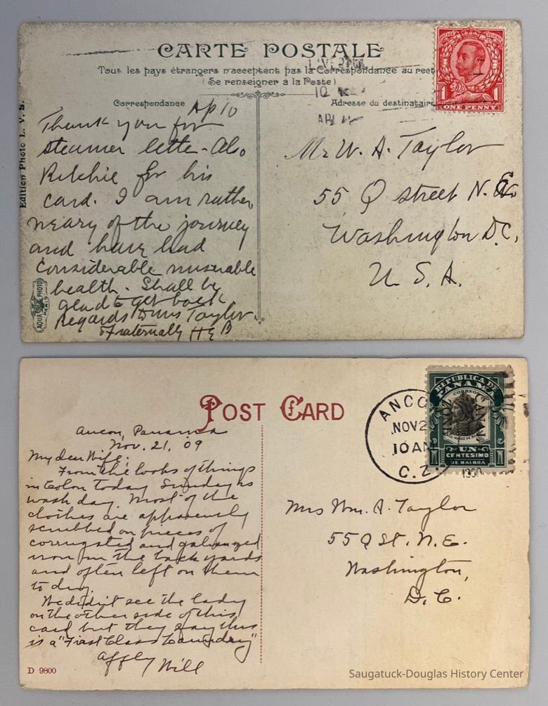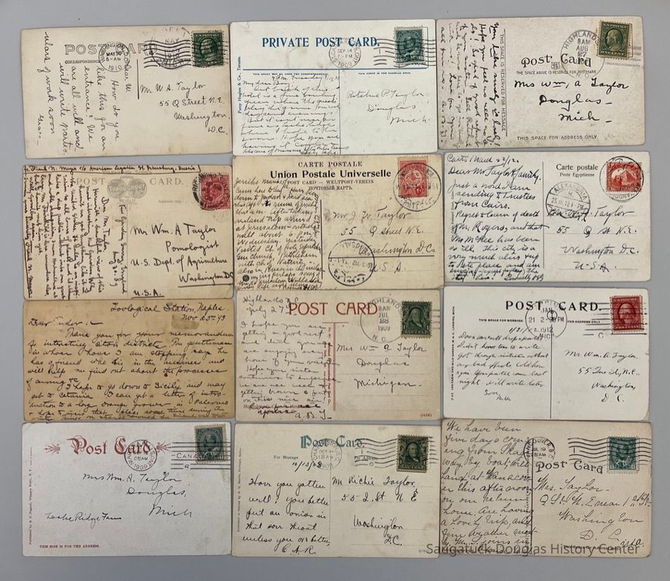 Tourist postcards from all over the world - most addressed to Mr. W.A. Taylor, in Washington, D.C. or Mrs. Taylor in Douglas, Michigan
