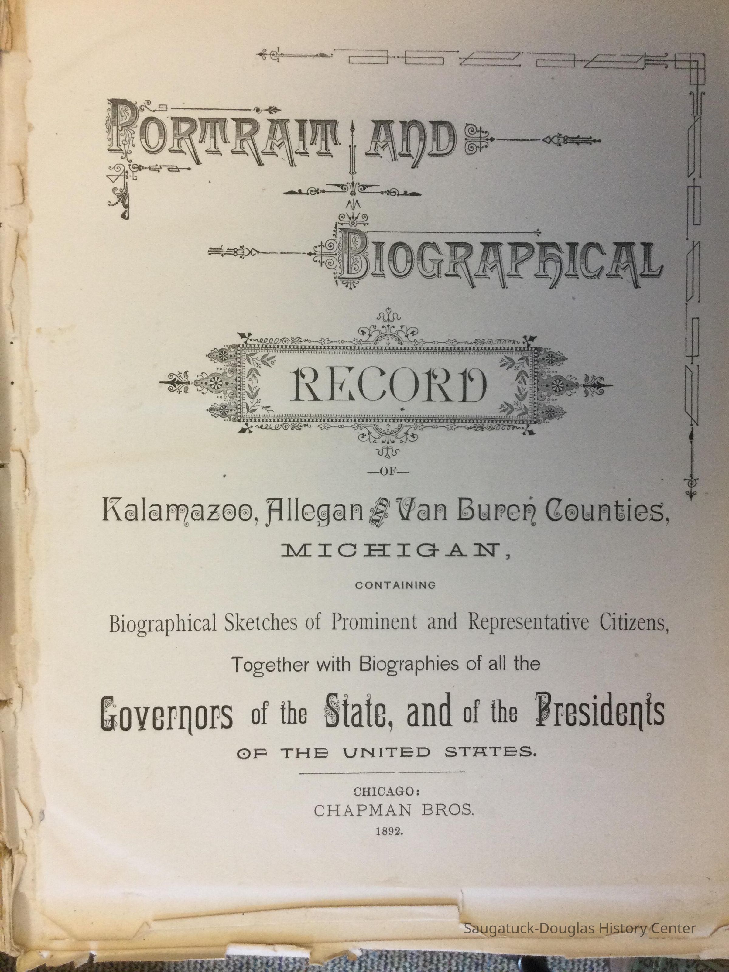 Portrait and biographical record of Kalamazoo, Van Buren & Allegan counties, Michigan. "Containing biographical sketches of prominent and representative citizens, together with biographies of all the governors of the state, and of the presidents of the United States."Entry/Object ID