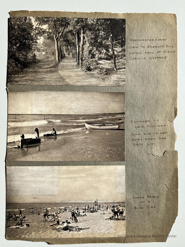 Children on Lake Michigan, "such fun to get away from the dirty city," b/w real photo card