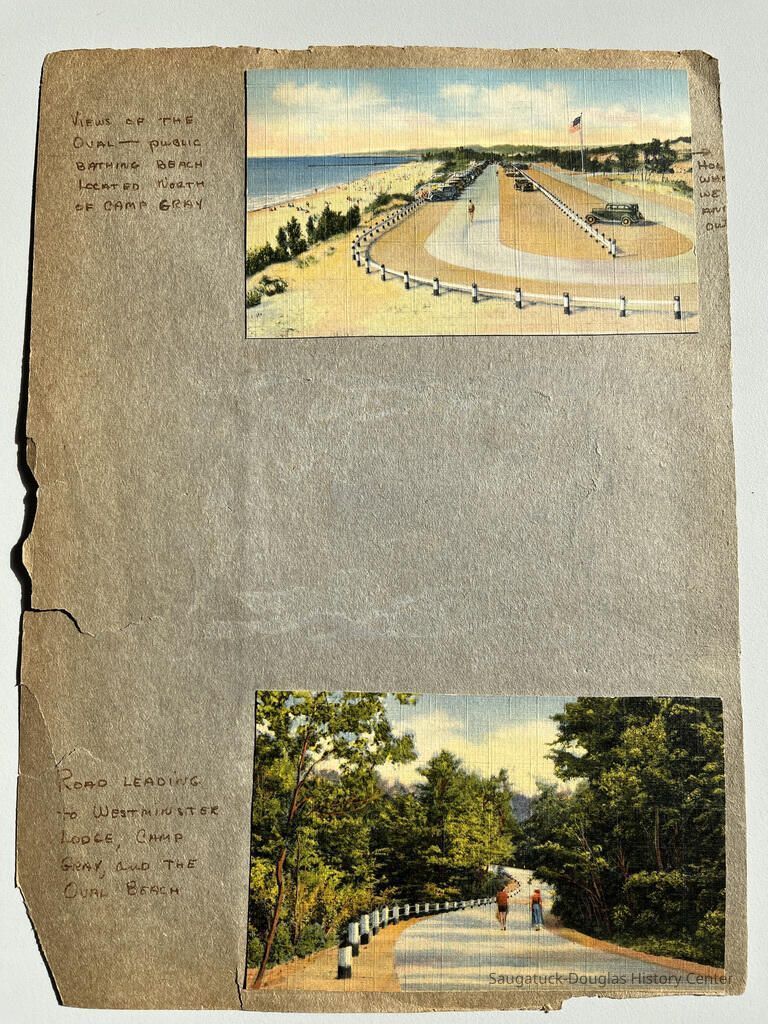 Road leading to Westminster Lodge, Camp Gray and the Oval Beach, color postcard.Cataloged By