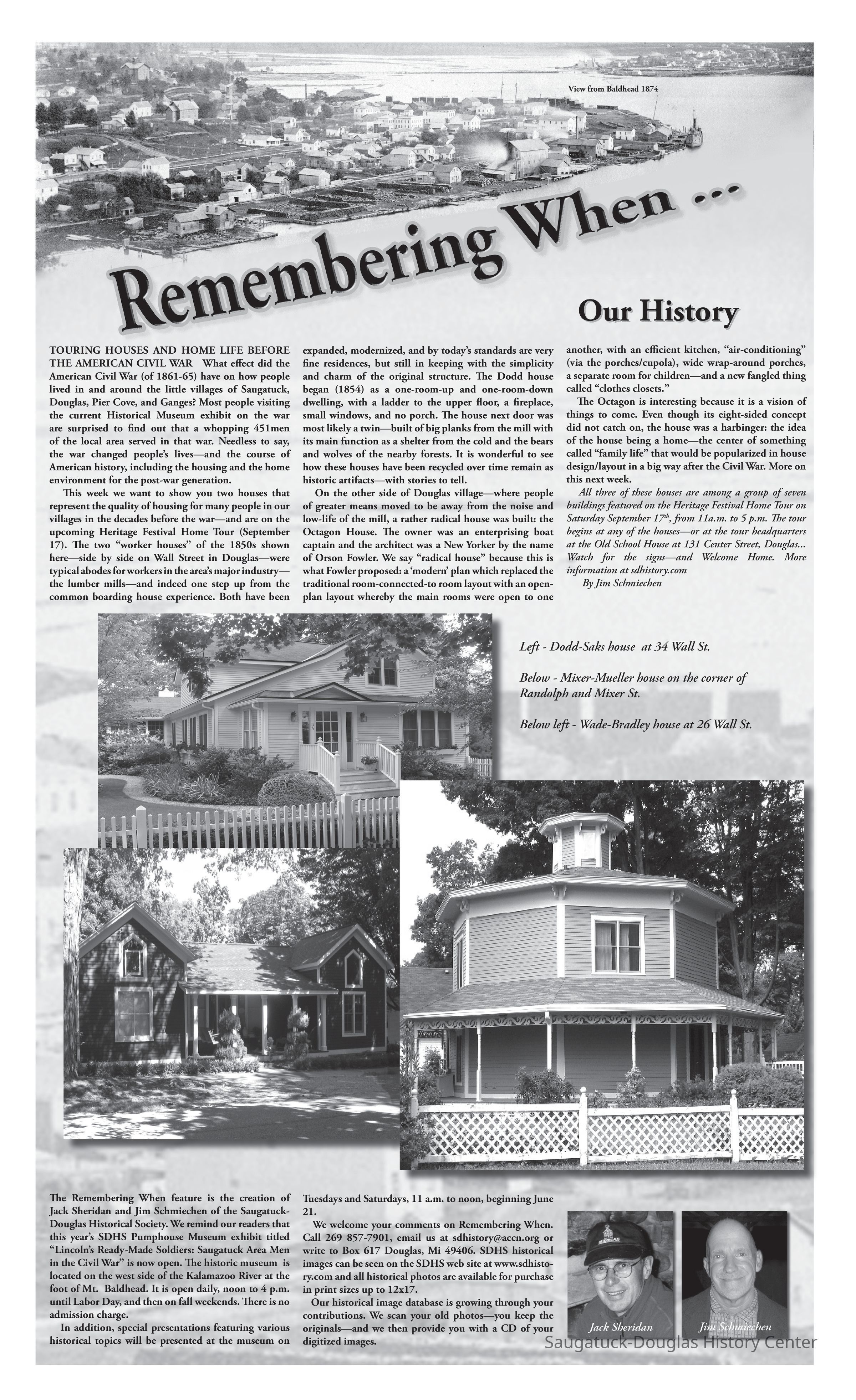 Touring Houses and Home Life Before the American Civil War What effect did the American Civil War (of 1861-65) have on how people lived in and around the little villages of Saugatuck, Douglas, Pier Cove, and Ganges? Most people visiting the current Historical Museum exhibit on the war are surprised to find out that a whopping 451men of the local area served in that war. Needless to say, the war changed people’s lives—and the course of American history, including the housing and the home environment for the post-war generation.