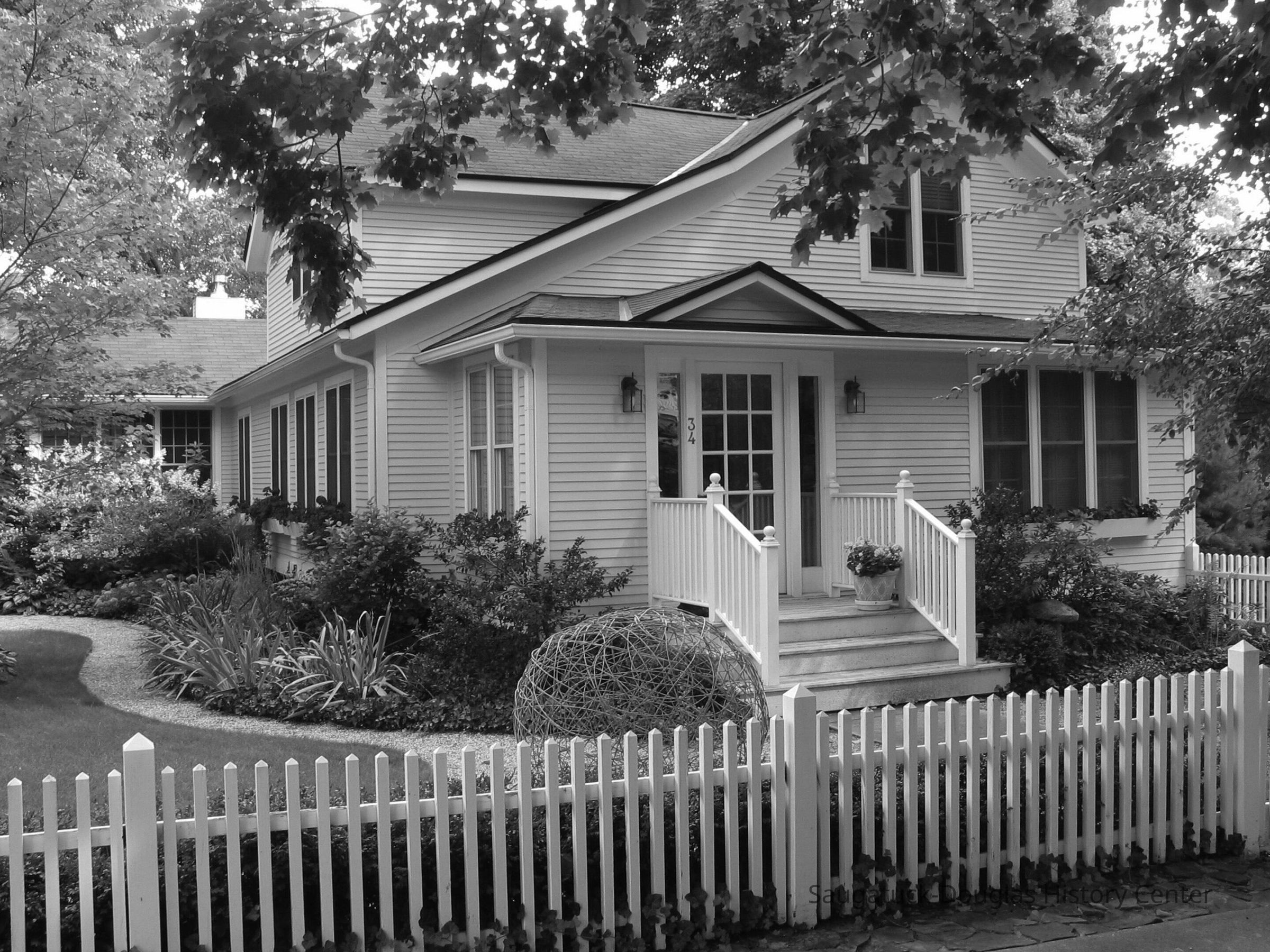 This week we want to show you two houses that represent the quality of housing for many people in our villages in the decades before the war—and are on the upcoming Heritage Festival Home Tour (September 17). The two “worker houses” of the 1850s shown here—side by side on Wall Street in Douglas—were typical abodes for workers in the area’s major industry—the lumber mills—and indeed one step up from the common boarding house experience. Both have been expanded, modernized, and by today’s standards are very fine residences, but still in keeping with the simplicity and charm of the original structure. The Dodd house began (1854) as a one-room-up and one-room-down dwelling, with a ladder to the upper floor, a fireplace, small windows, and no porch. The house next door was most likely a twin—built of big planks from the mill with its main function as a shelter from the cold and the bears and wolves of the nearby forests. It is wonderful to see how these houses have been recycled over time remain as historic artifacts—with stories to tell.