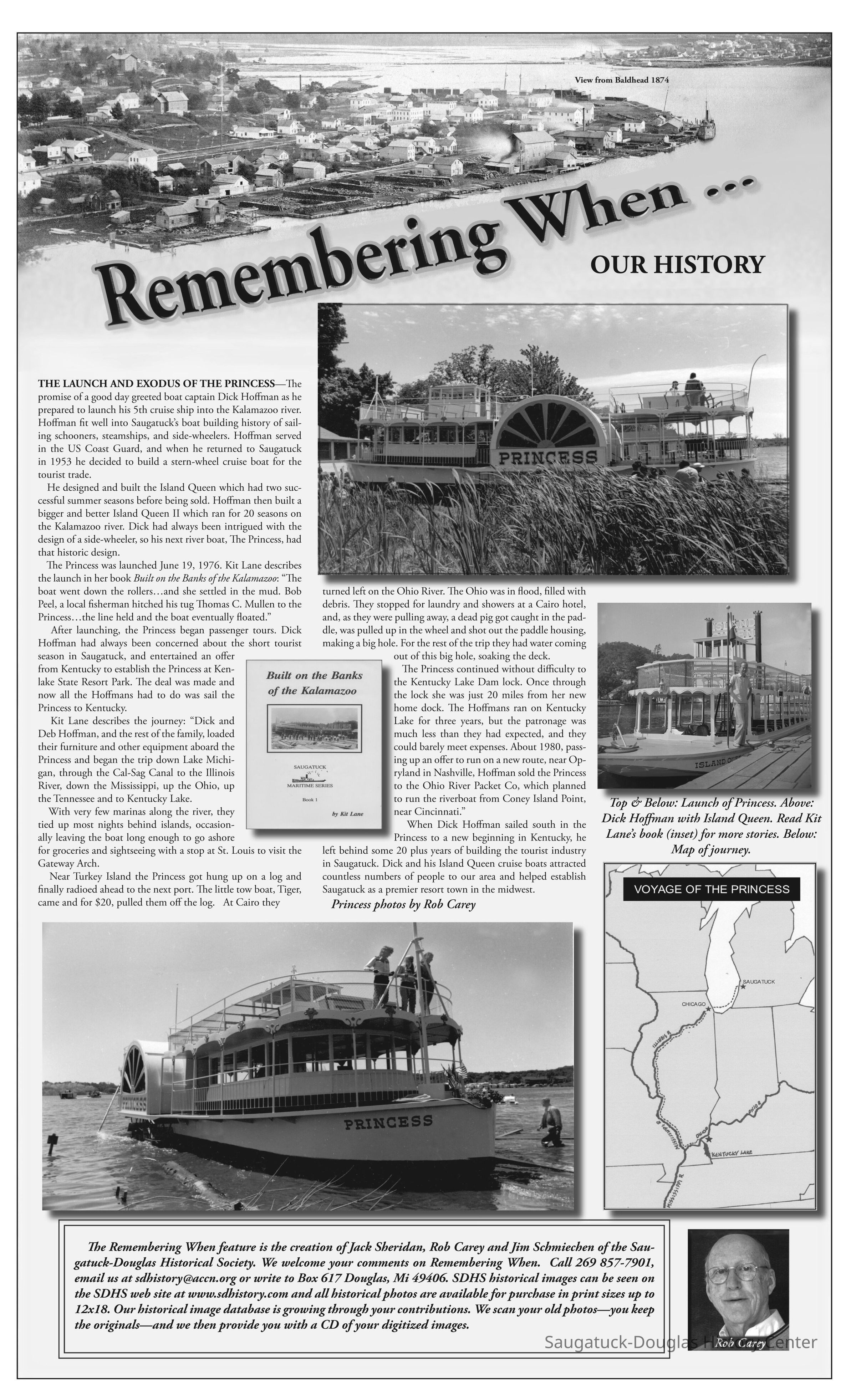 When Dick Hoffman sailed south in the Princess to a new beginning in Kentucky, he left behind some 20 plus years of building the tourist industry in Saugatuck. Dick and his Island Queen cruise boats attracted countless numbers of people to our area and helped establish Saugatuck as a premier resort town in the midwest.