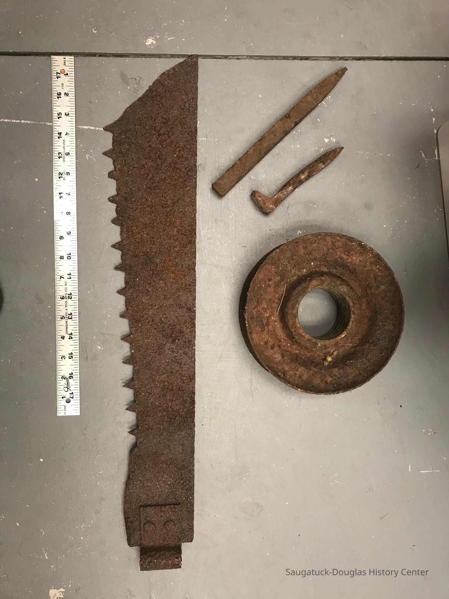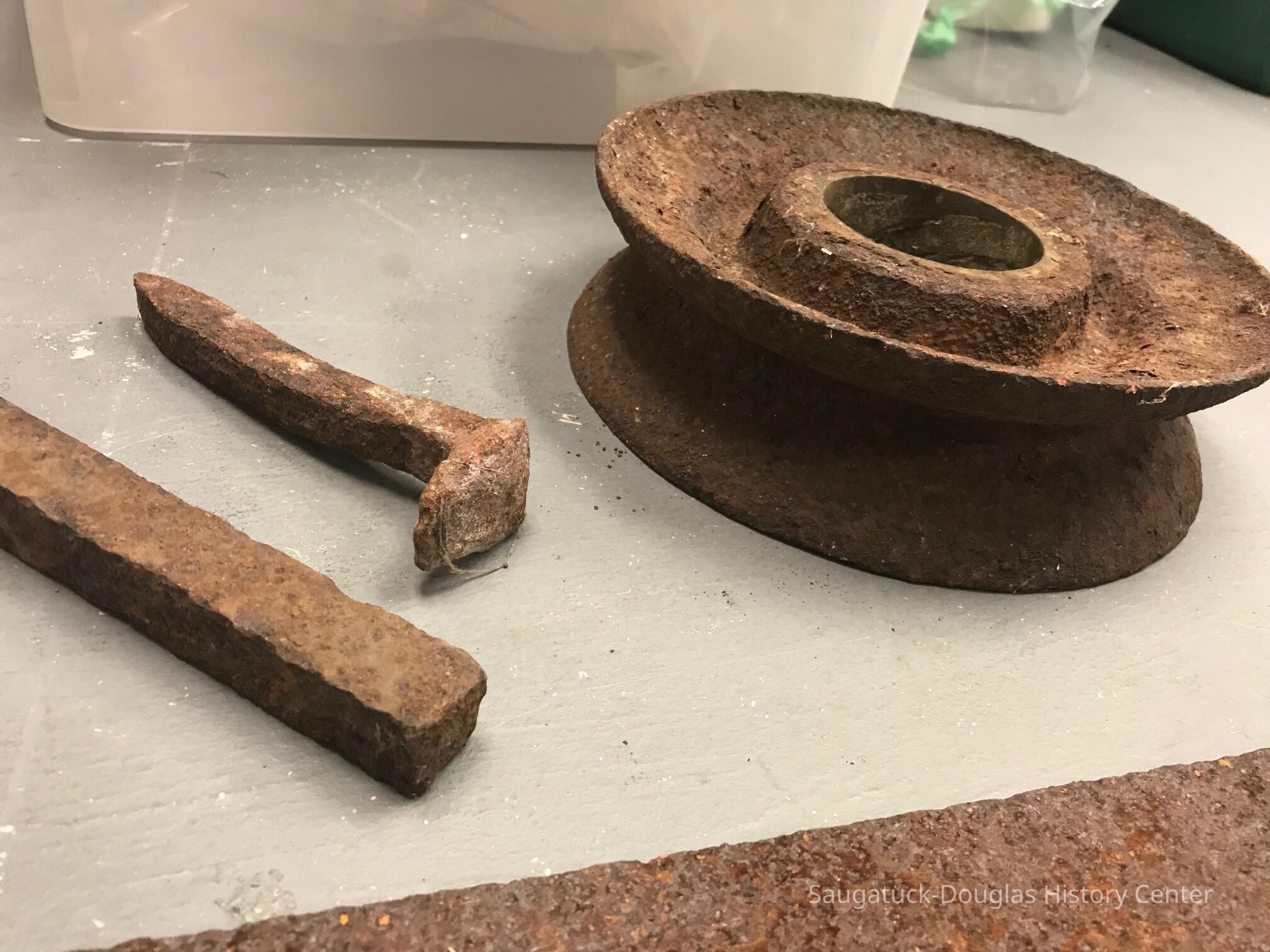 Four iron objects that were found on the property at the former Pier Cove community. In the 1980sCataloged By