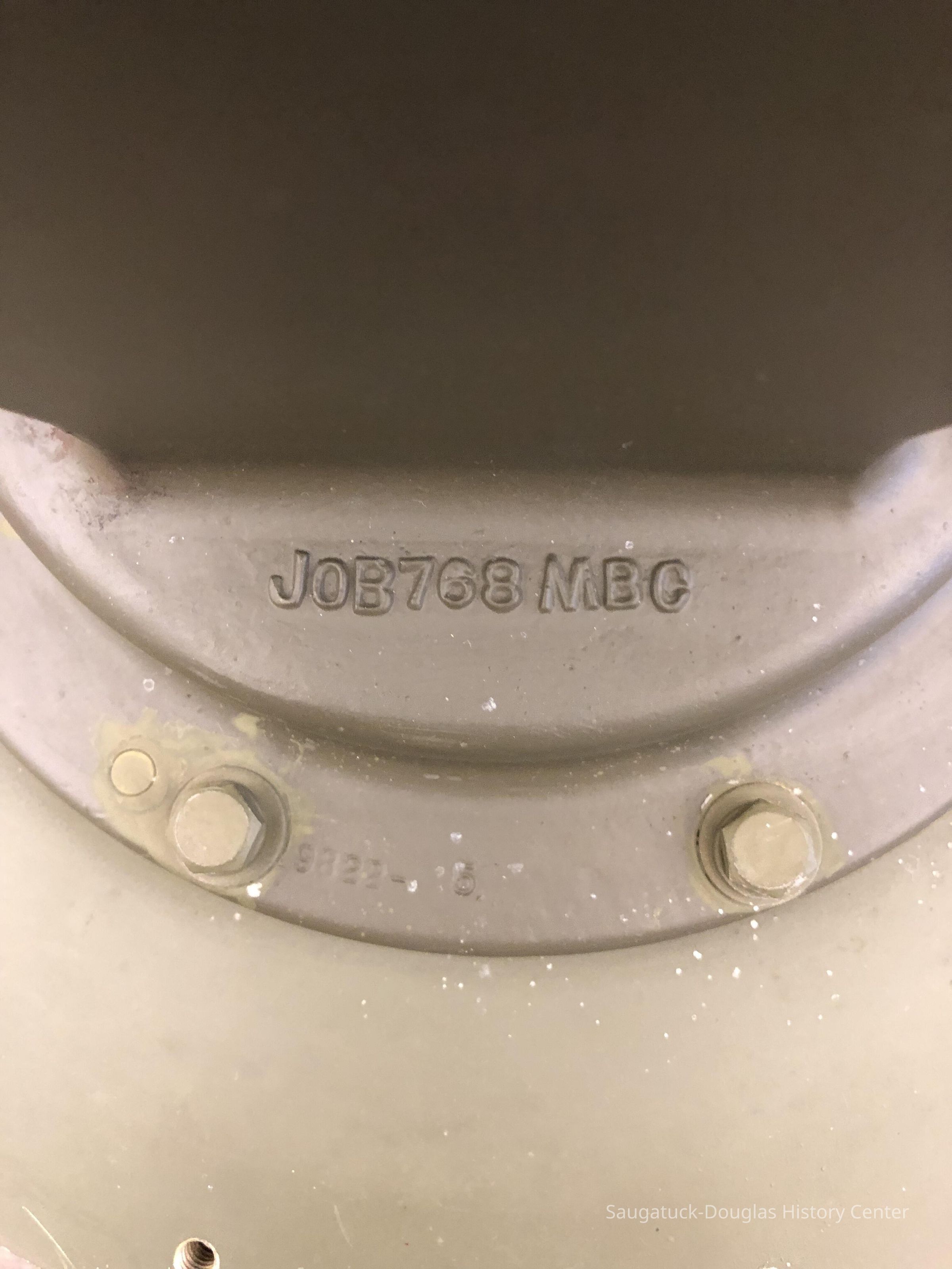 The feed horn was mounted on the ‘nose’ of the antenna framework a little forward of where the foot of the ladder propped on the reflector presently is. The end that is up in the image faced back toward the antenna’s reflector. The other end was connected to the rectangular waveguide that traveled through a rotating joint on the antenna pedestal, then down the center of the tower and back to the transmitter and receiver in the equipment and generator building. Pulses of microwave energy from the transmitter would travel through the waveguide and exit from the end of the feed horn, spreading to the width and height of the reflector which would reflect them out away from the antenna in a beam with a carefully designed pattern spreading 1.4° wide and 30° tall with the bottom edge of the fanning beam elevated 0.5° above the lake. Any pulse encountering an aircraft would ‘echo’ back to be collected by the reflector which would concentrate and reflect the echo to the feed horn from which it would travel back down the waveguide to the receiver.Cataloged By