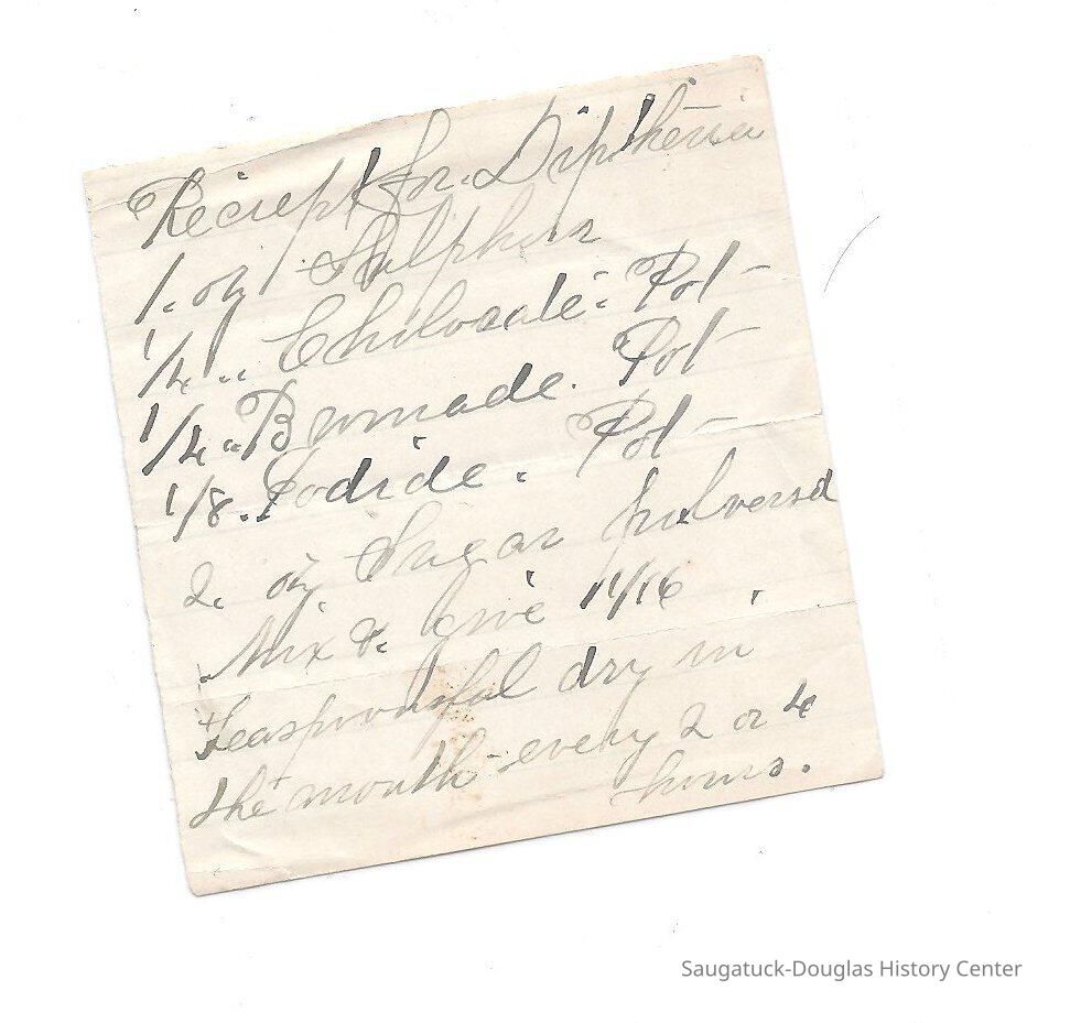 Handwritten receipt for Diphtheria by Dr. Israel Covey, a Civil War physician.Collection