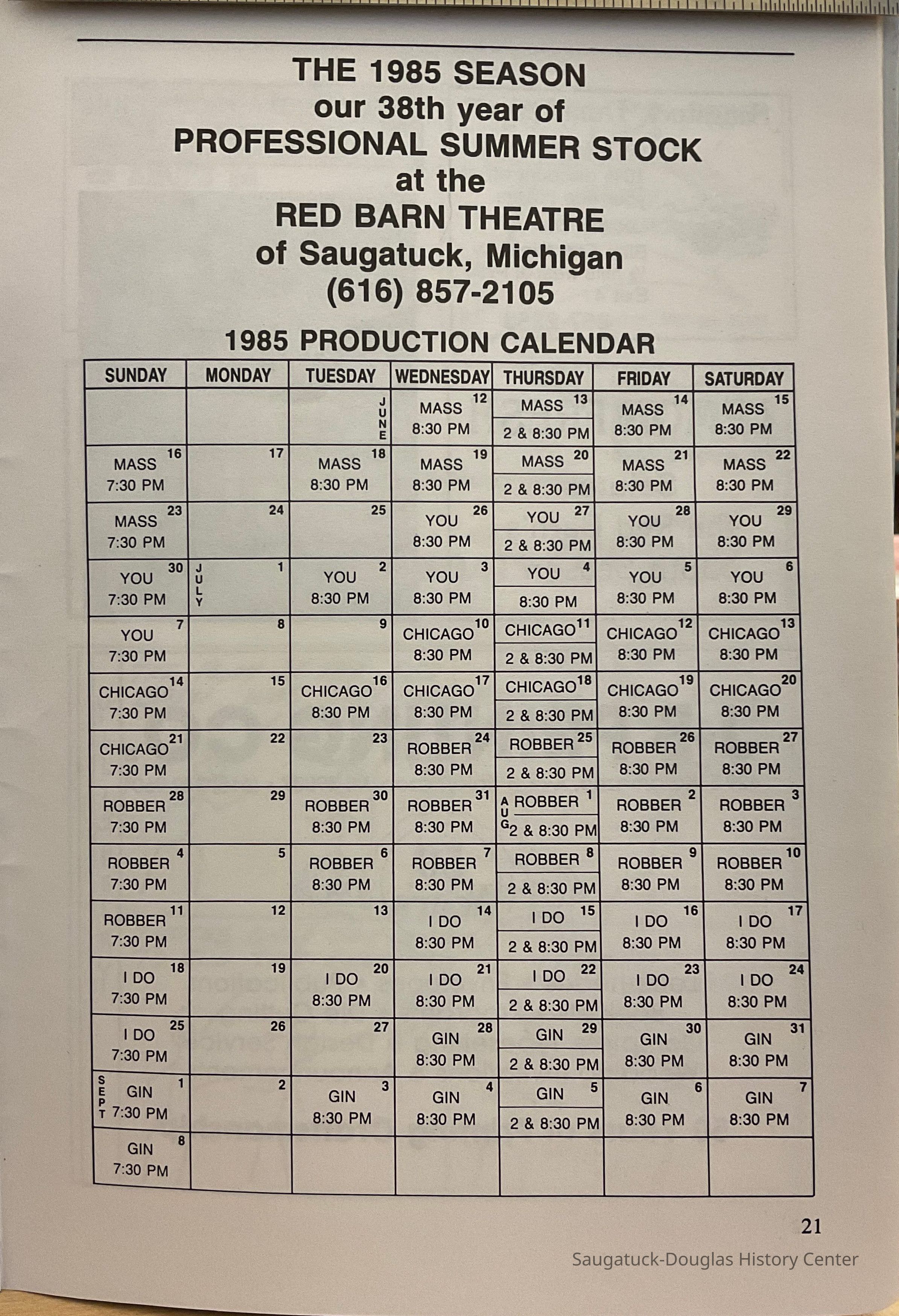 Two programs of the Red Barn Theater 1985 seasonCollection