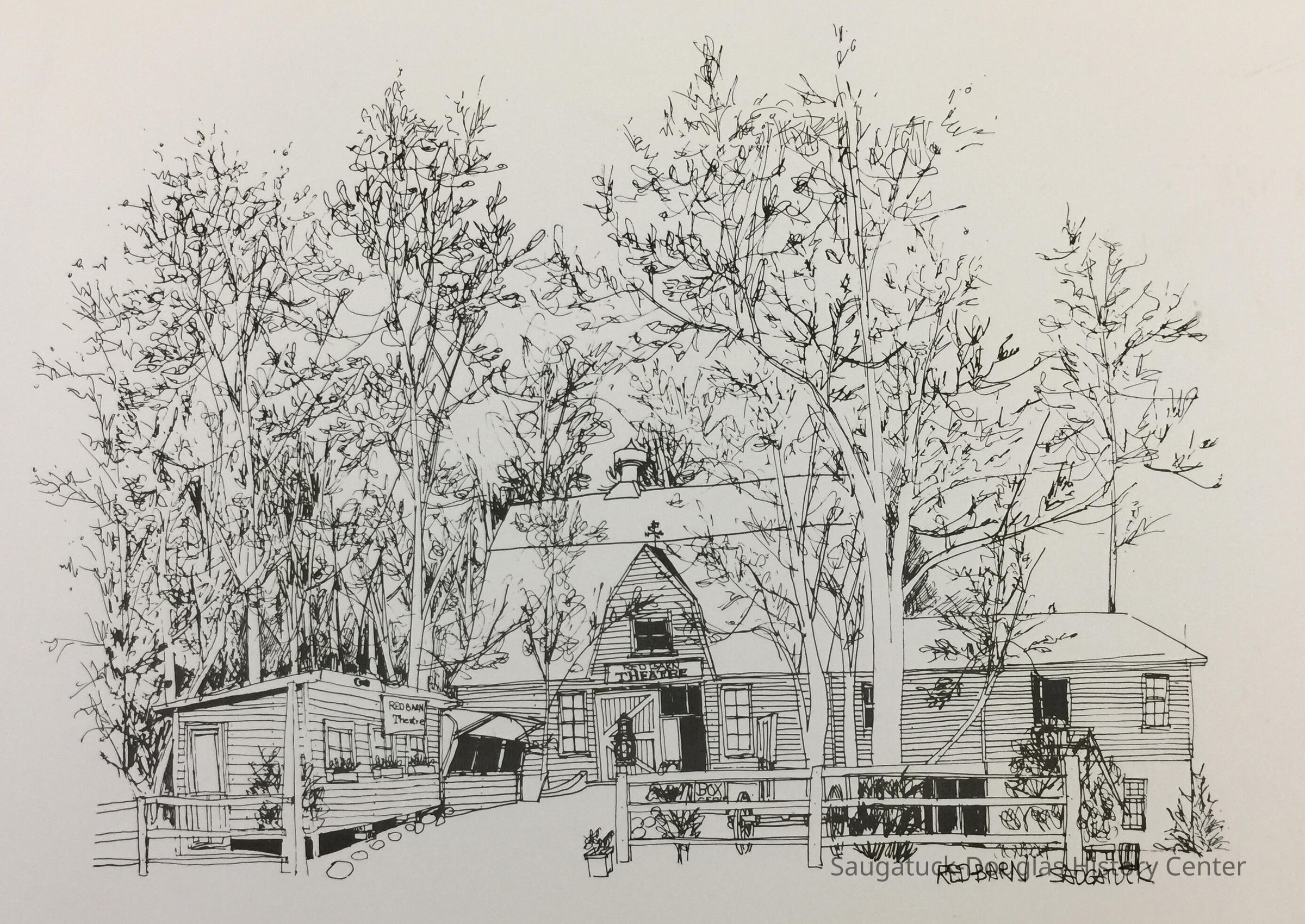Drawing of the Red Barn Theater. See 2021.19Collection