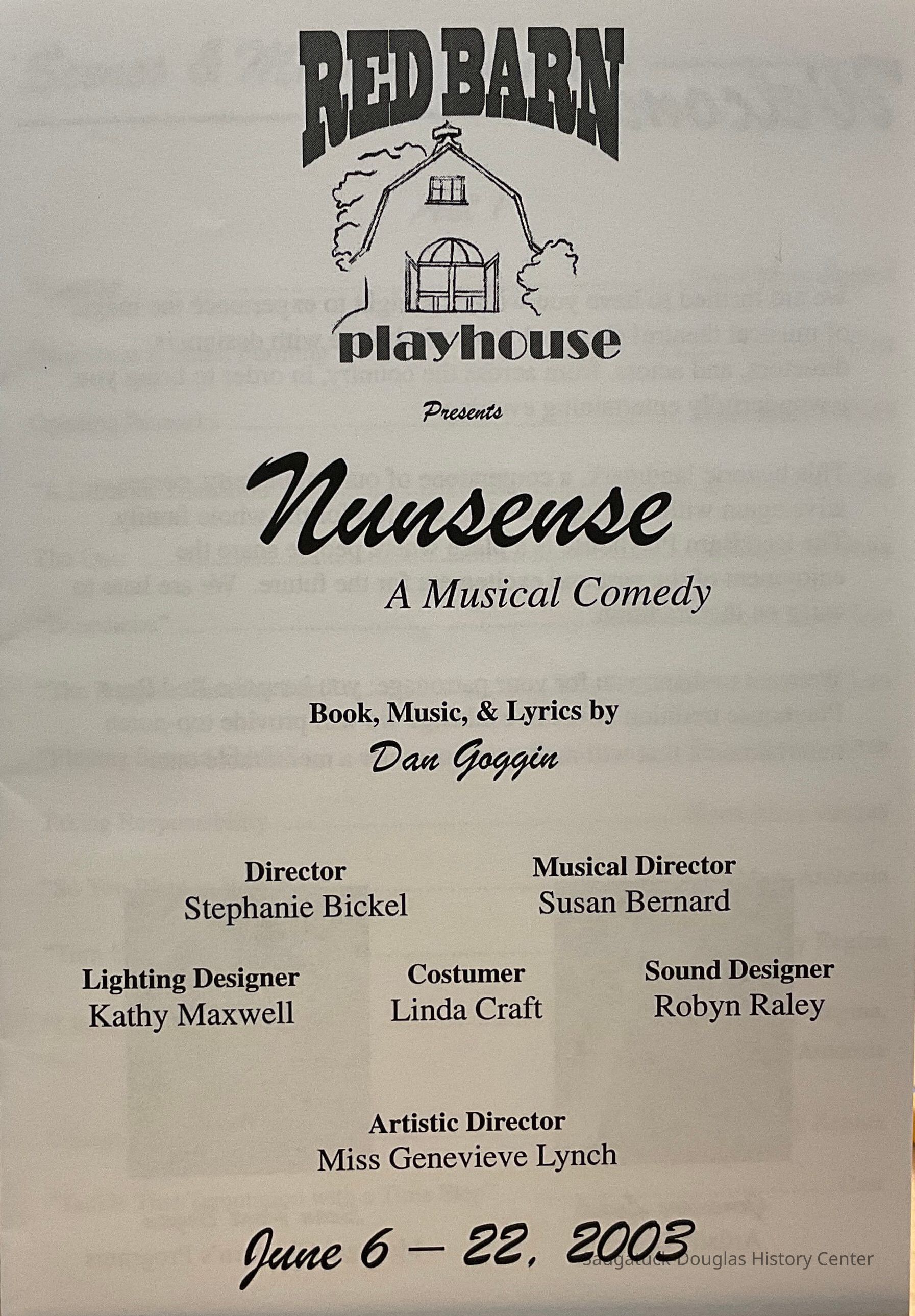 Program of the Red Barn Playhouse Summer 2003 season - NunsenseCollection