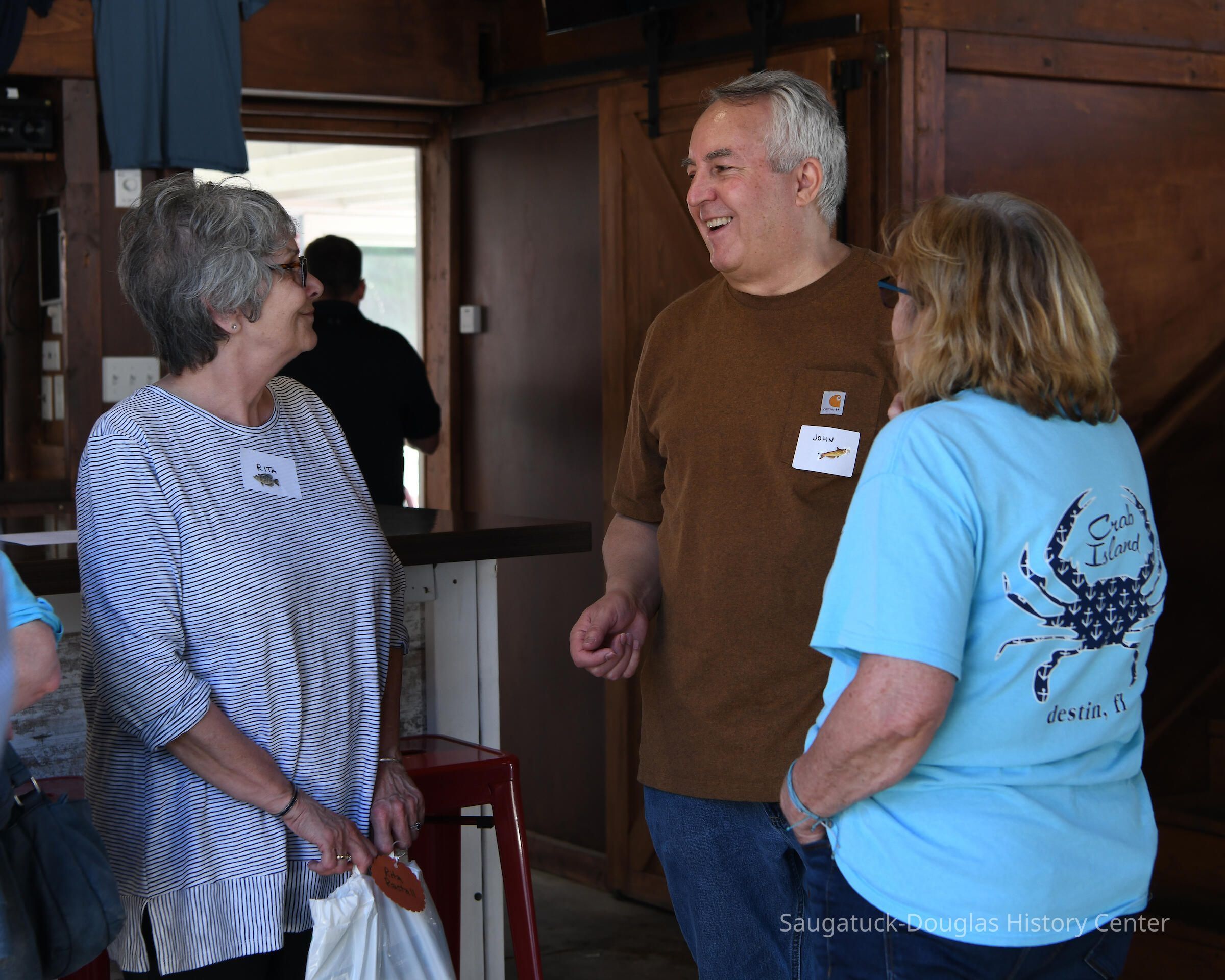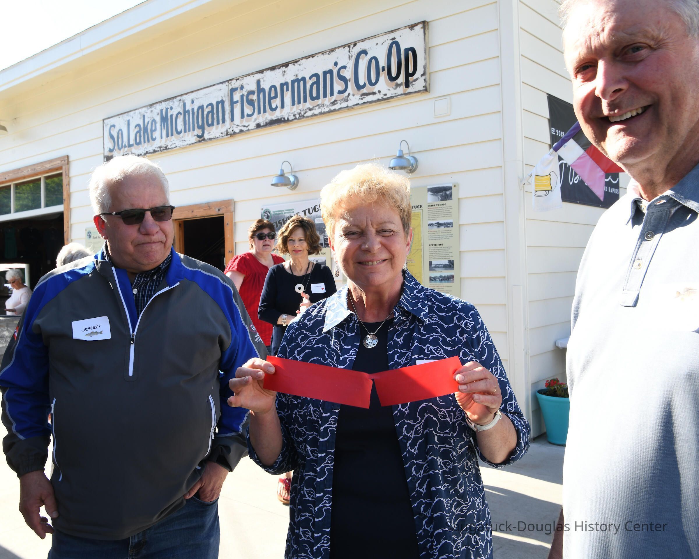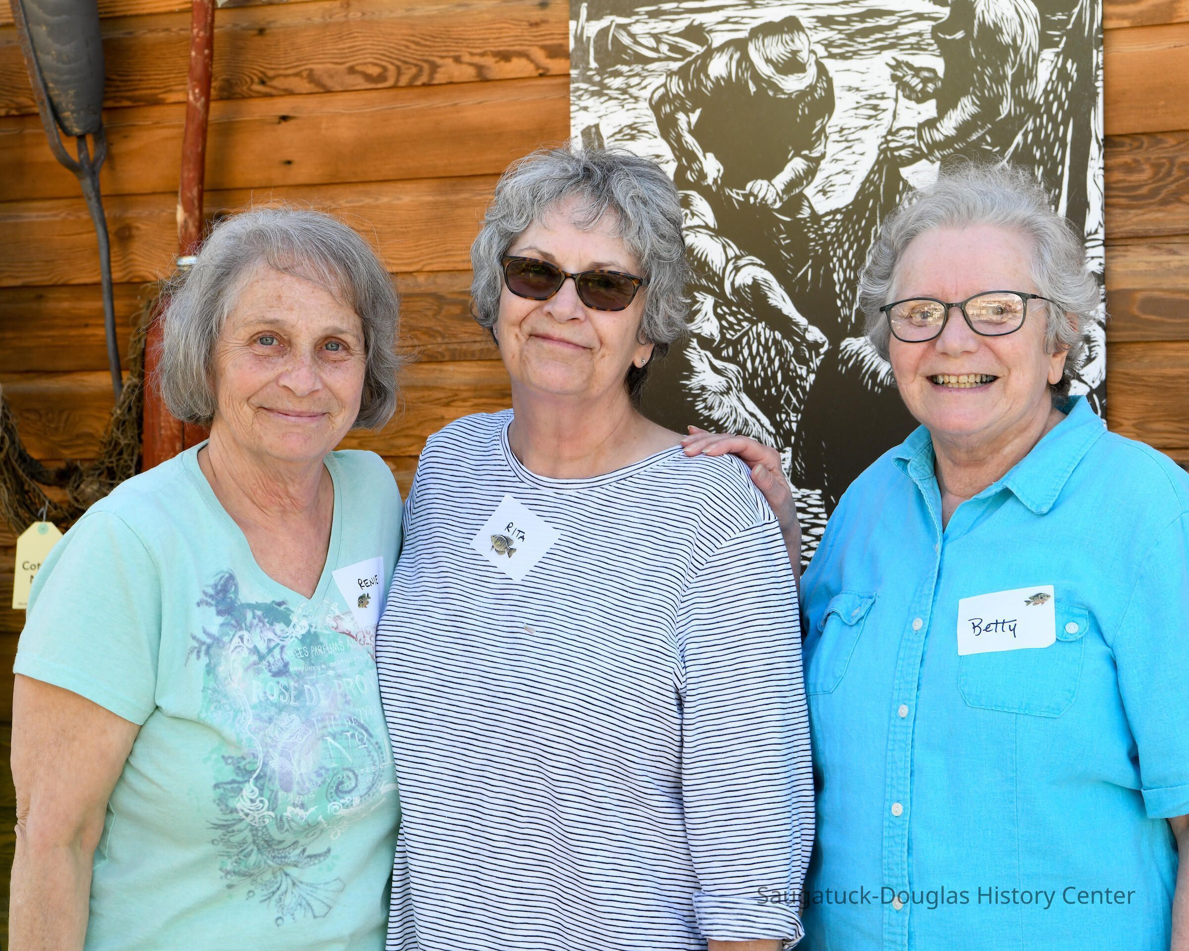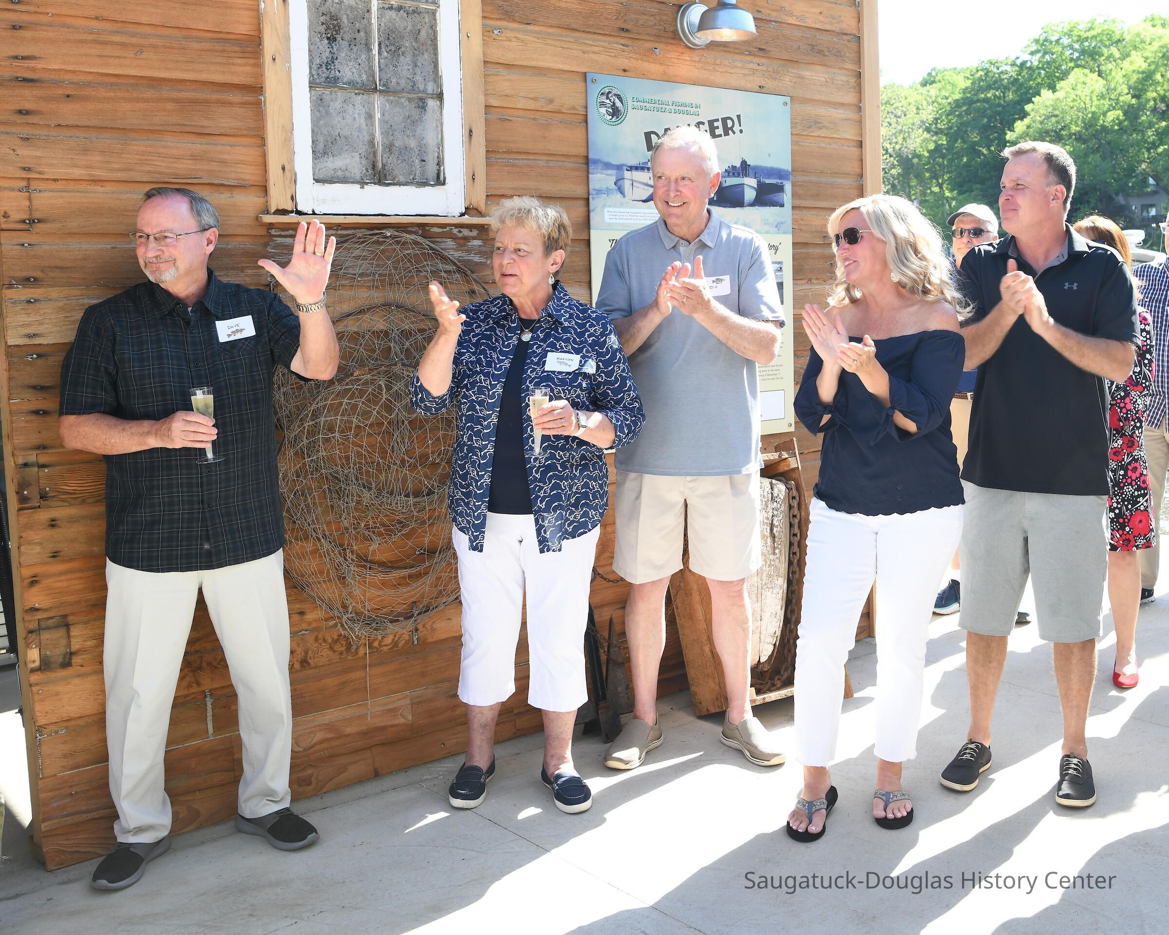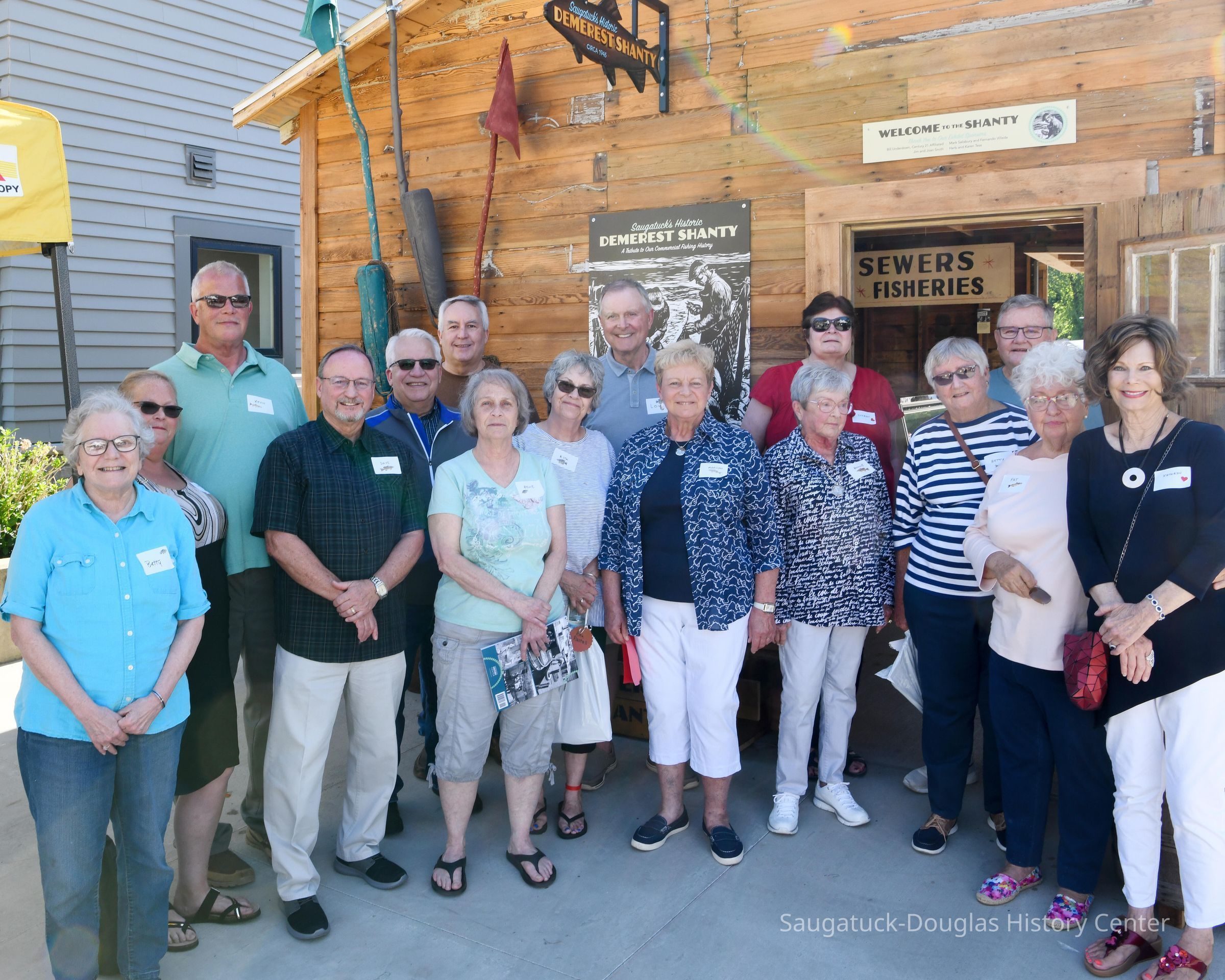 Group shot by Kim Zahnow of descendants of Saugatuck's fishermen. From left to right Betty (Rastal?), Lori Sluis, Kevin Sluis, David Demerest, Jeffrey Peel, John Peel, Renie Rastall, Rita Rastall, Lou Hebert, Marilyn (Demerest) Hebert, Bonnie (Sewers) Kozanecki, Sharon, Betty (Sewers) Rasmussen, Dick Sewers, Pat Diepenhorst, Kathryn (Dekker) HanleySubject Person or Organization