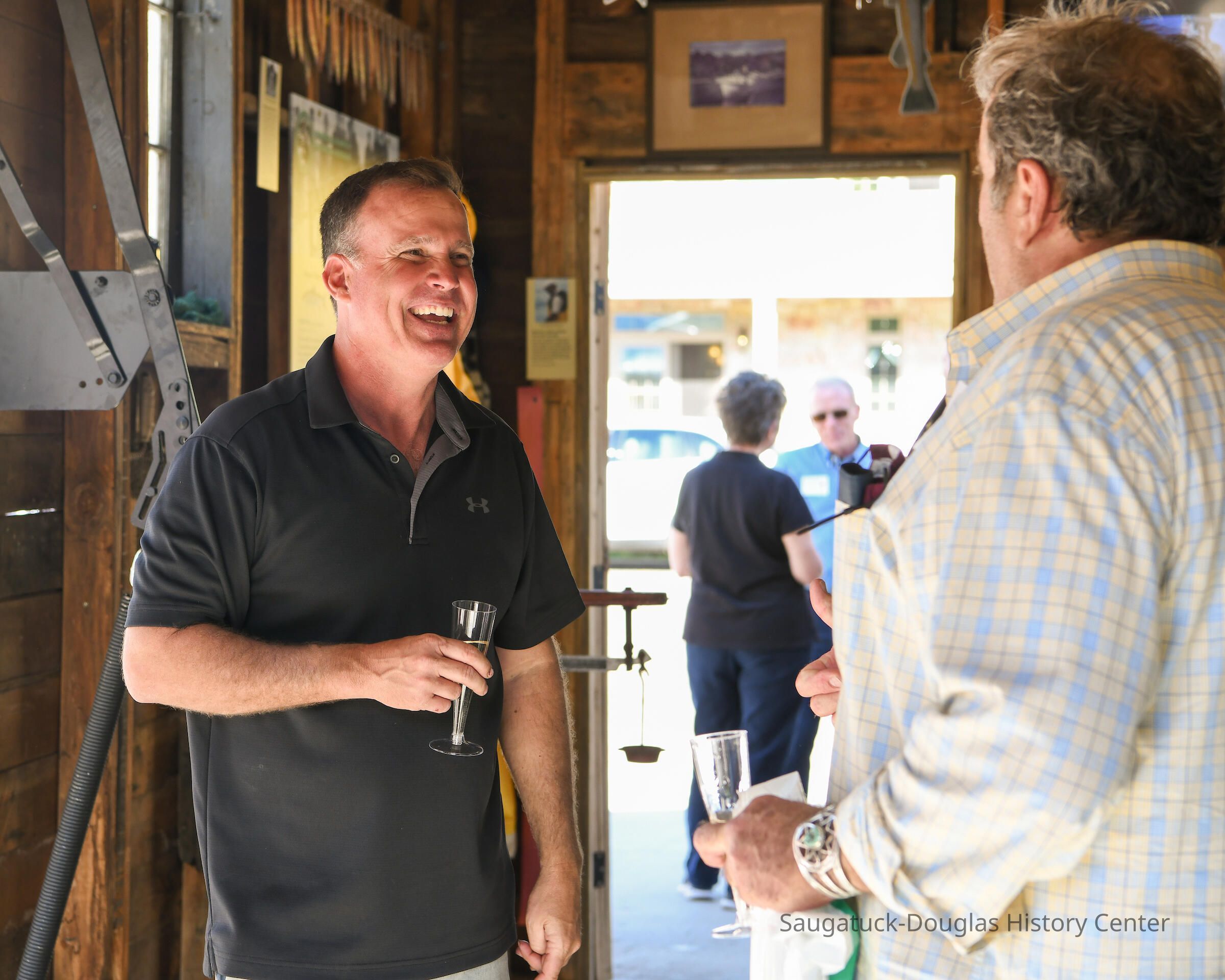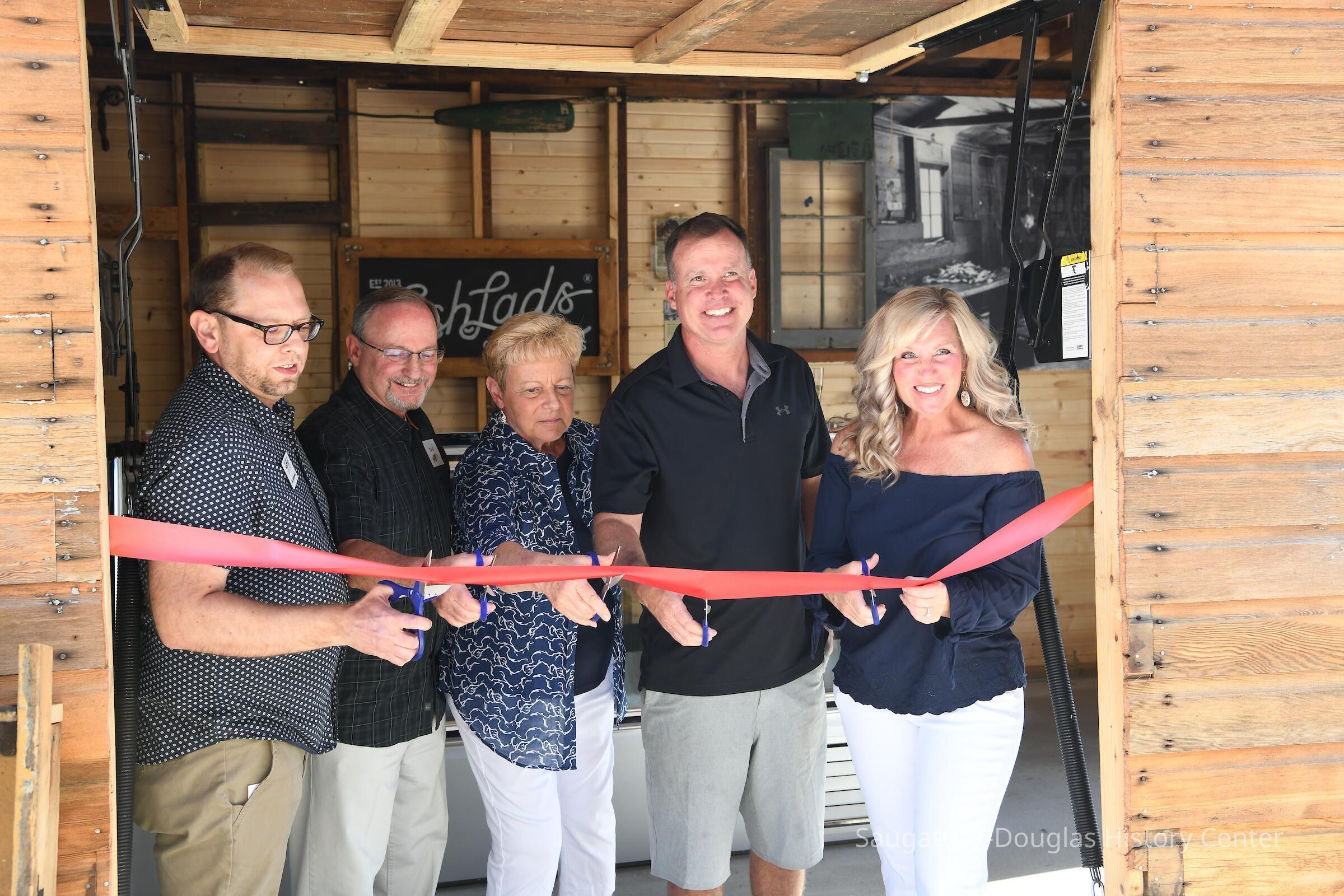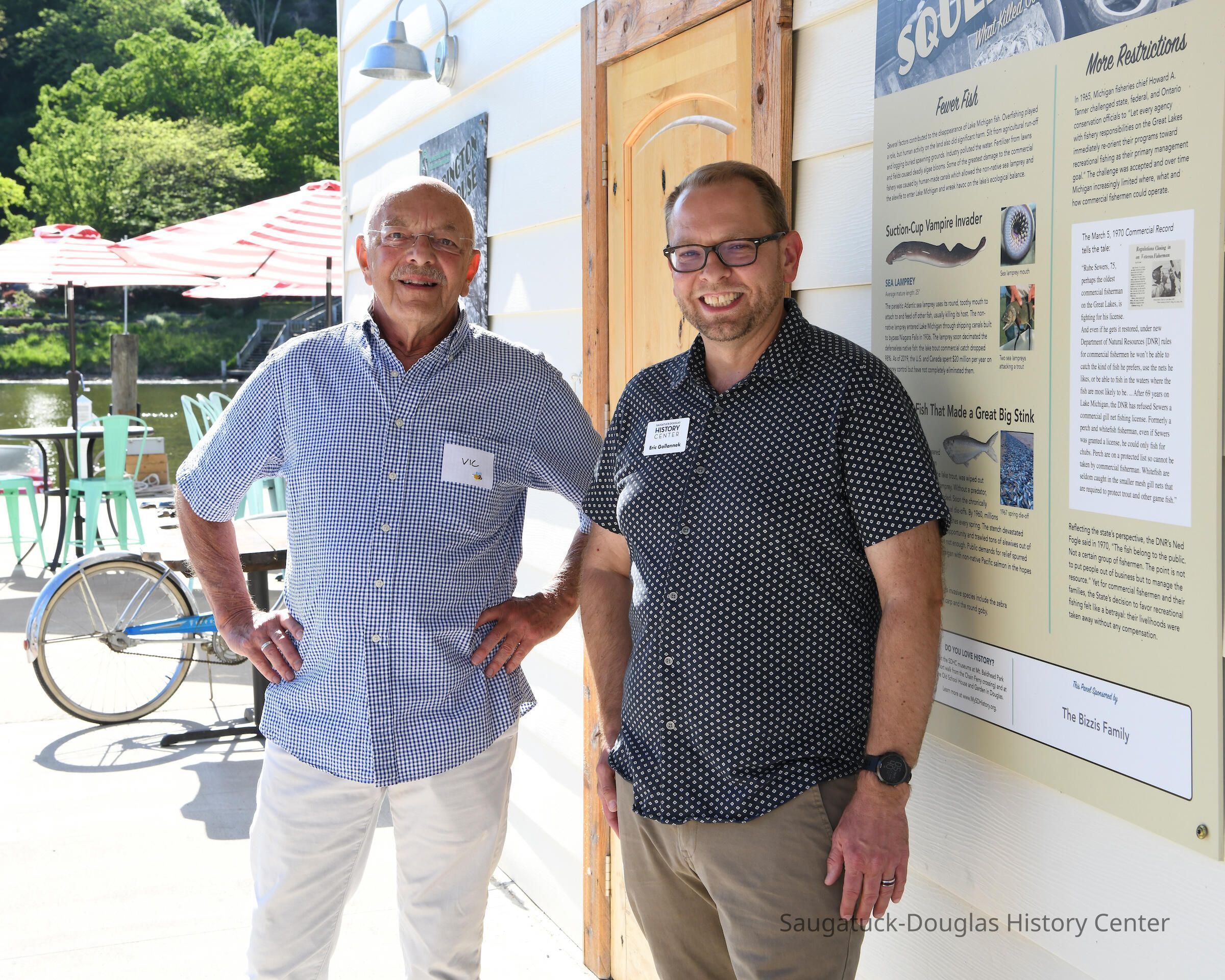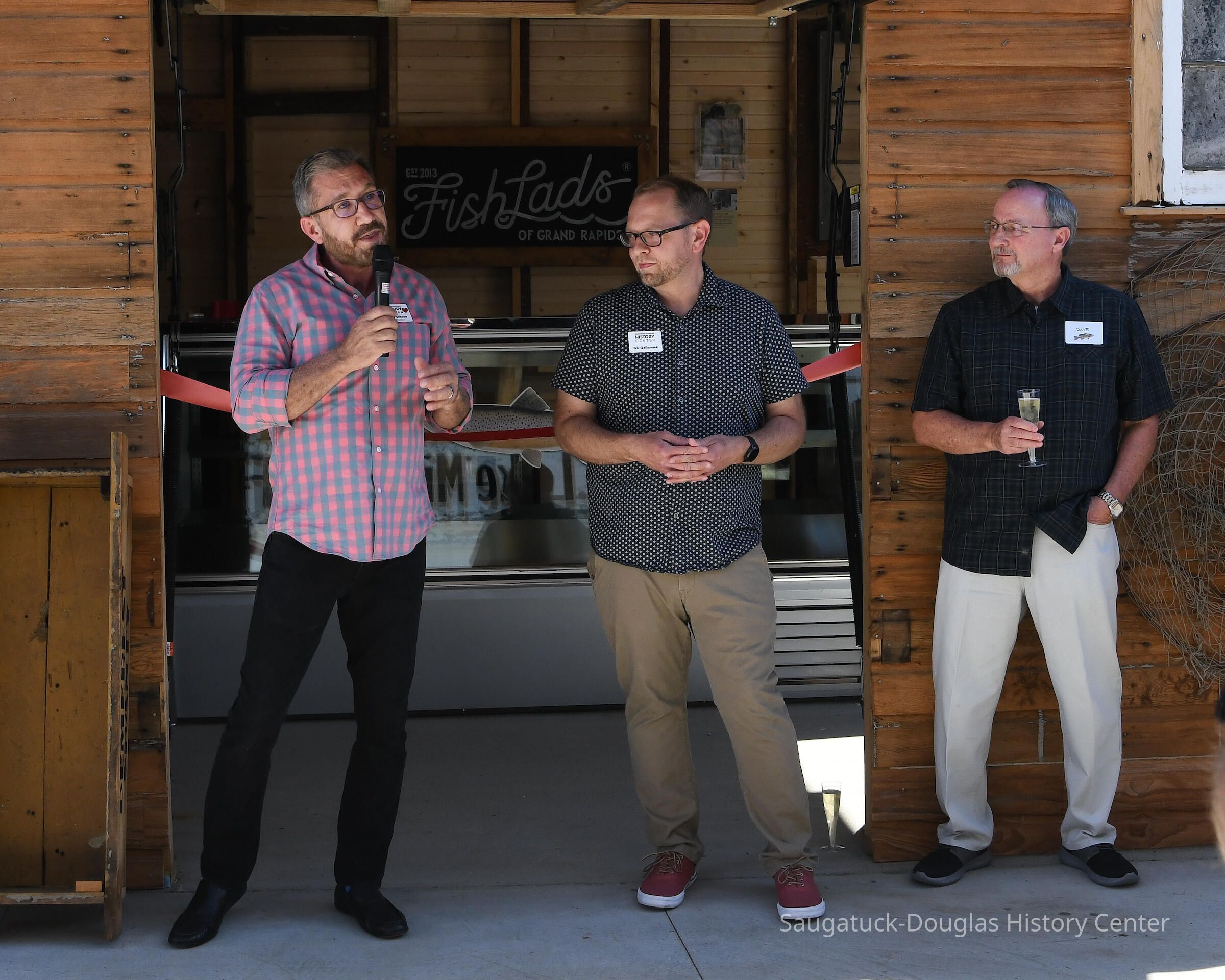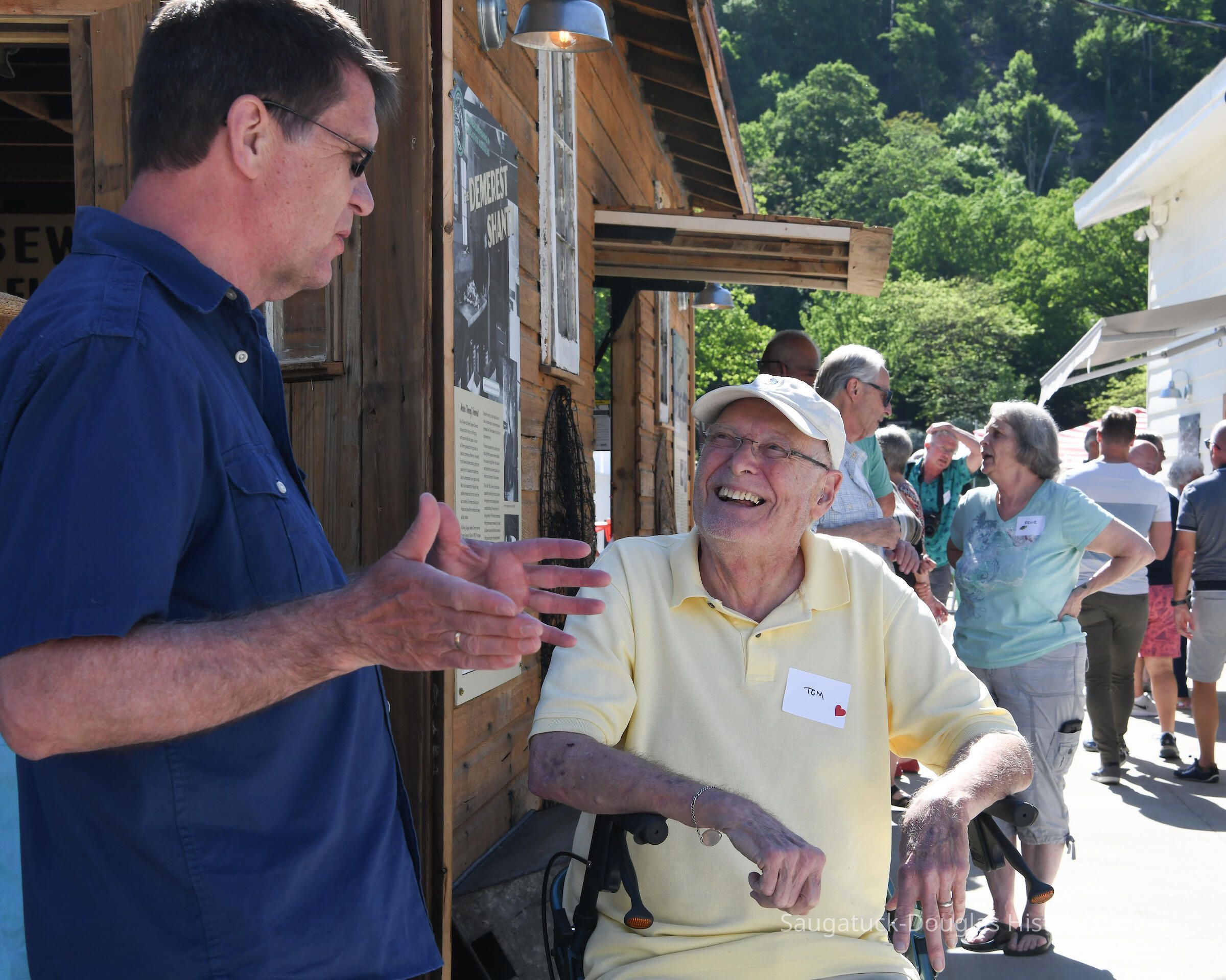 Group shot by Kim Zahnow of descendants of Saugatuck's fishermen. From left to right Betty (Rastal?), Lori Sluis, Kevin Sluis, David Demerest, Jeffrey Peel, John Peel, Renie Rastall, Rita Rastall, Lou Hebert, Marilyn (Demerest) Hebert, Bonnie (Sewers) Kozanecki, Sharon, Betty (Sewers) Rasmussen, Dick Sewers, Pat Diepenhorst, Kathryn (Dekker) HanleySubject Person or Organization