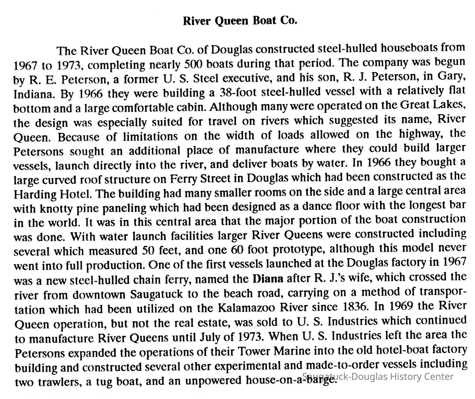 River Queens were manufactured in Douglas, Michigan by RJ PetersenCollection