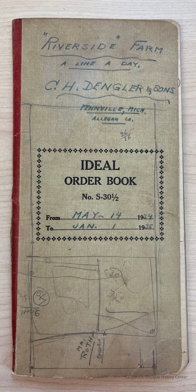 A daily diary of events at the Riverside Farm belonging to C.H. Dengler & Sons with various invoices and papers tucked inside. Entries include spray accounts, total fruit pools, net fruit to fruit exchange, and farm operations.Context