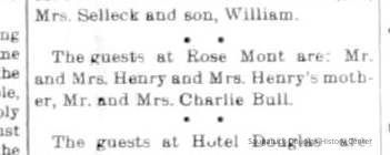 Rosemont Inn/Rosemont Lodge/Rose Mont, Bryan, Douglass C. 1901-1977, Bryan, Ellen Sirena (Olsen) 1861-1938, Bryan, "Willis" Samuel Willison Jr. 1847-1918, Bryan, Willis Simon 1888-1972, Miot HouseGeneral Notes