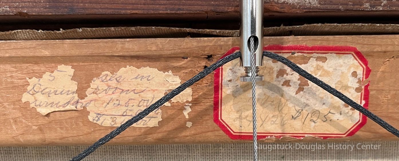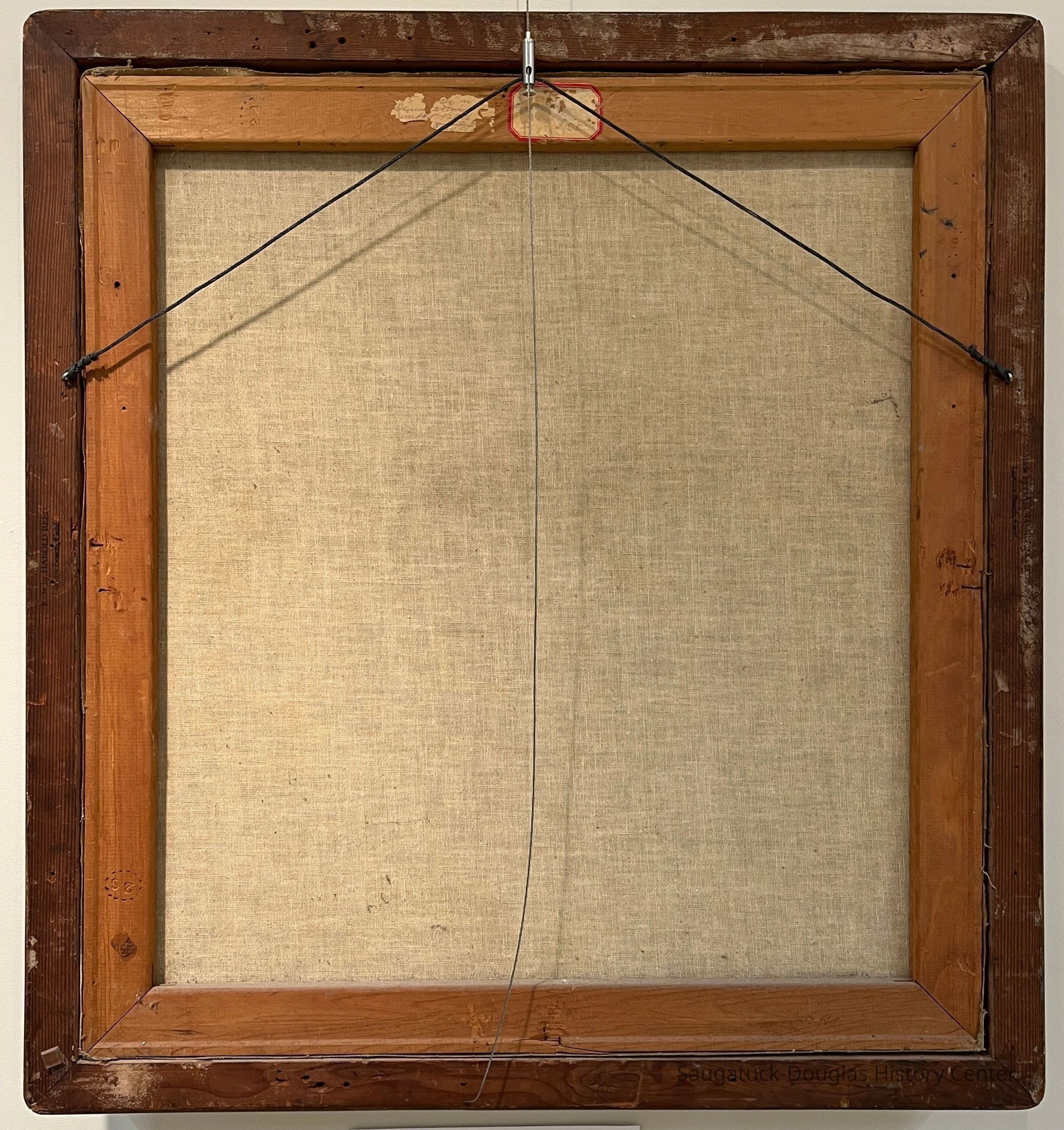 Two inch carved wood frame with gilt finish. A label on the back of the frame gives some information about the work.Type of Painting