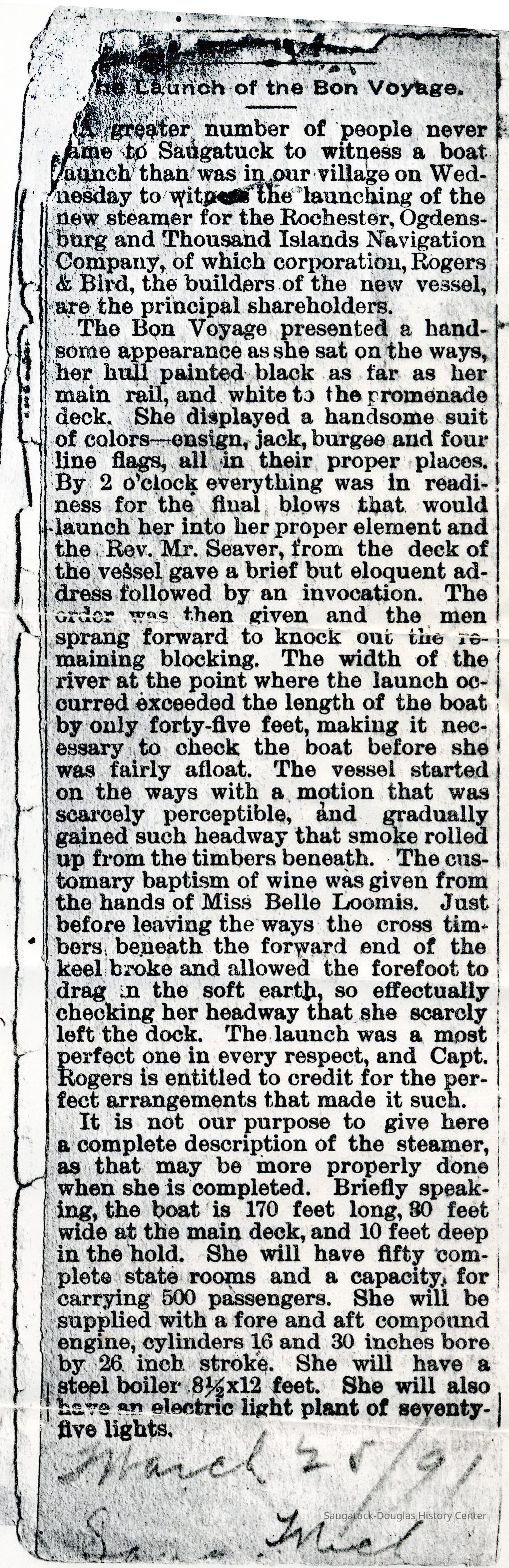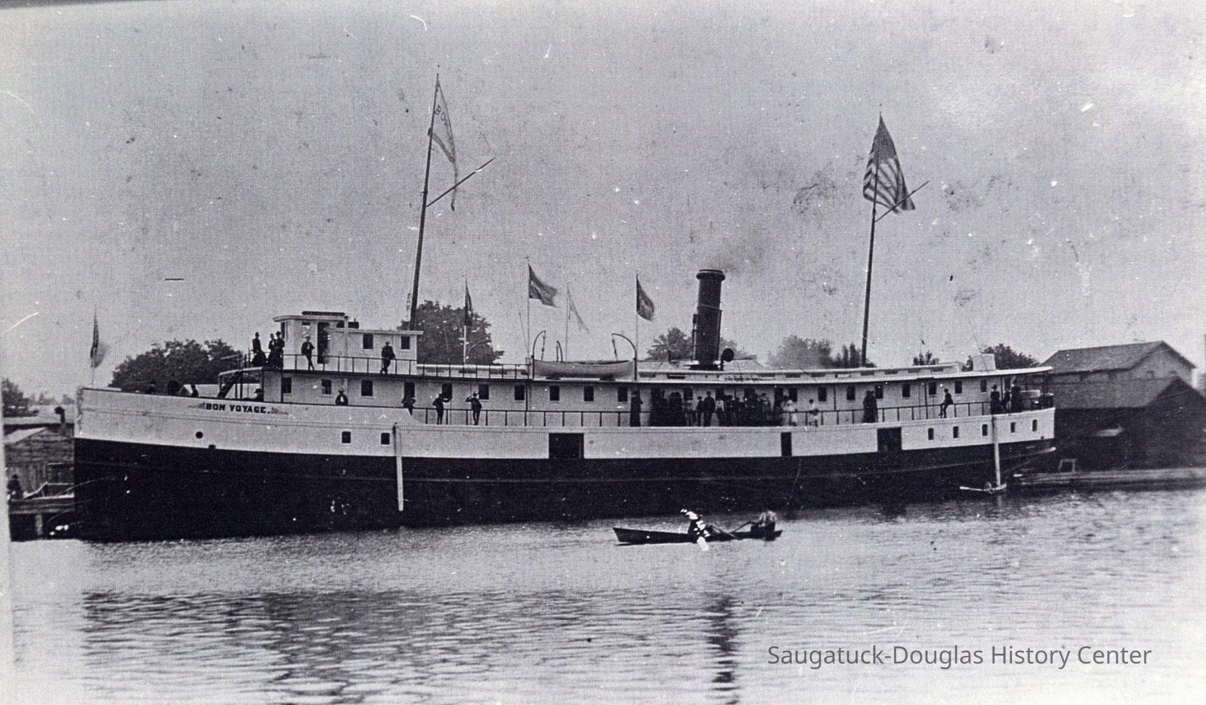 10.5 x 8.5" black and white photo copy print of the ship, "Bon Voyage" built in Saugatuck c. 1870