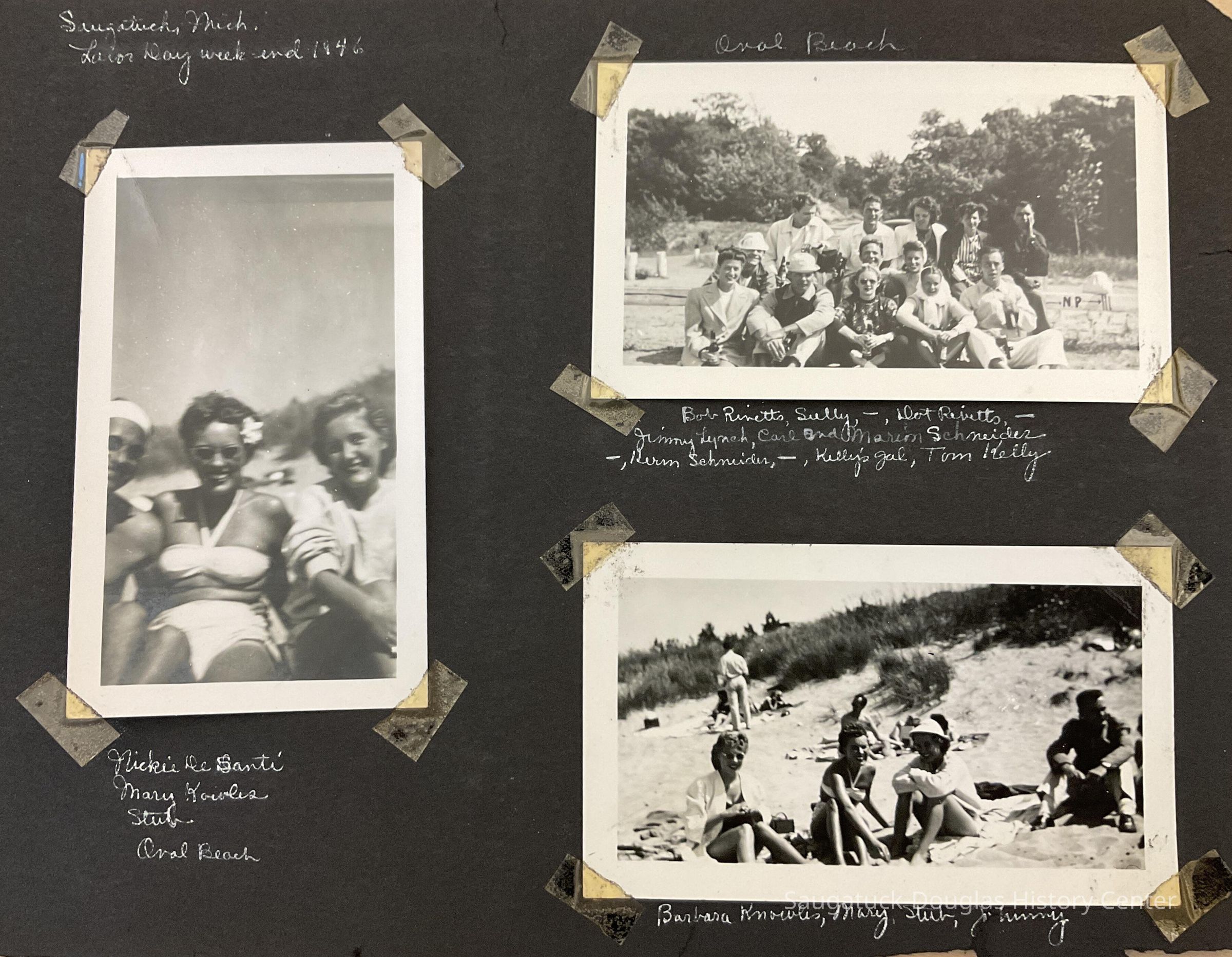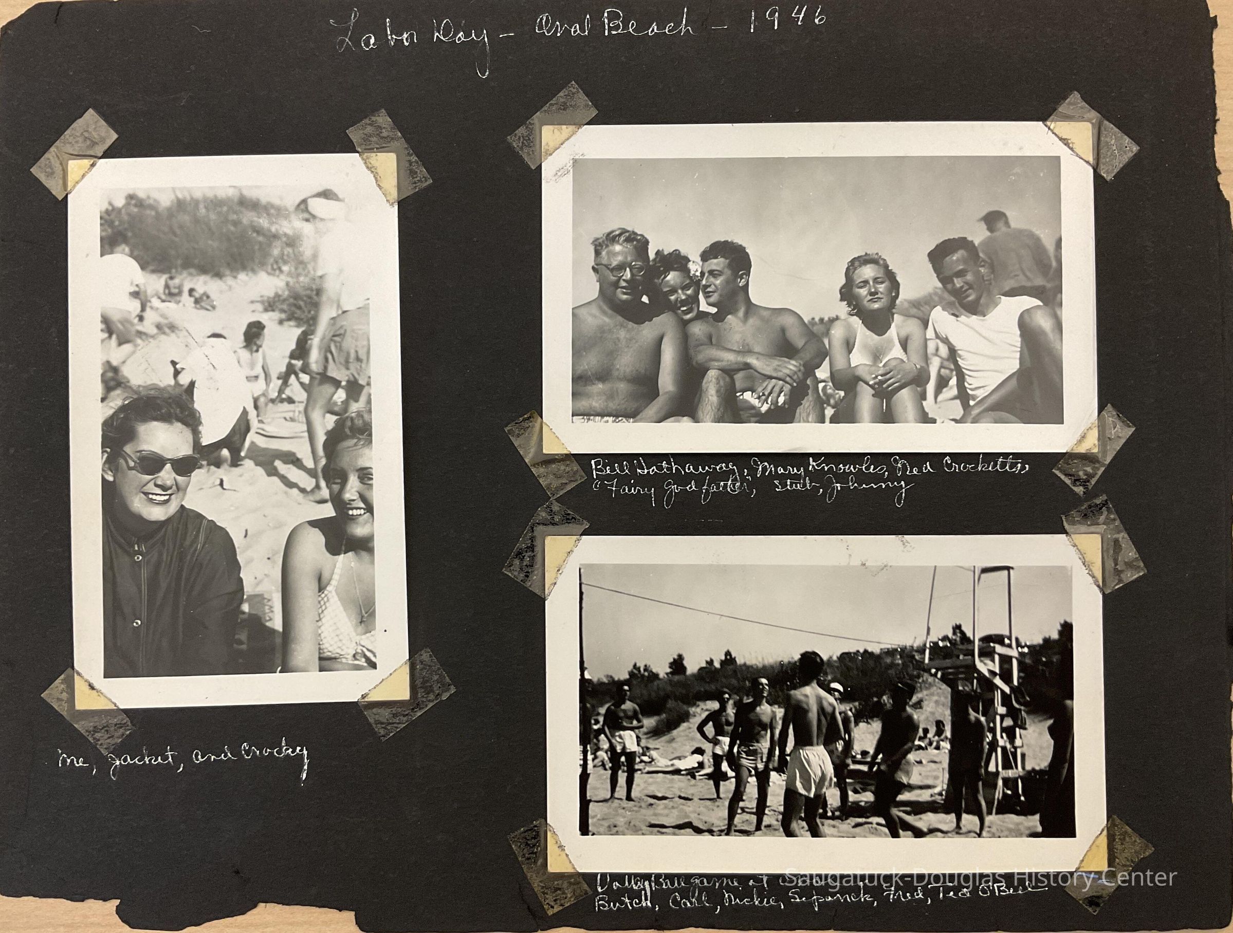 6 photographs showing people at Oval Beach - Labor Day 1946