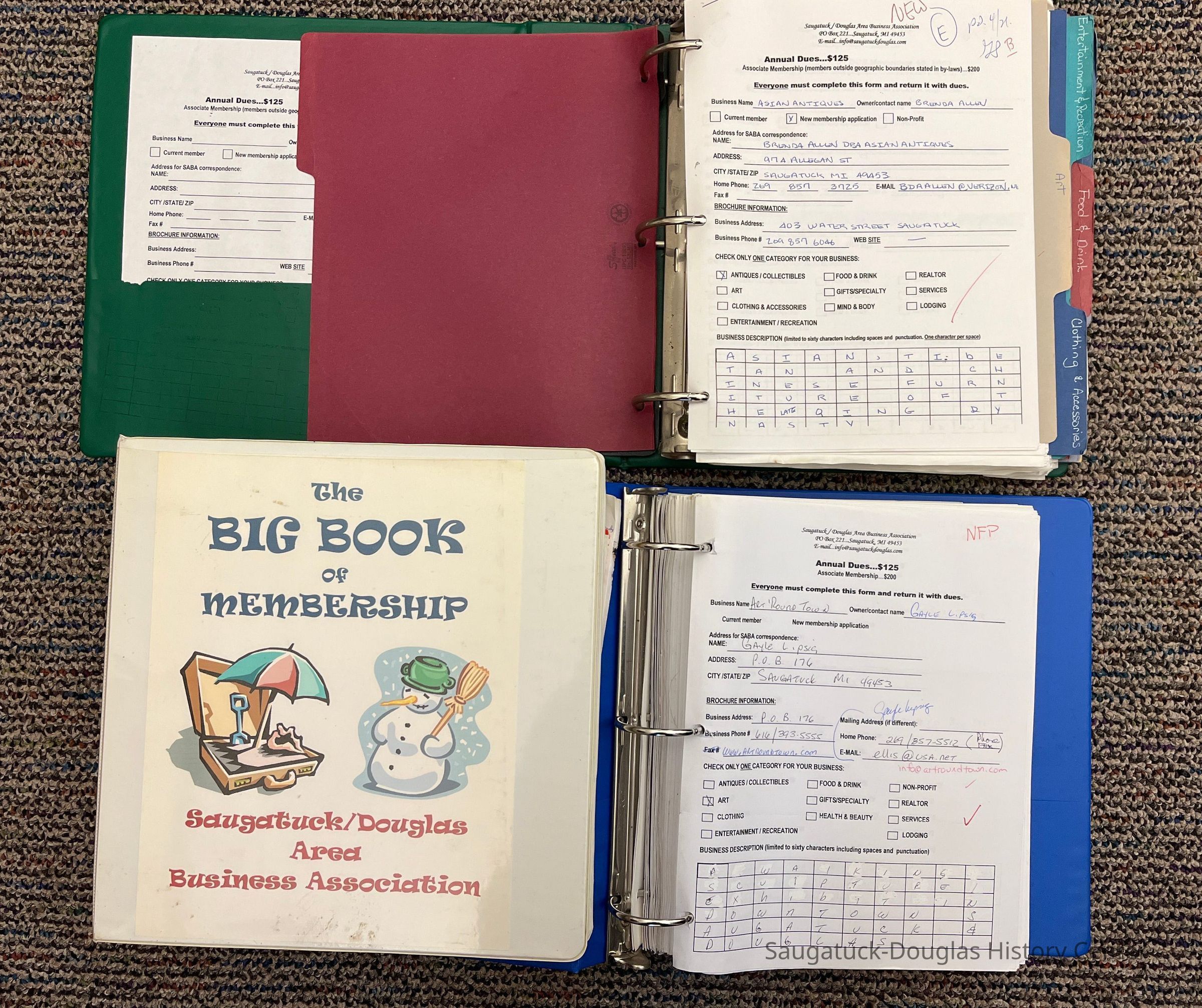 Three notebooks of membership records of the Saugatuck Business Assoc. 2002-2004Cataloged By