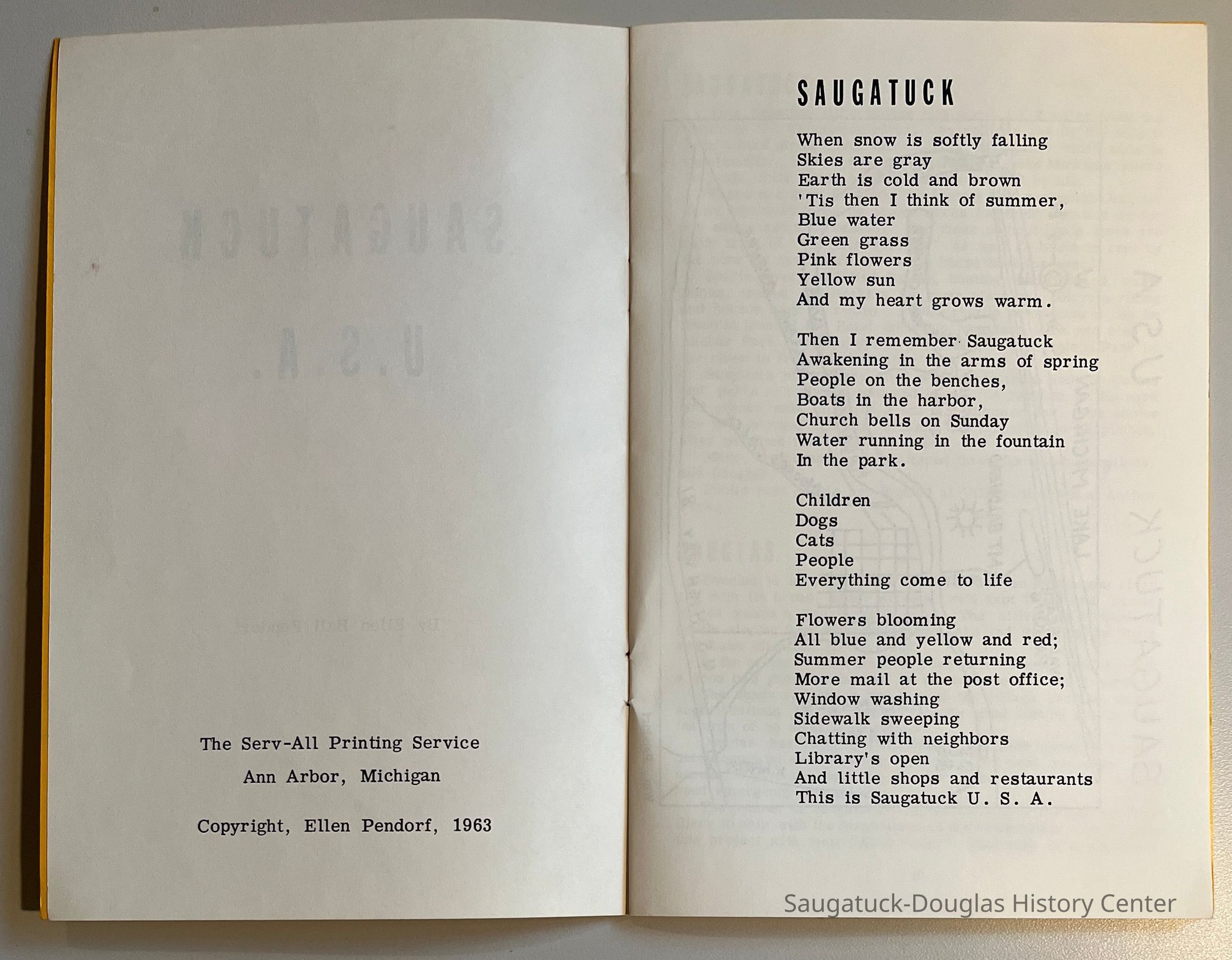 Saugatuck USA 1963 w/pagesEntry/Object ID
