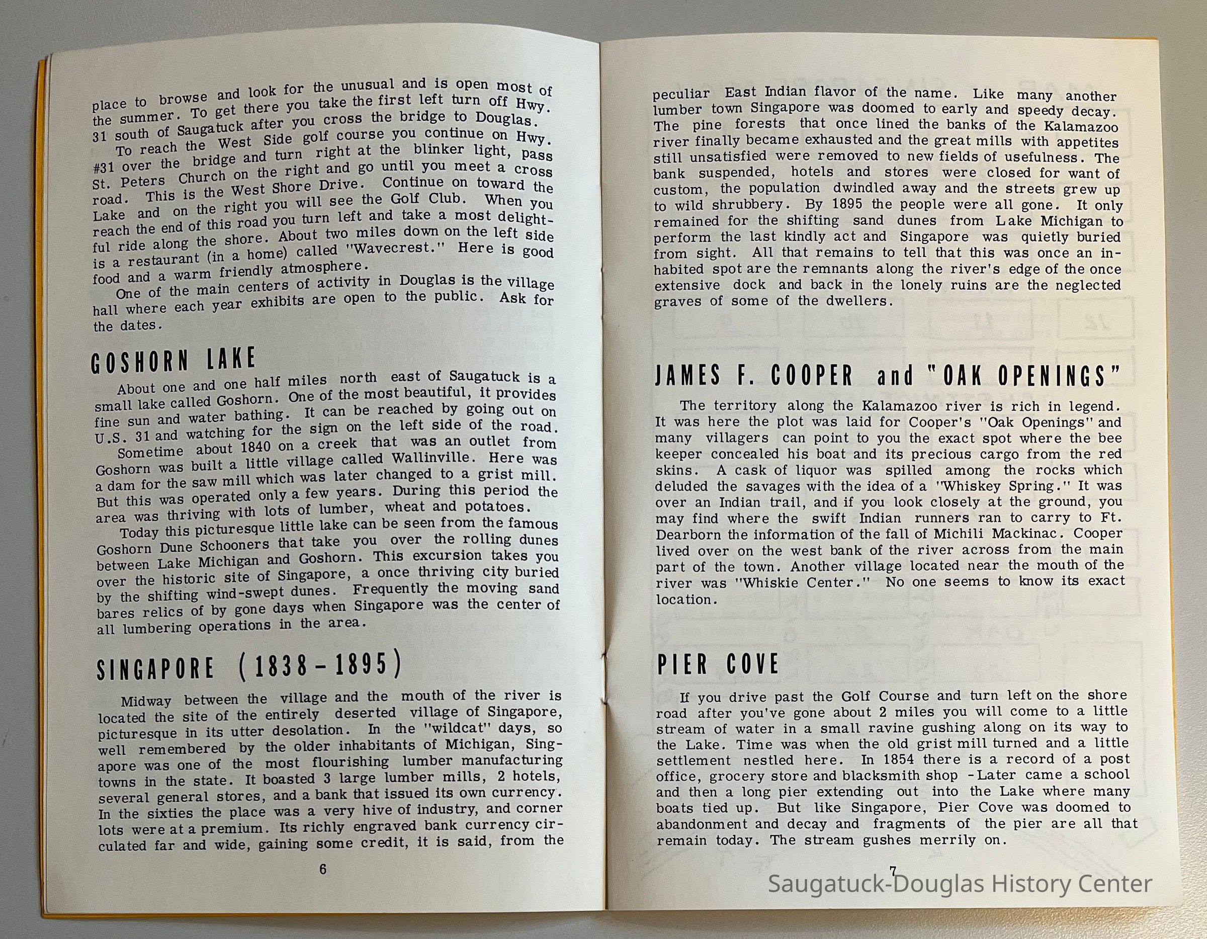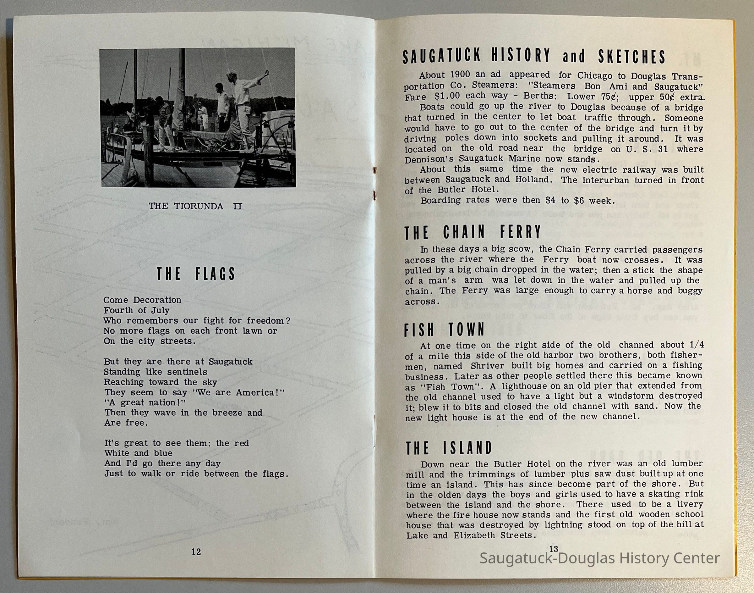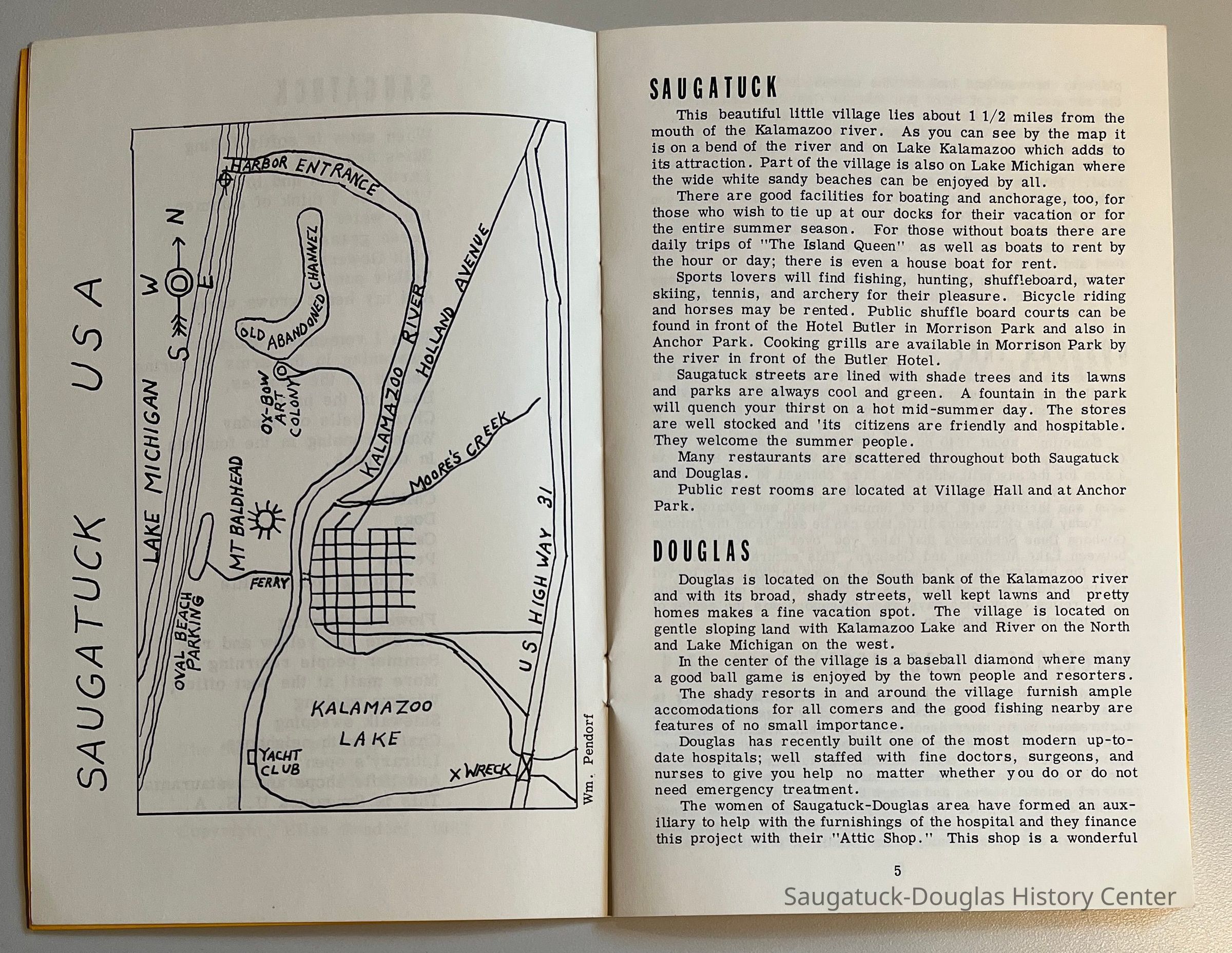 Two identical booklets containing a brief description of the various tourist sites in Saugatuck and Douglas. The booklets were published by William and Ellen Pendorf, proprietors of the White House Inn.