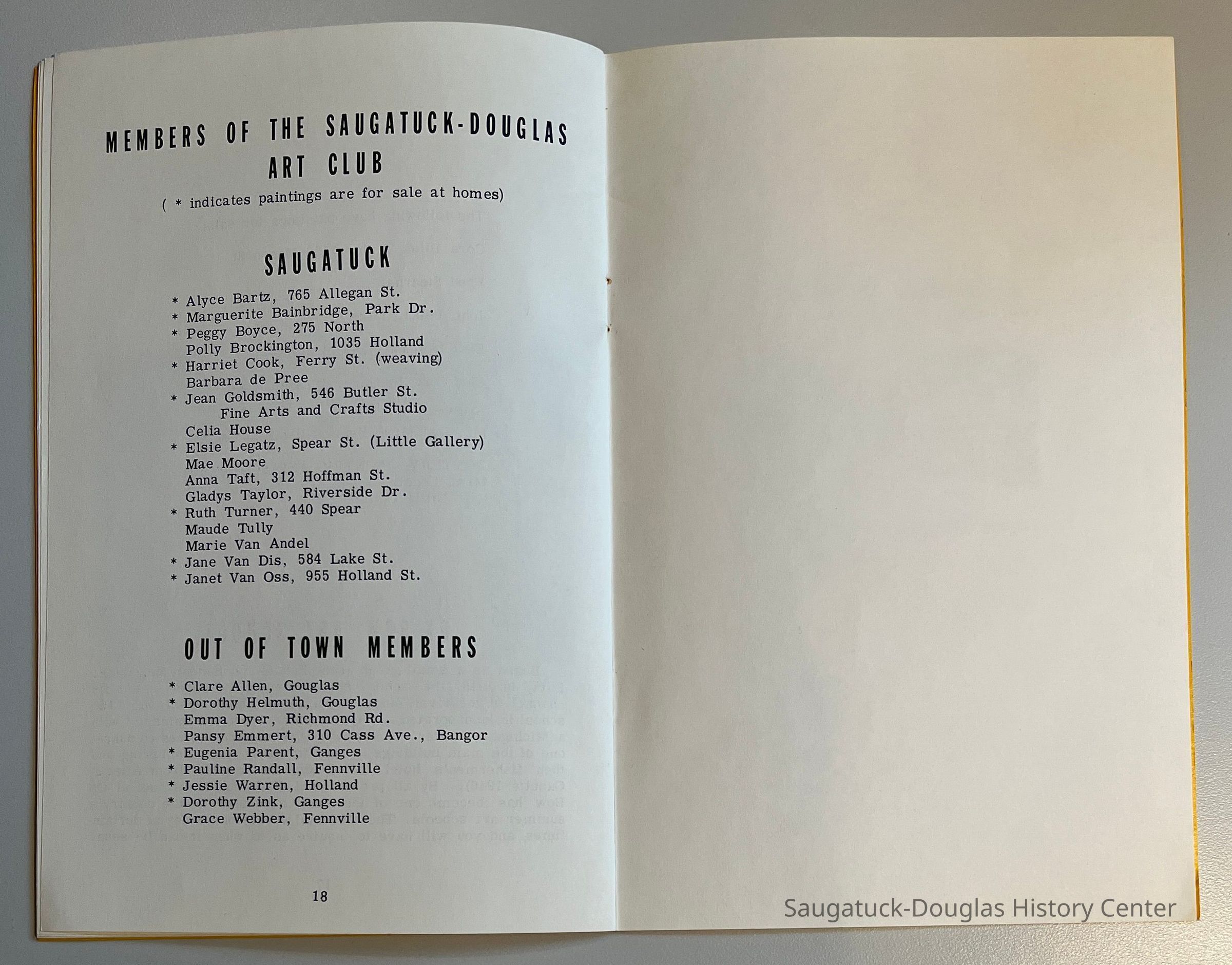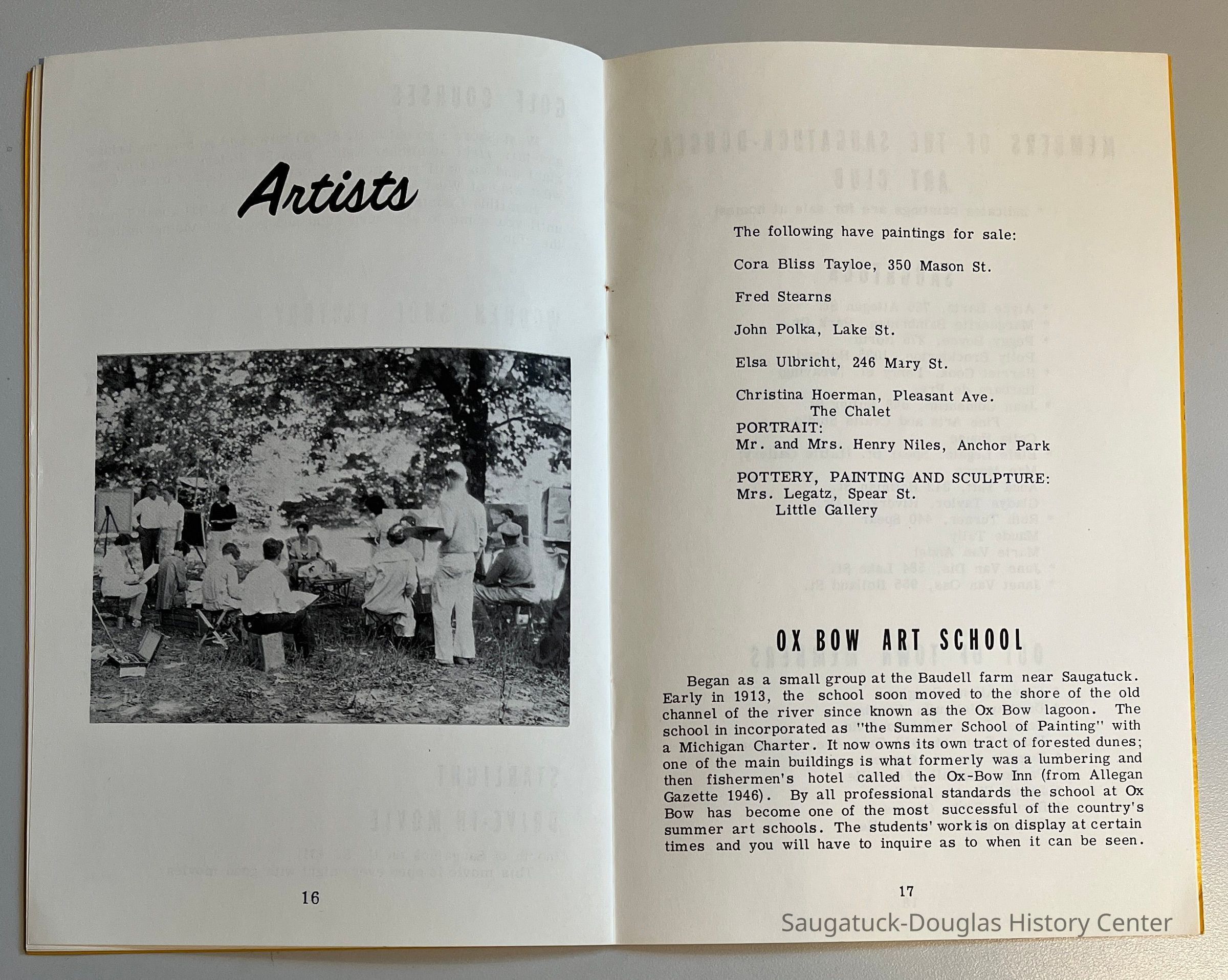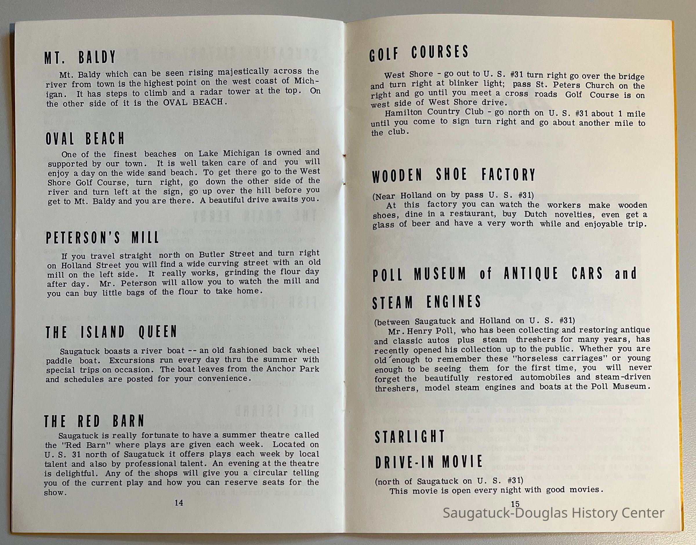 One booklet, 2010.01.01-a is in box 022B Saugatuck Douglas Tourist Information. The other booklet, 2010.01.01-b is in the accession folder.Publication Details