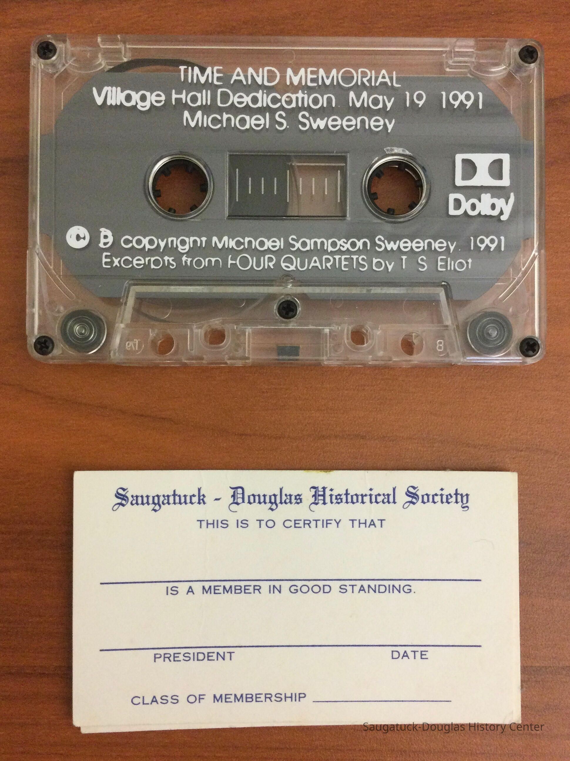 A cassette recording made by Michael Sweeney on the occasion of the dedication of the Saugatuck Village Hall Historical Marker in June 1991Context
