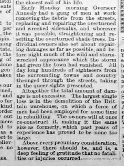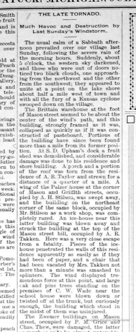Also, screenshots of Lake Shore Commercial, July 31, 1896 reporting about the fire and cyclone/tornado that damaged much of the town.Photograph Details