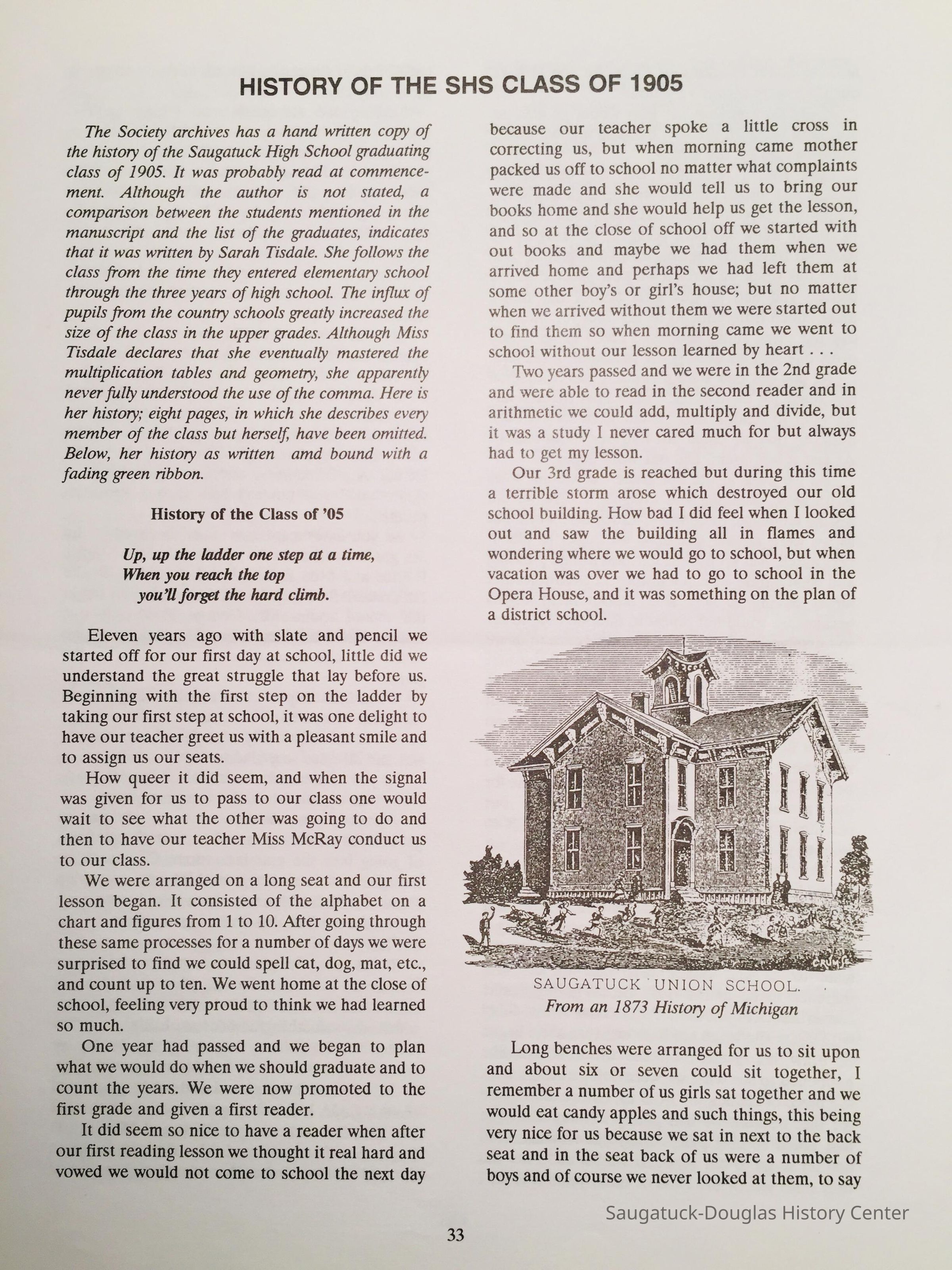 SAUGATUCK UNION SCHOOL From an 1873 History of Michigan