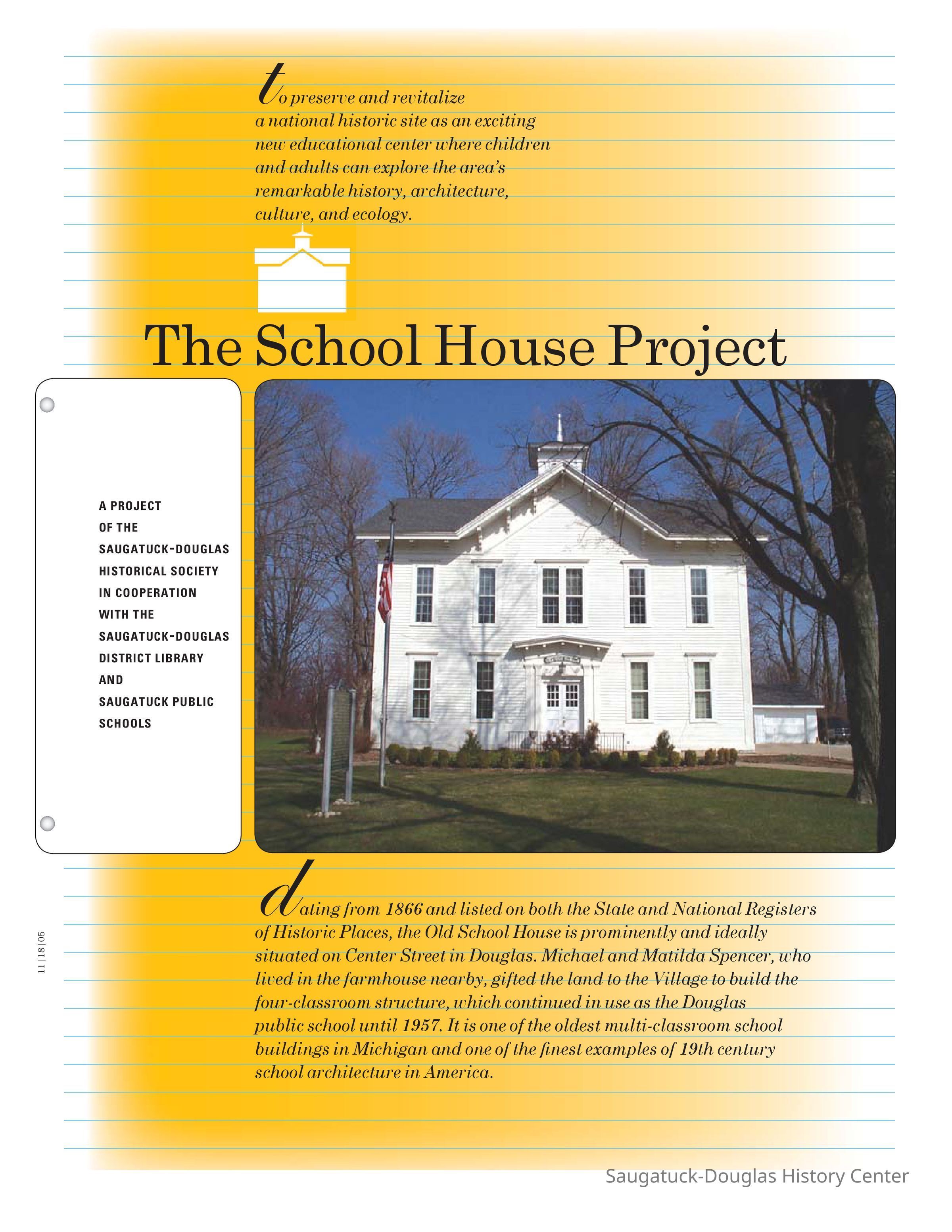 The School House Project was a massive effort the by the Historical Society to raise funds for the restoration and adaptive reuse of the Douglas Union School.Collection
