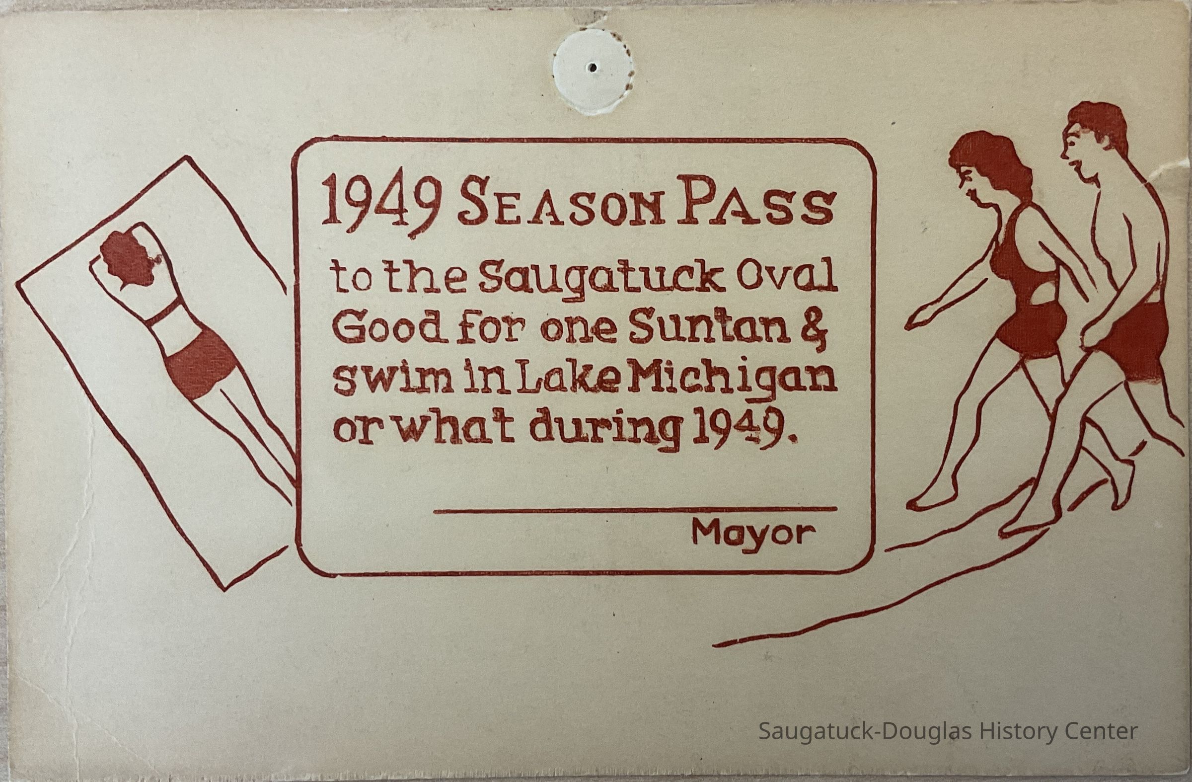 1949 Season Pass to the Saugatuck Oval PostcardCataloged By
