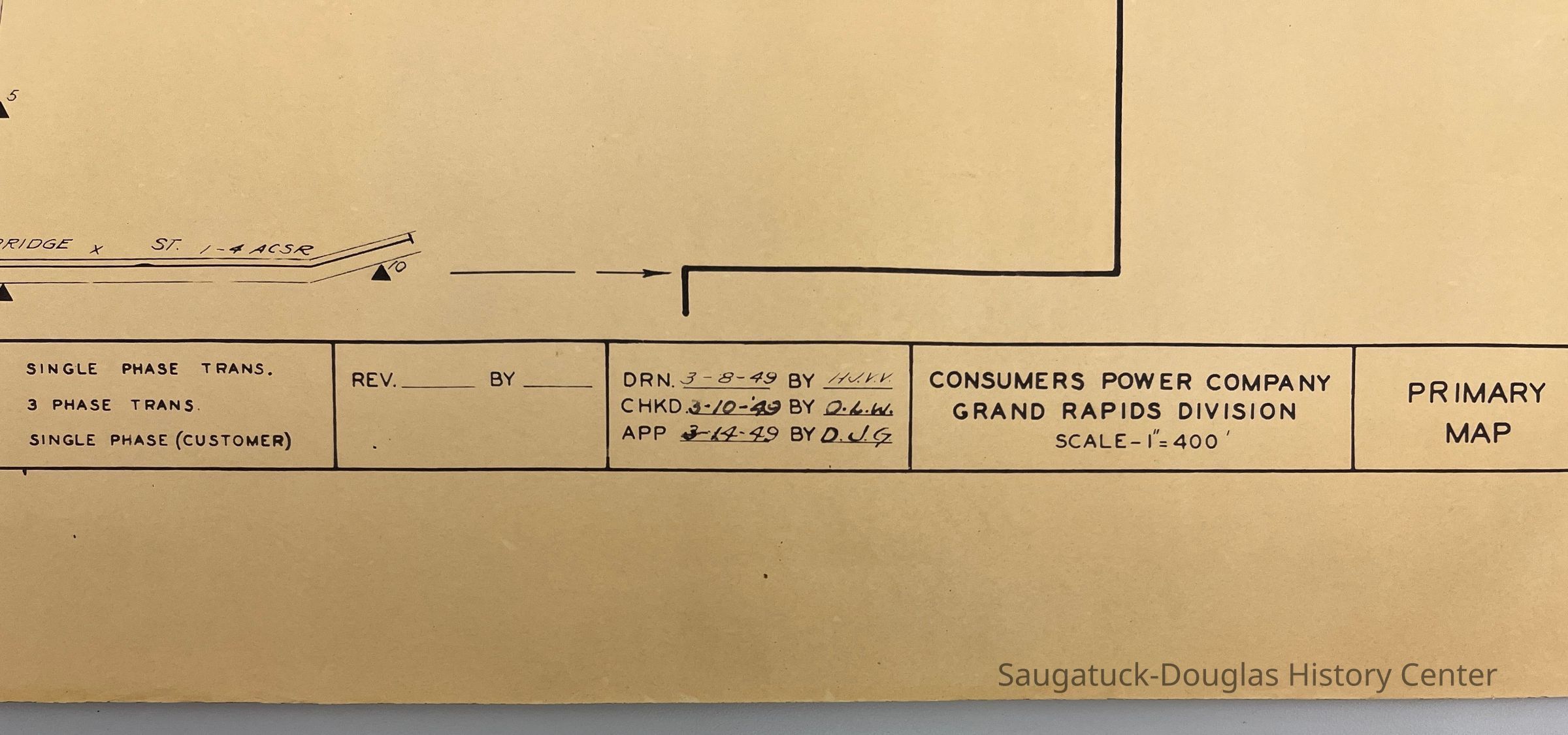 Consumers Power Company Primary Map of electrical system of Saugatuck, March 1949